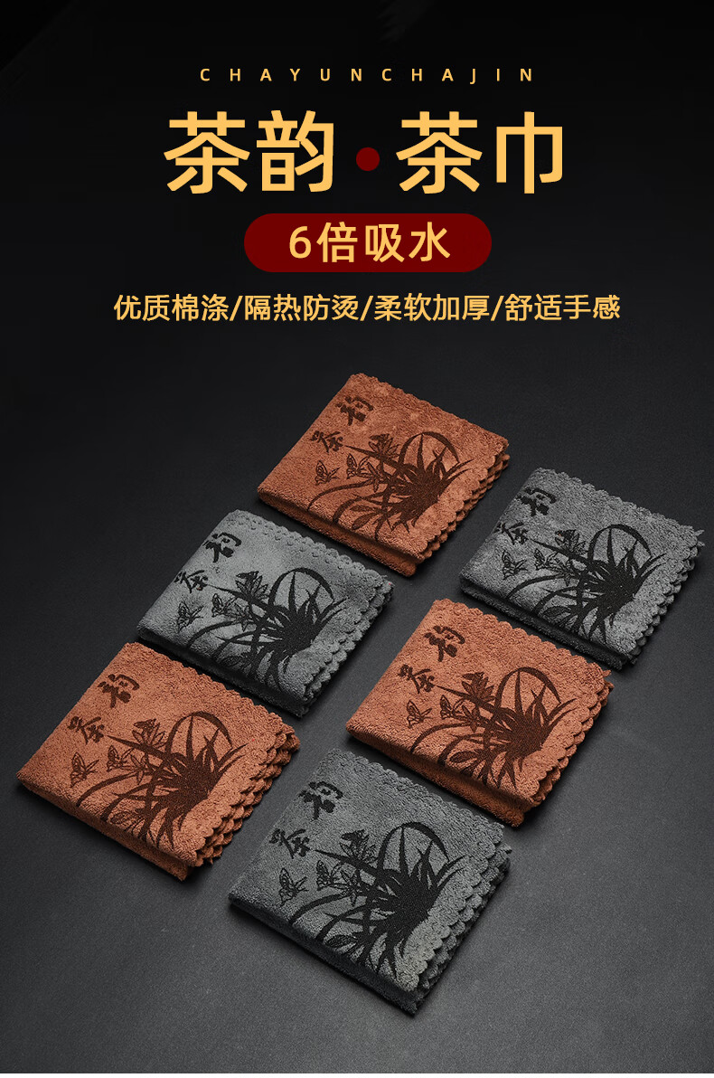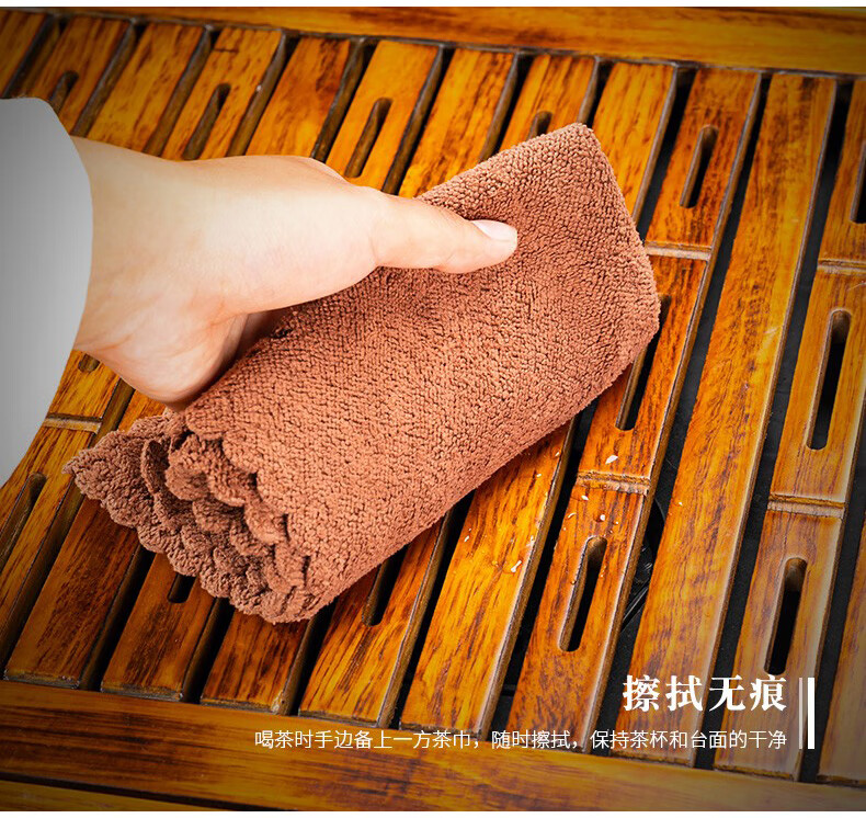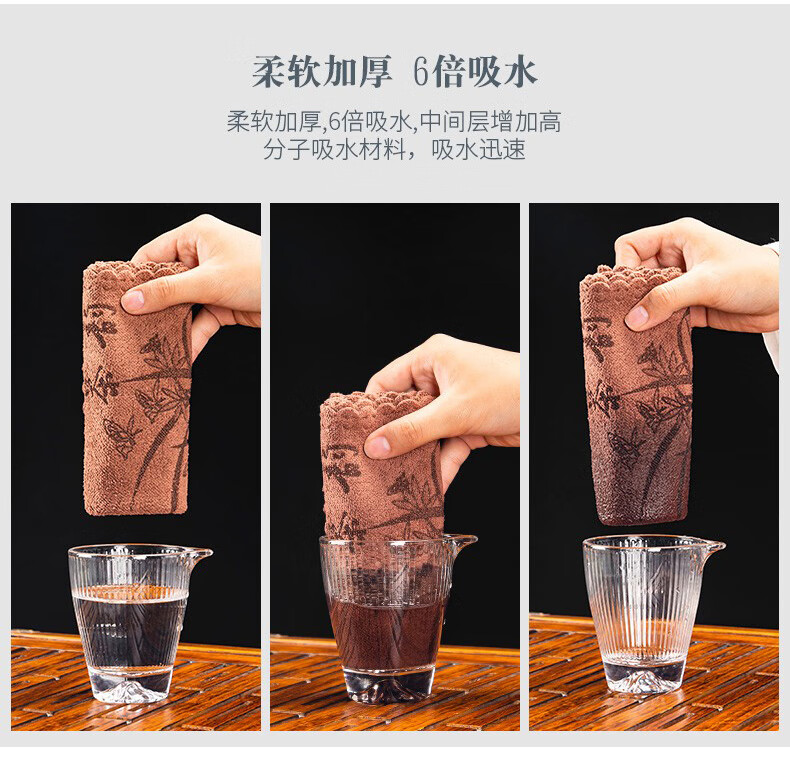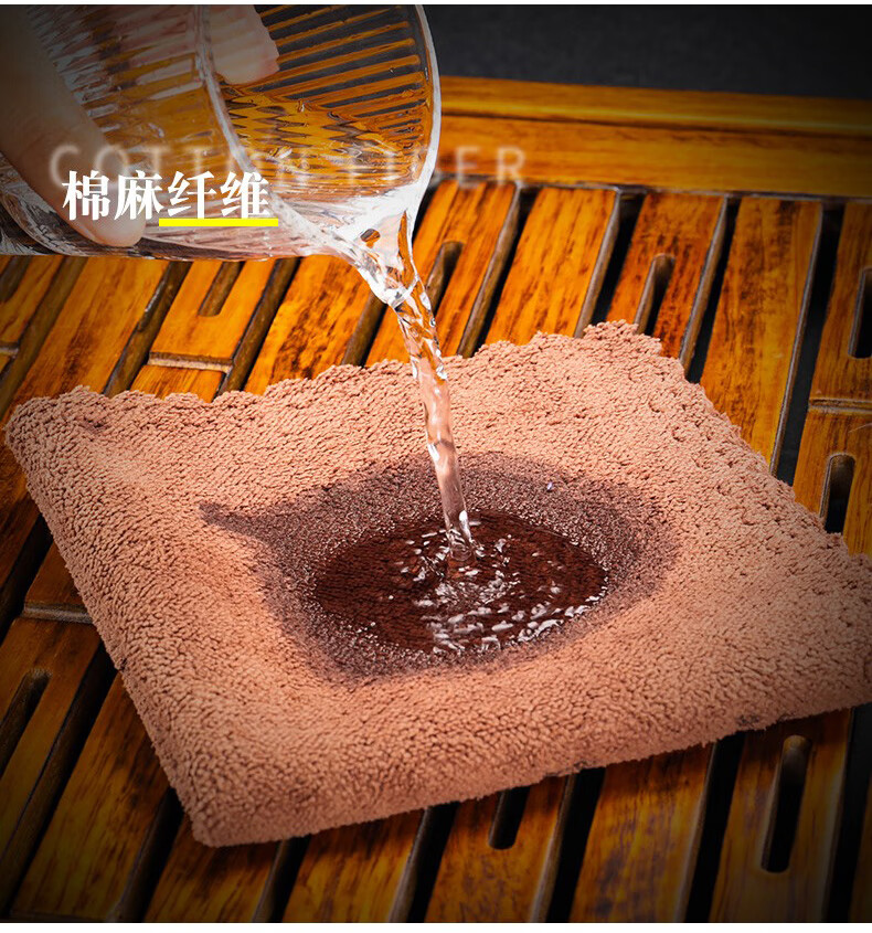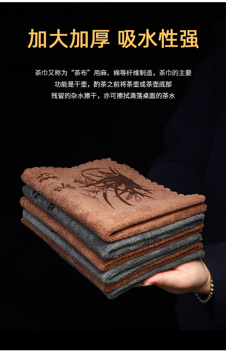 Tea Xiaoer Kung Fu tea towel, high-end tea cloth, water-absorbent and thickened, large strip of cloth, tea set towel, coffee table, tea table, tea table rag mat, brown + gray blue, 30*40cm, 2 packs