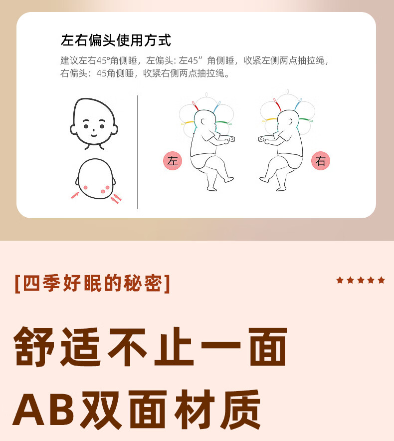 ROYALEXEBOSI baby shaping pillow corrects head shape from 0 to 6-12 months, corrects newborn baby pillow, 7D cotton core model, reverse Tencel