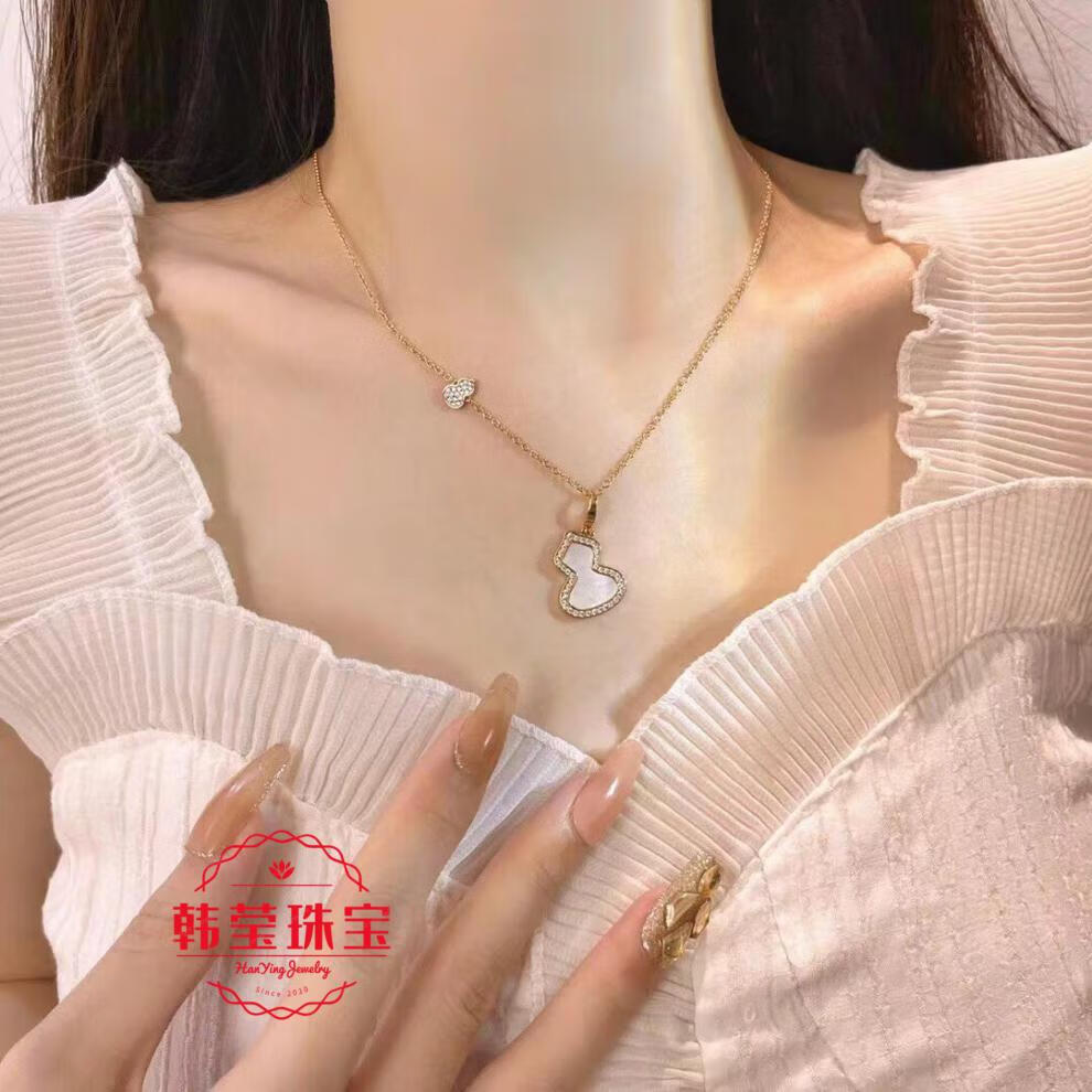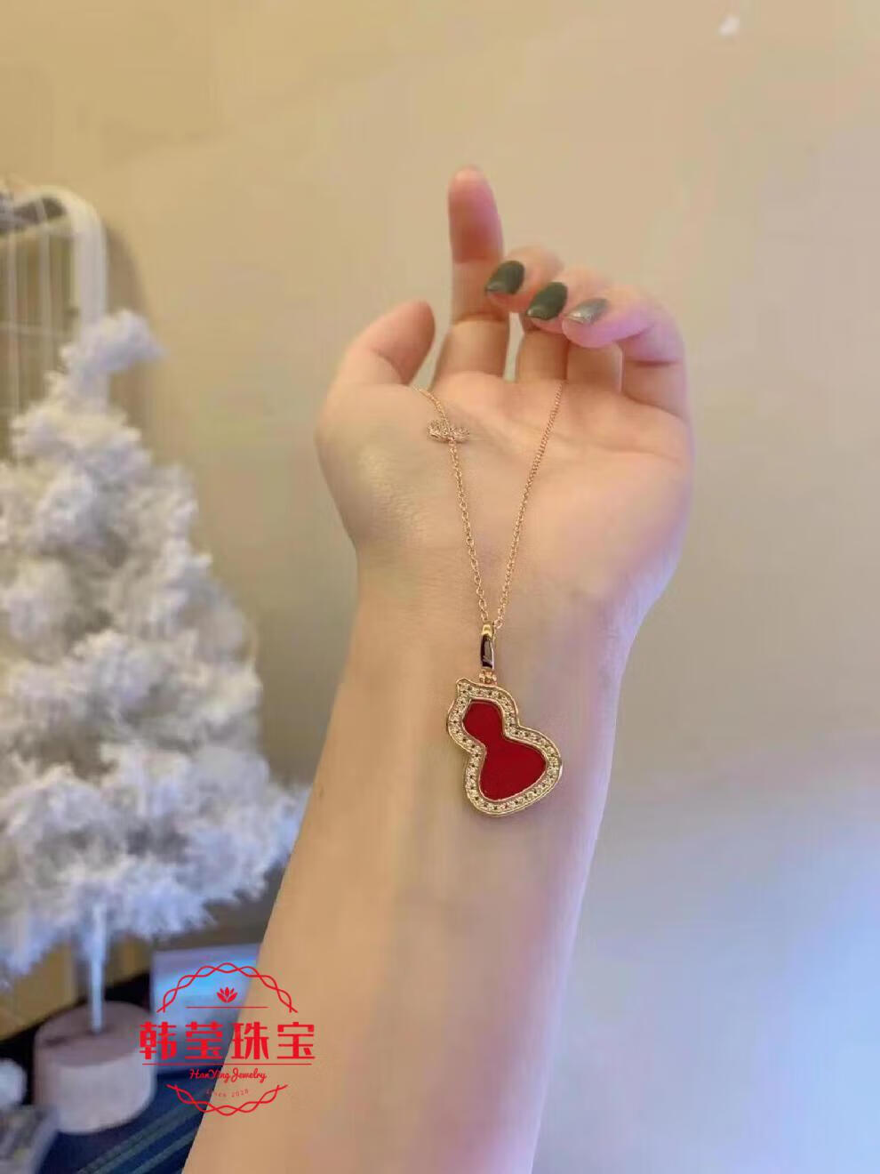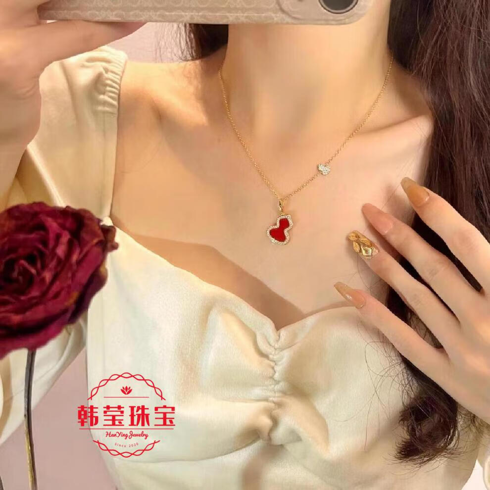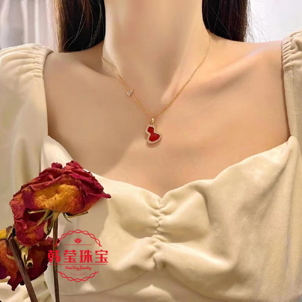 Fat Donglai's same style 18k gourd pendant 2024 new style necklace for women, simple and light luxury, internet celebrity's same style clavicle chain, carnelian