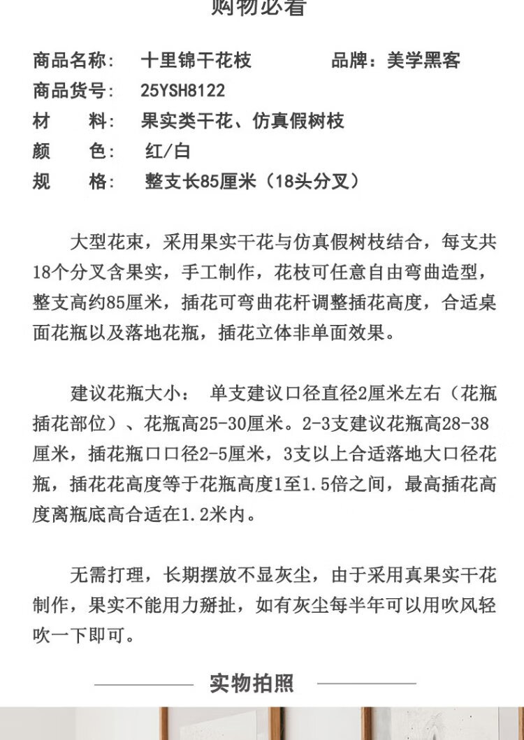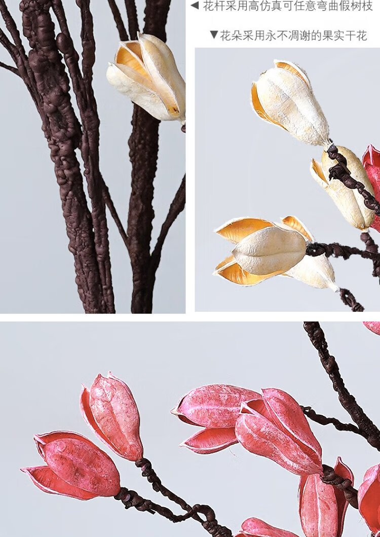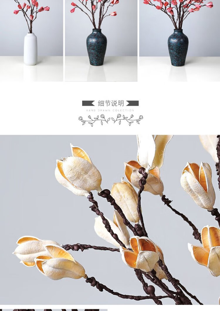 Aesthetic hacker dried flower bouquet decoration living room furnishings floor-standing large bouquet of high branches air-dried dried fruits natural real flowers simulated branches and branches 1 light-colored ten-mile brocade