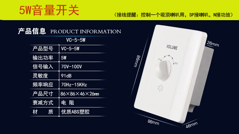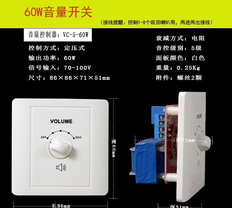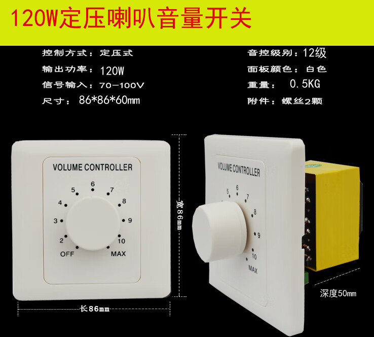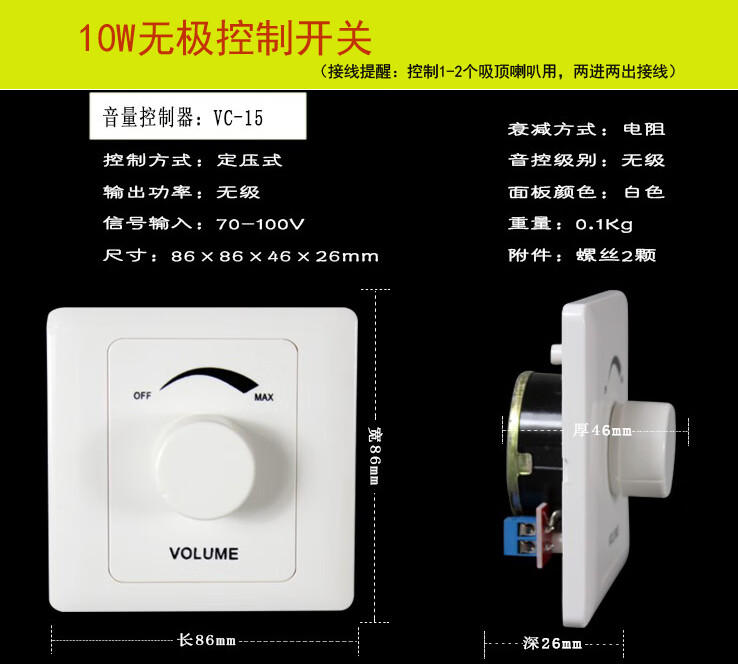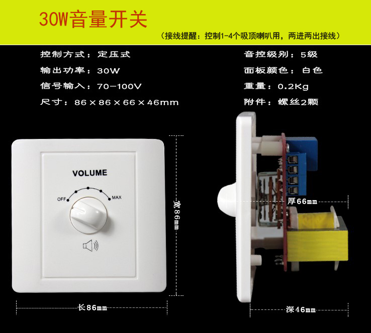 Constant pressure speaker volume control switch constant pressure volume adjustment 86 panel 10W30W60W speaker tuning Kaichi constant pressure 30W with strong cut switch white