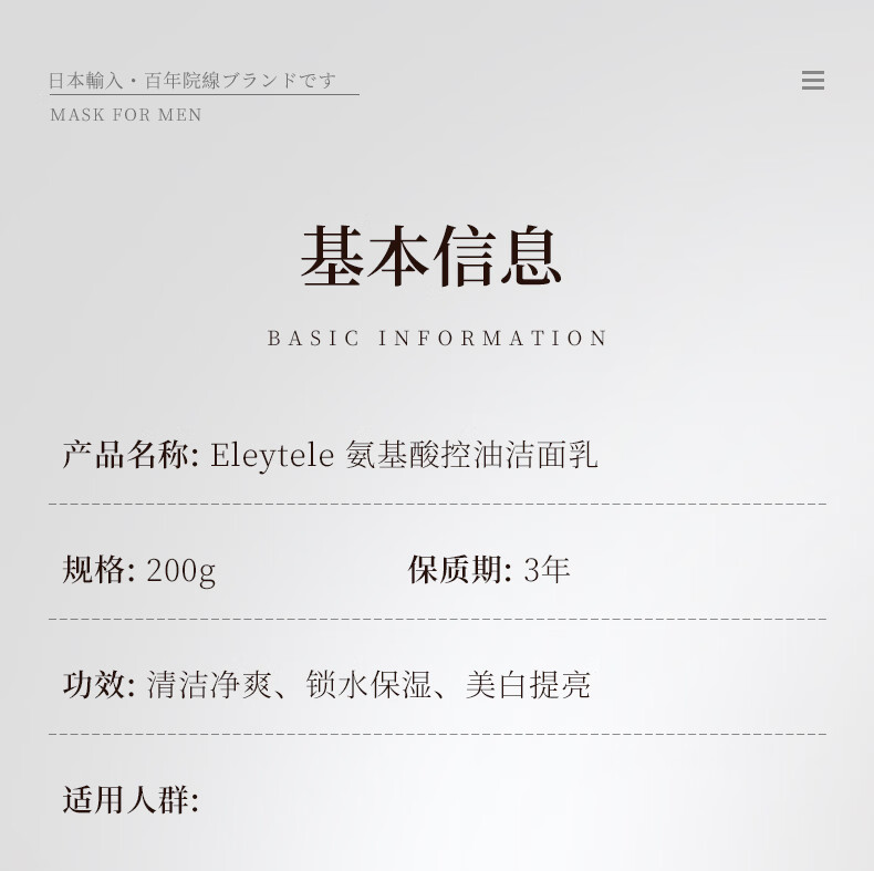 Bayer (BAYER) Ten Billion Patch Eleytele Japan imported men's facial cleanser amino acid oil control cleanser deep cleansing 200 200g