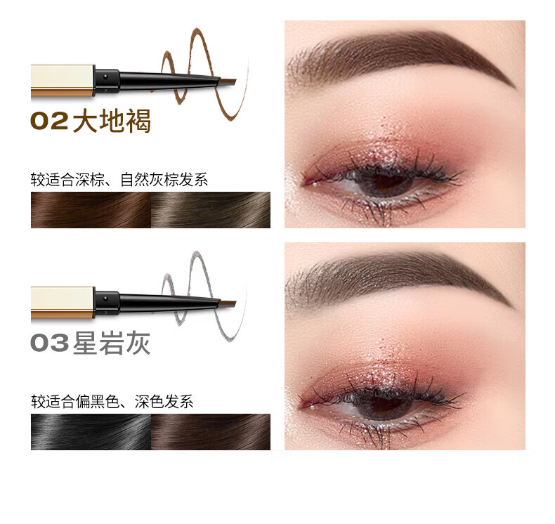 Color Key Colachi Small Gold Chopsticks Eyebrow Pencil Profile Three-dimensional Sketch Waterproof, Sweatproof, Long-lasting, Not Easy to Discolor Novice Beginner Small Gold Chopsticks Eyebrow Pencil 03 Star Rock Gray