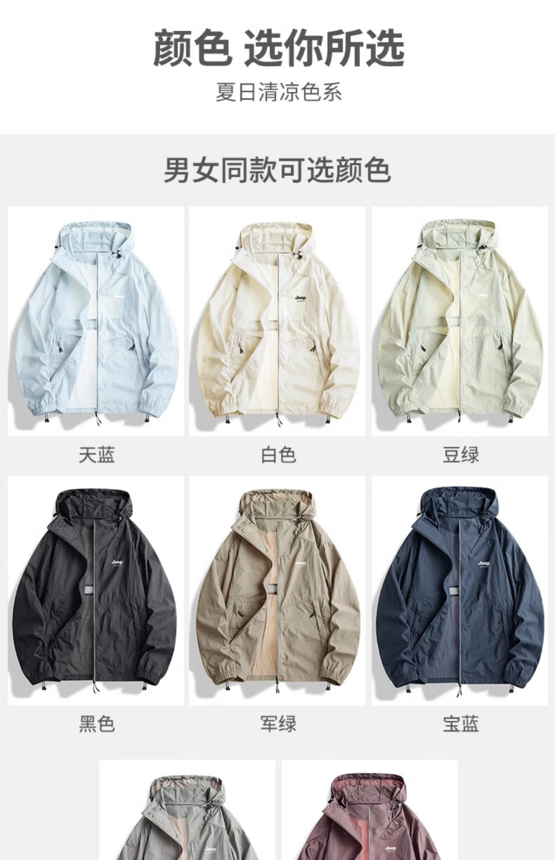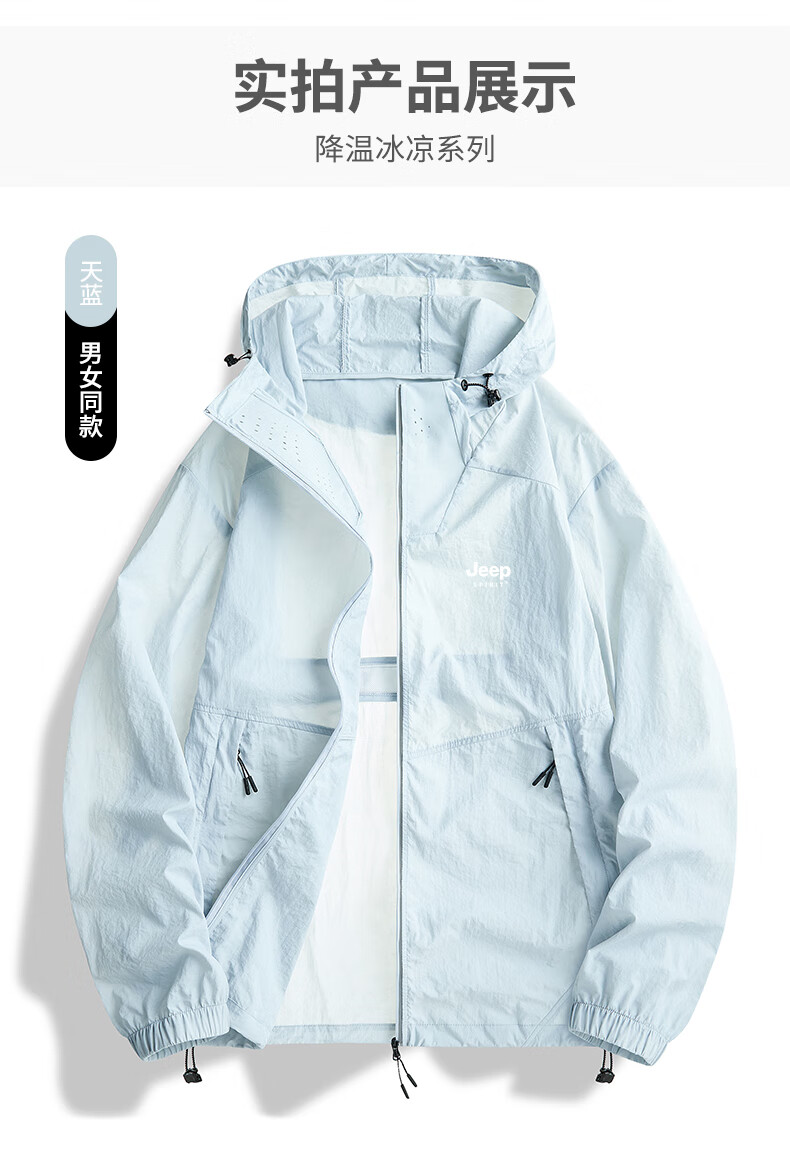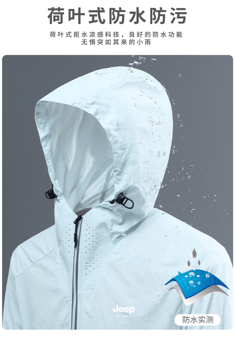 JEEP SPIRIT Jeep sun protection clothing for men and women, summer lightweight outdoor skin clothing, ice silk sun protection clothing, fishing thin jacket, men's T91 bean green M 120-135Jin Jin is equal to 0.5 kg