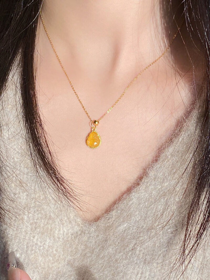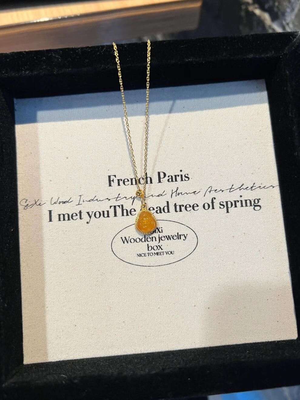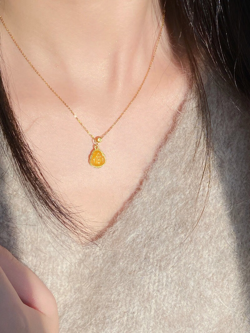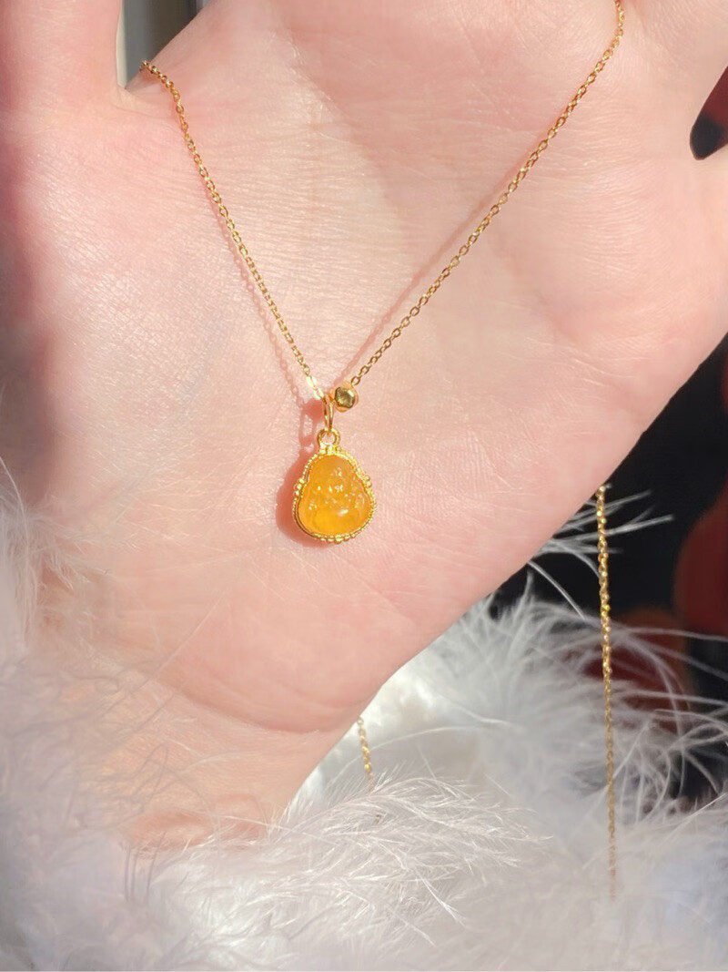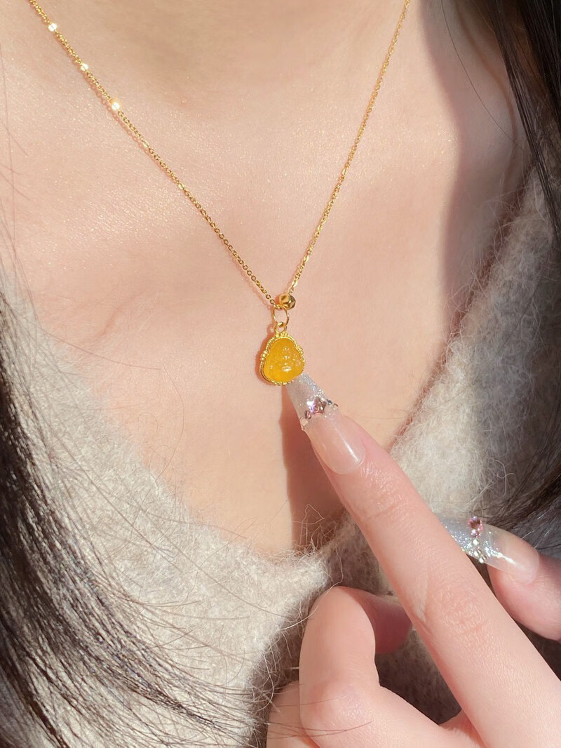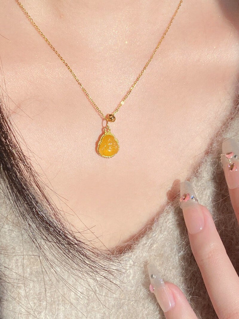 Tingyun natural amber Buddha necklace Maillard beeswax clavicle chain Maitreya Buddha smile pendant for men and women big belly Buddha Buddha necklace
