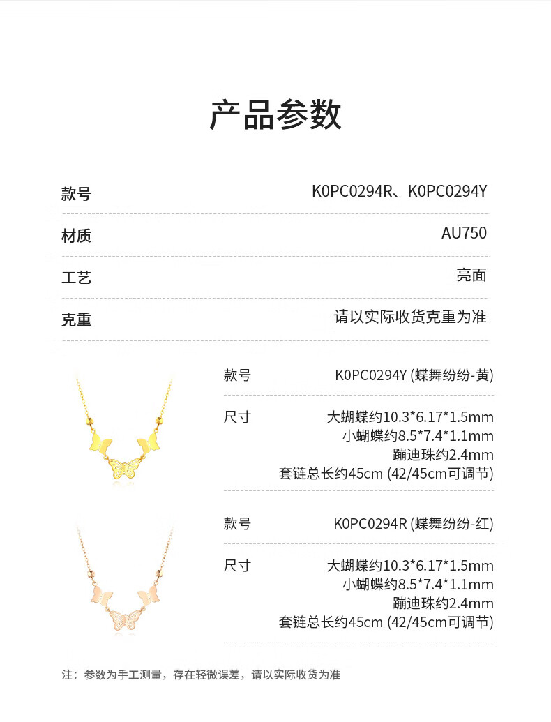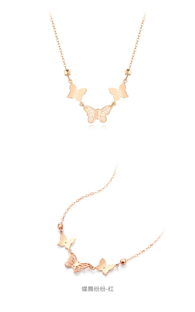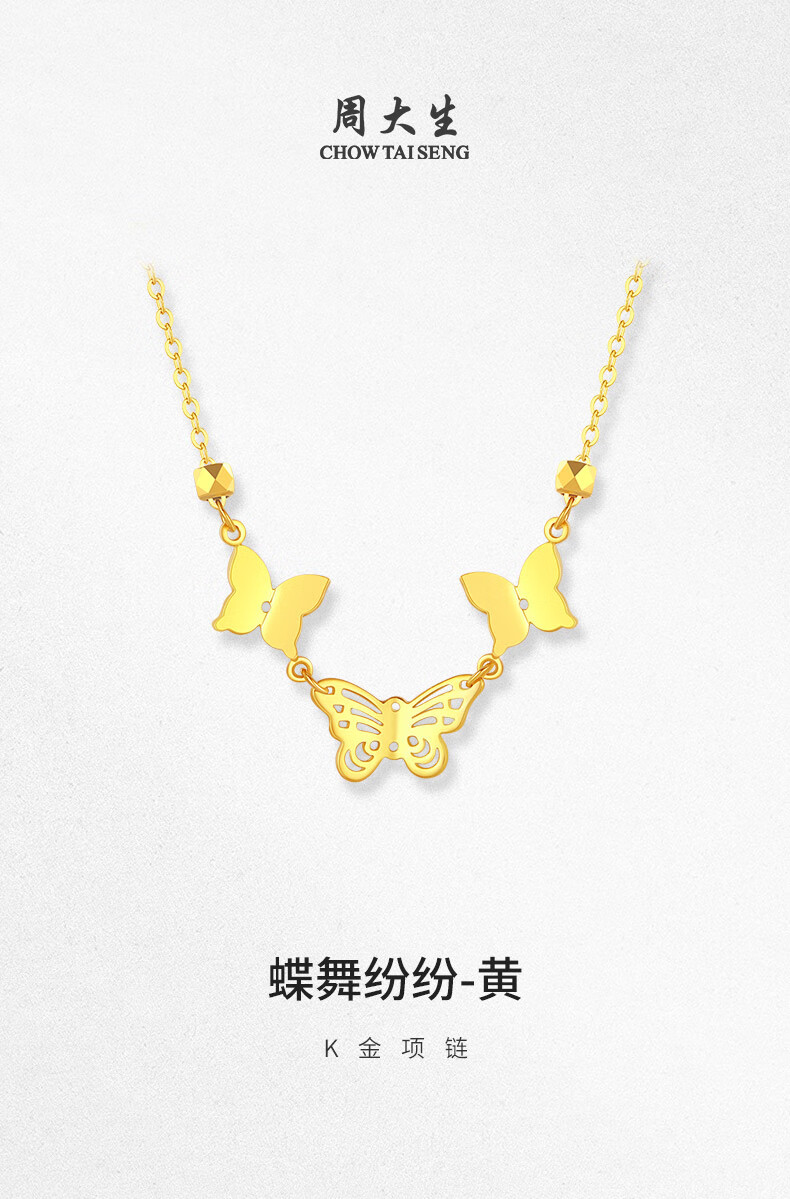 Chow Tai Sang 18k gold butterfly necklace women's clavicle chain colorful gold neck jewelry as a birthday gift for girlfriend K yellow butterfly necklace chain (42/45cm adjustable)