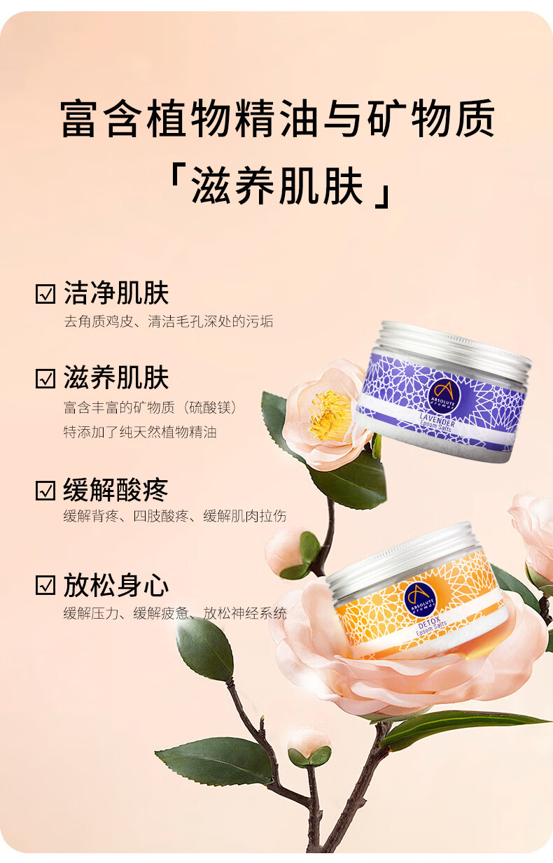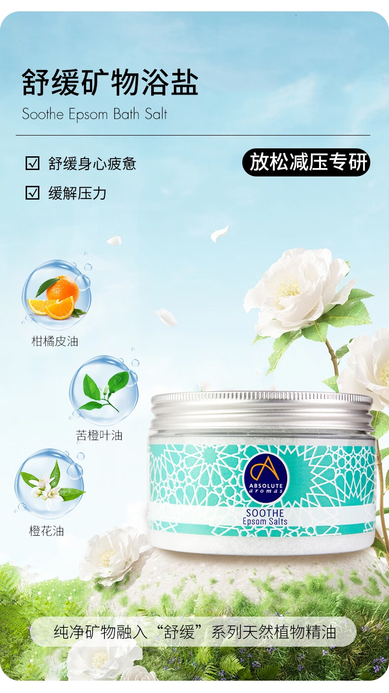 Absolutearomas British Chantilly plant aromatic essential oil bath salt bath ball exfoliating chicken skin acne removal body rub back scrub 300g relaxing mineral bath salt