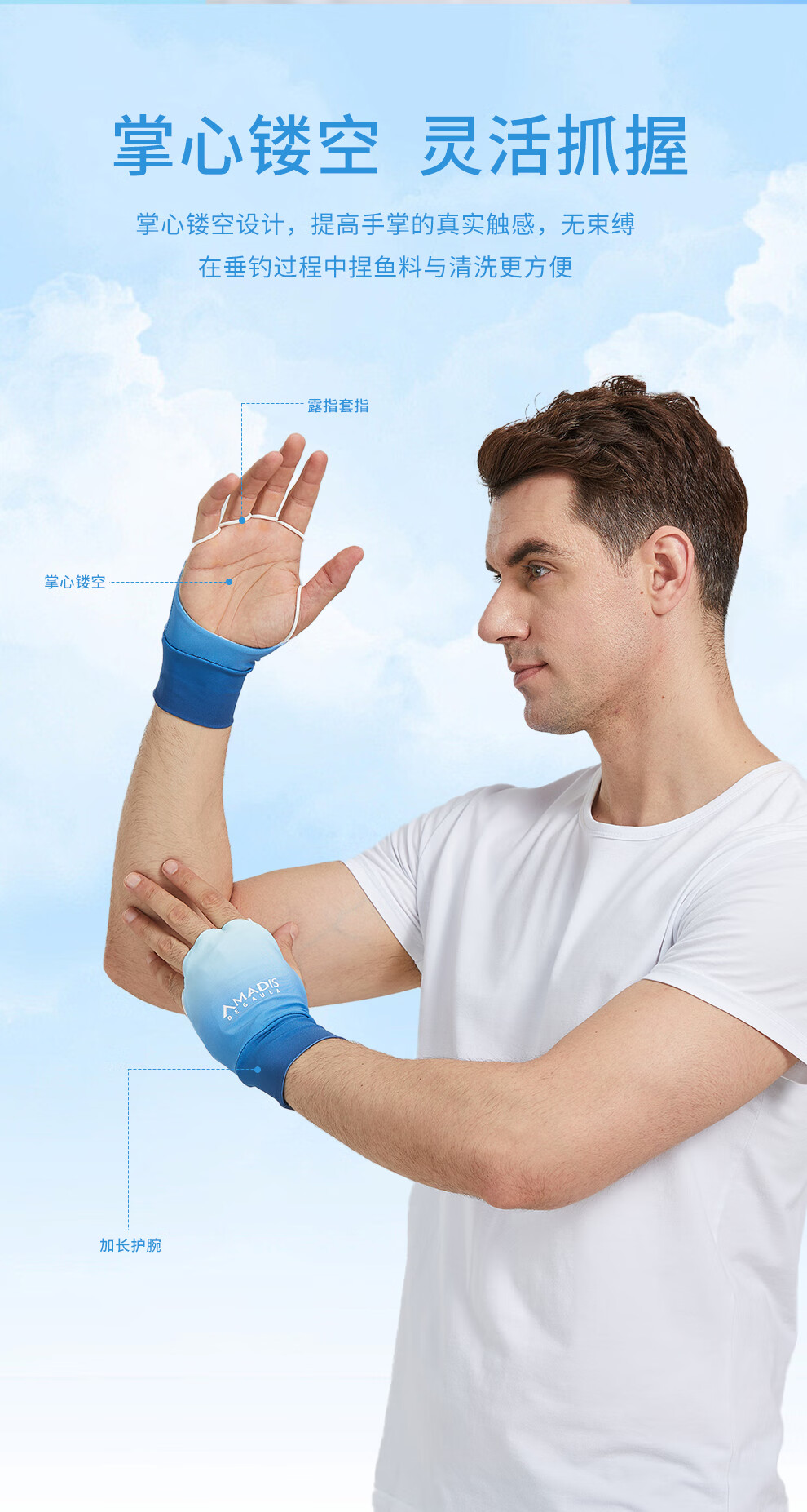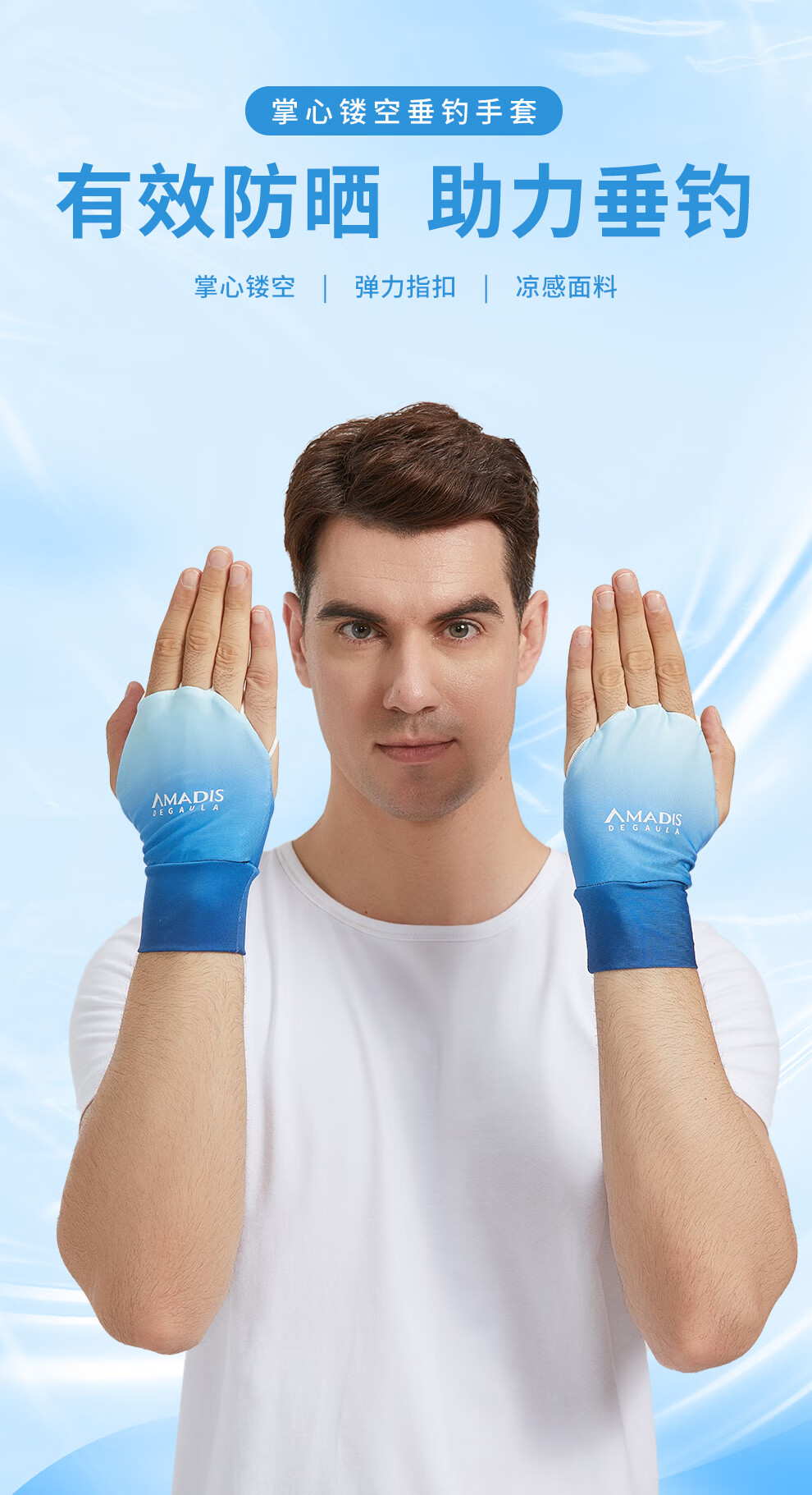 Amadeus Degora Fishing Gloves Summer Thin Men and Women Revealing Five Fingers and Open Palms Breathable Anti-UV Fishing Sunscreen Gloves Ocean Blue L