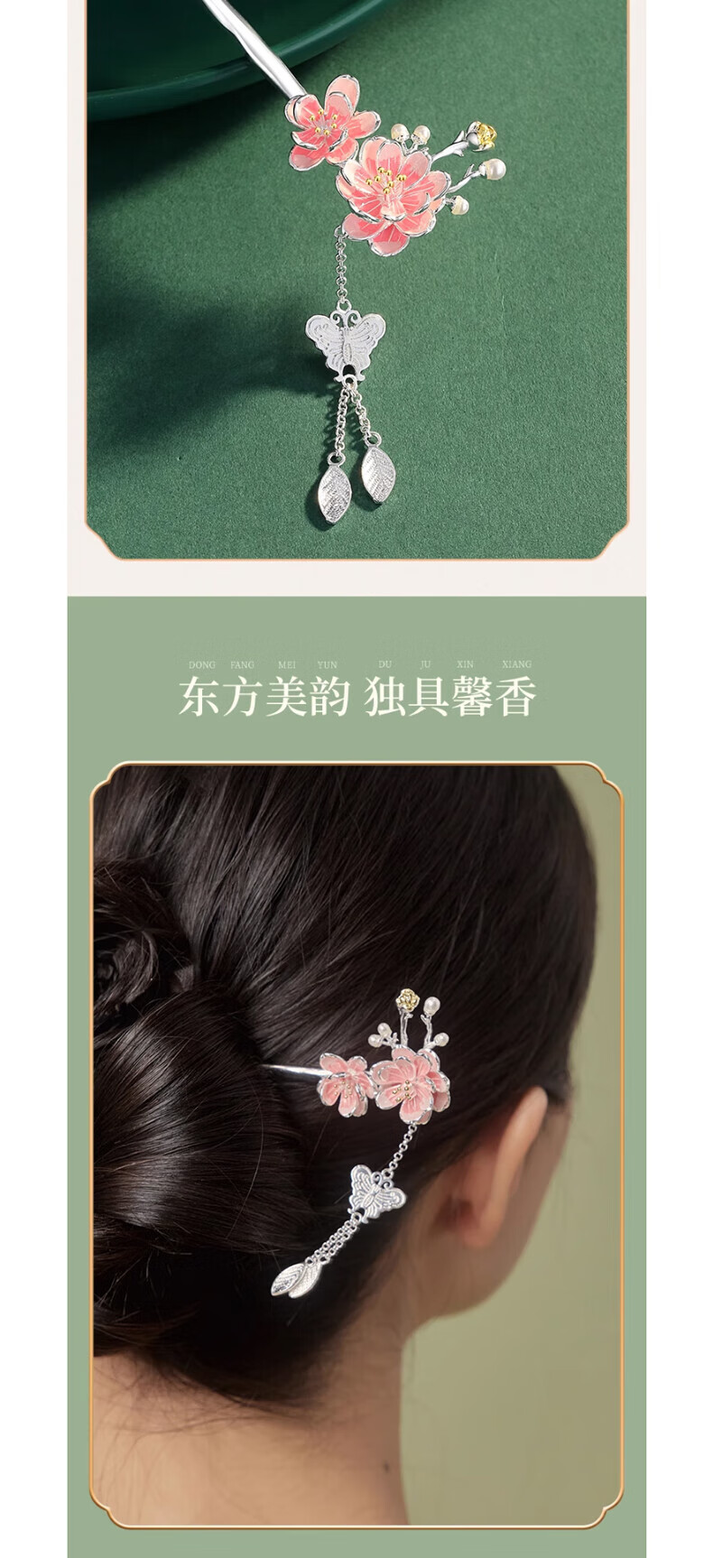 Ancient plum blossom hairpin, new Chinese style ancient style hairpin, women's high-end Hanfu headwear, hair accessories, birthday gift for ladies, practical crabapple flower tassel hairpin