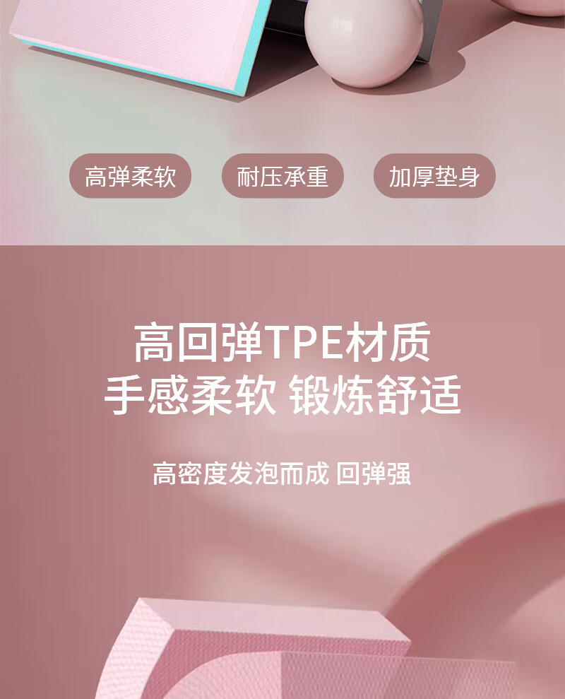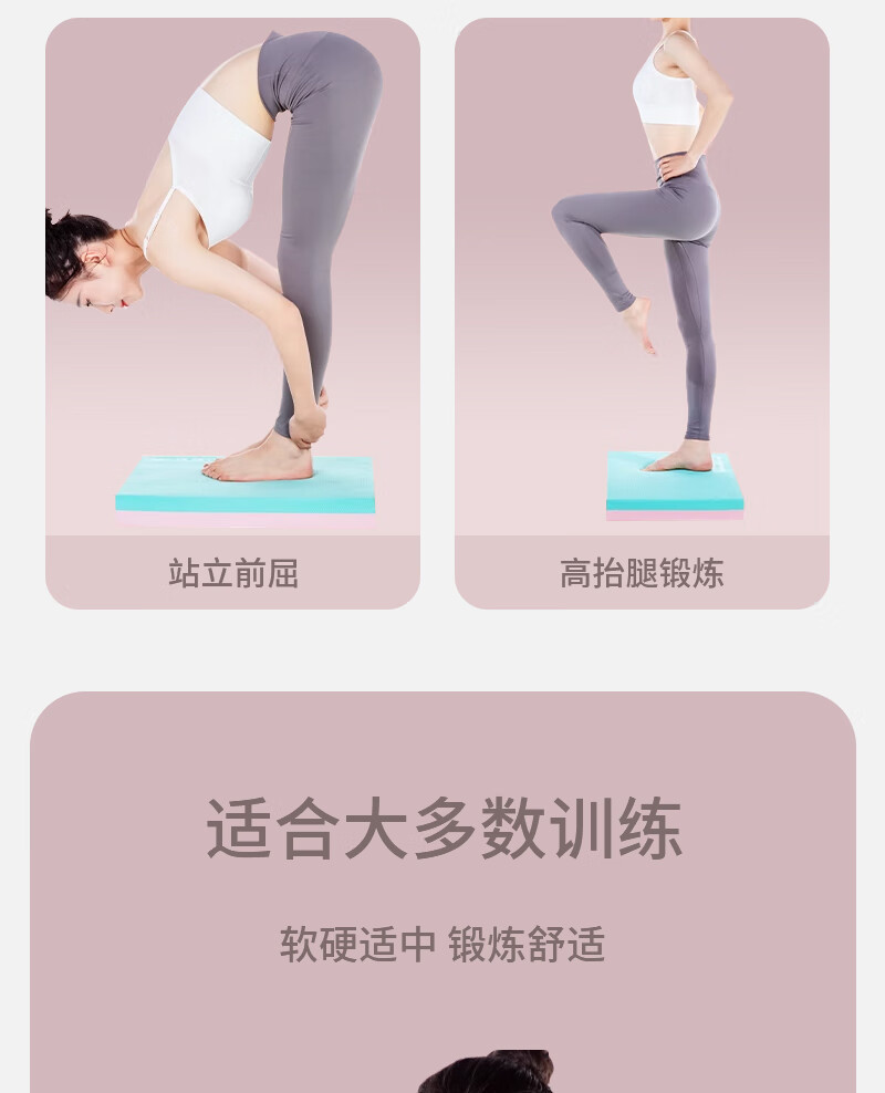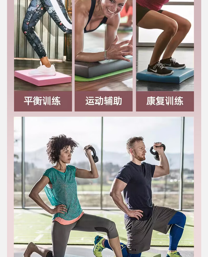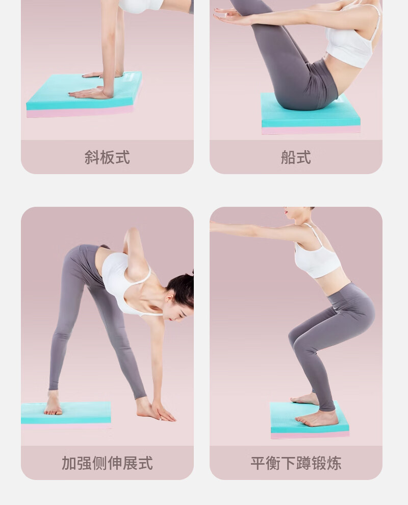 Balance mat fitness mat flat support core training yoga fitness thickened non-slip soft tread foam kneeling mat 50*40*6cm green and pink two-color