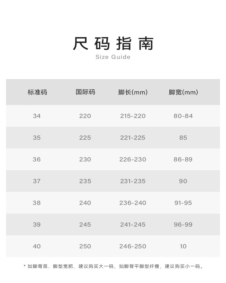 China (cm) 36 - 37 38 - 39 40 - 42 43 - 44 45 - 47