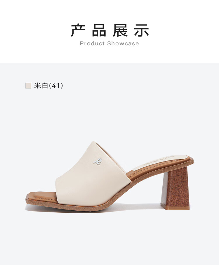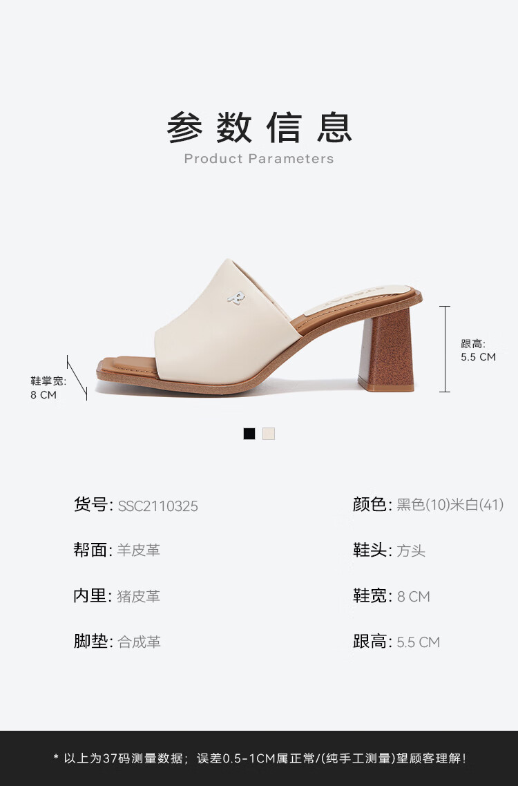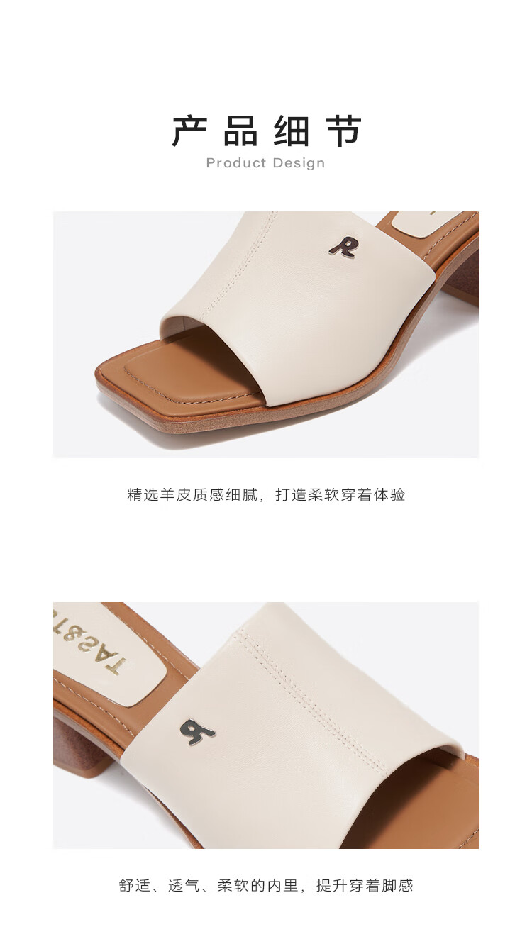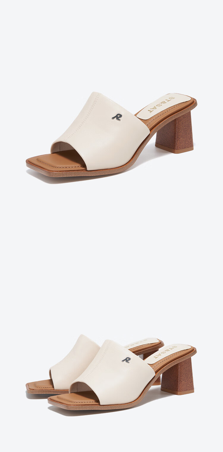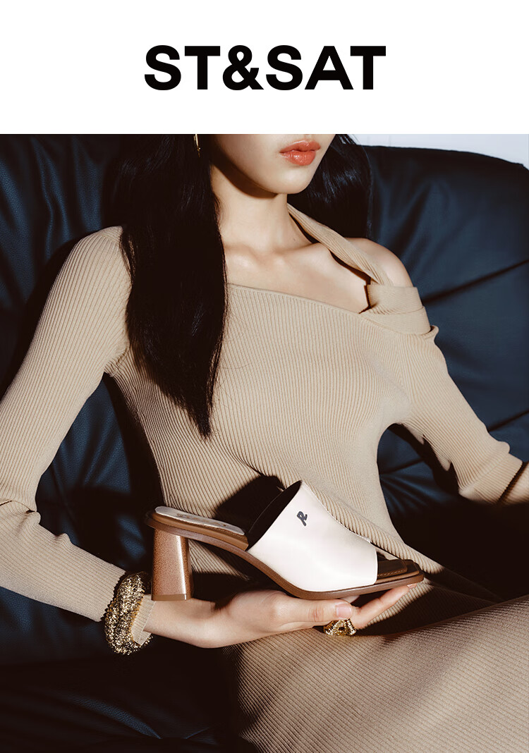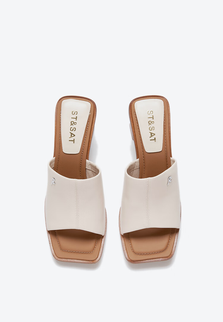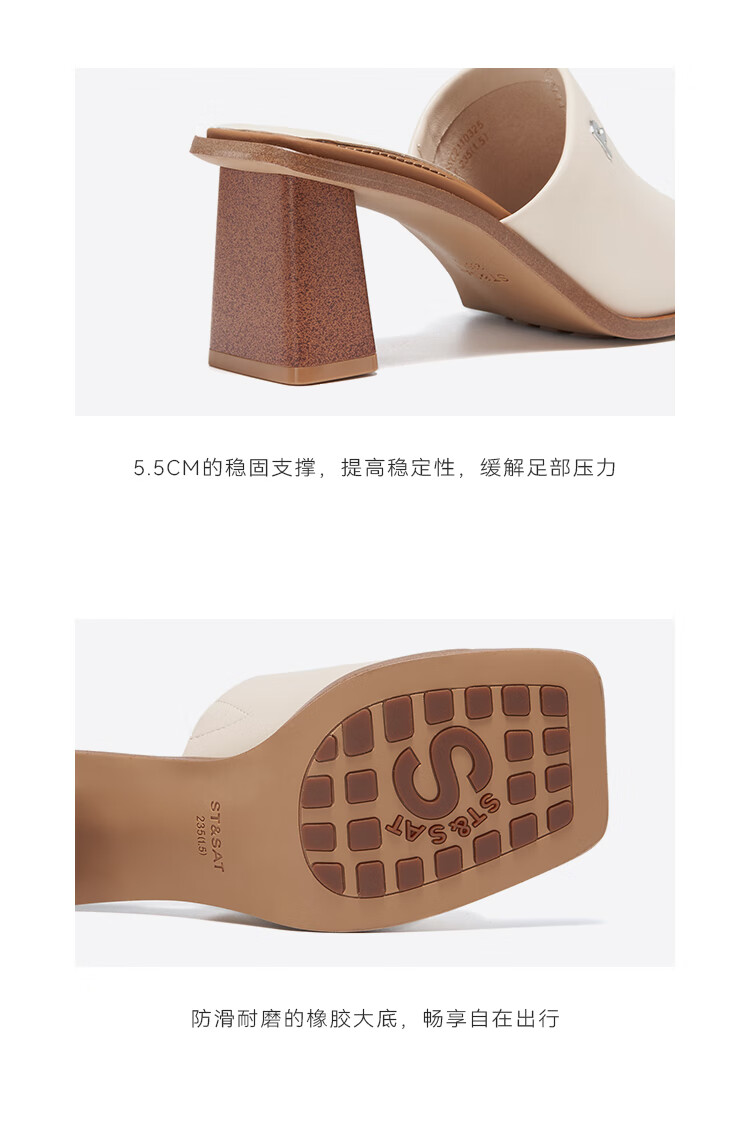 St&Sat Saturday fish mouth thick heel slippers for women summer fashion outer wear new high heel one-line sandals SSC2110325 beige 35 225mm