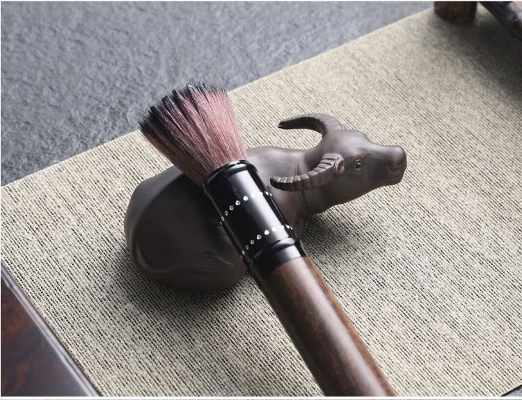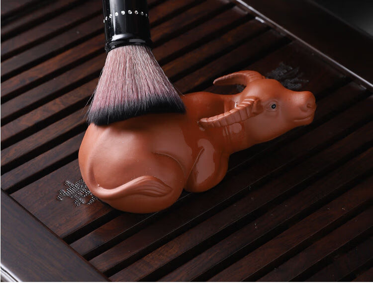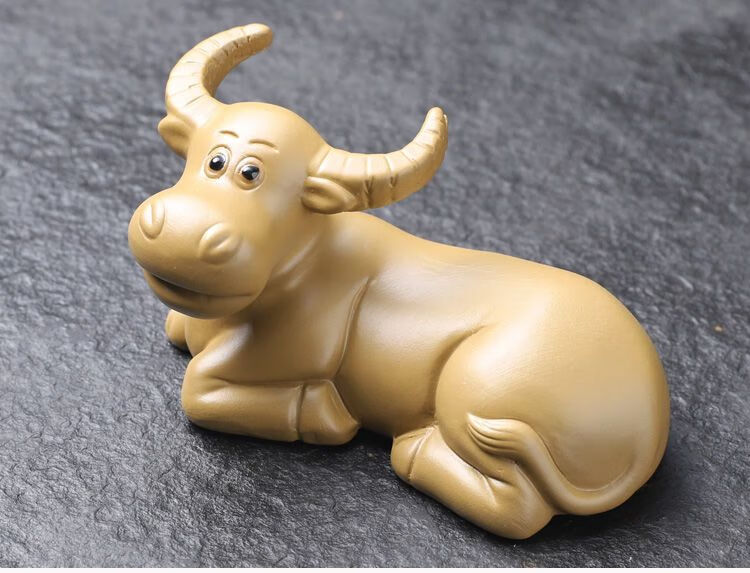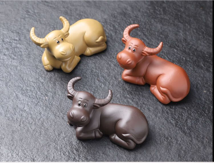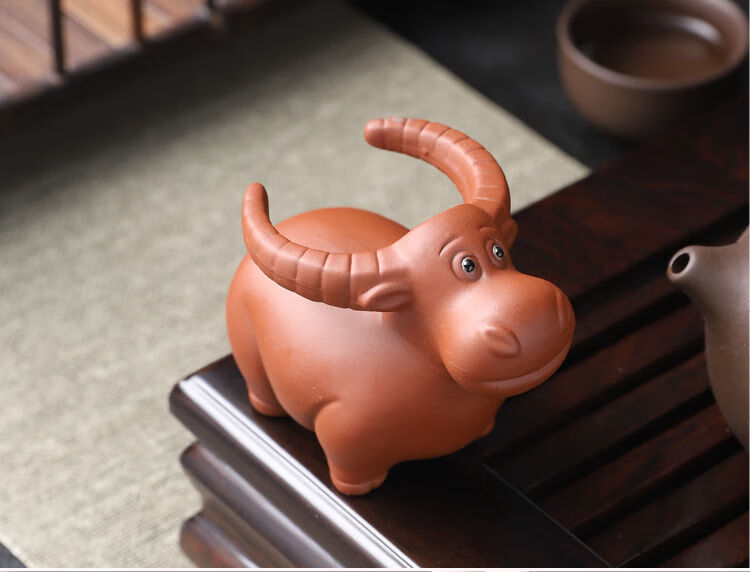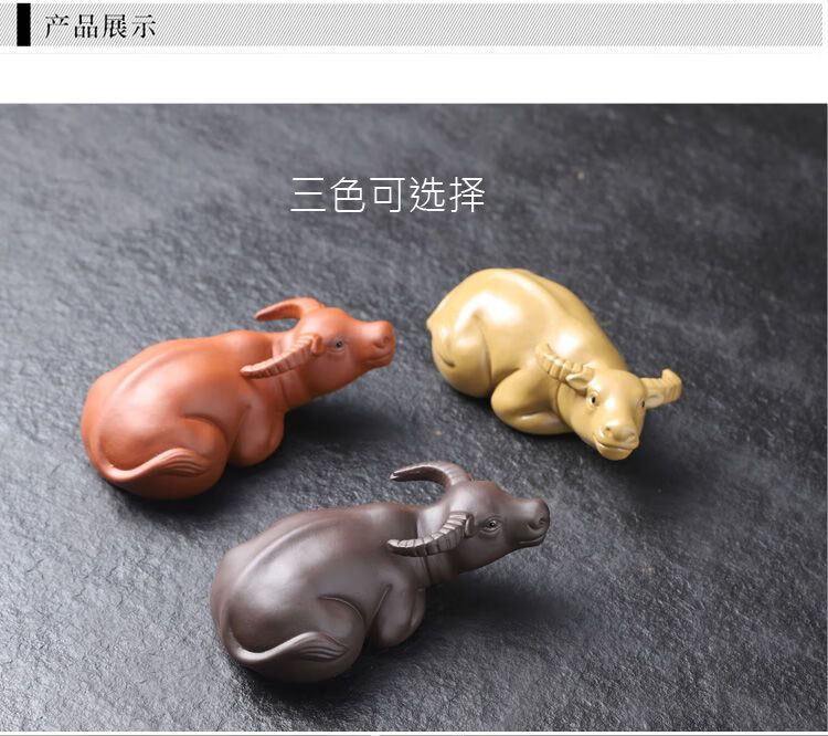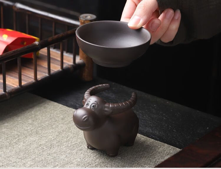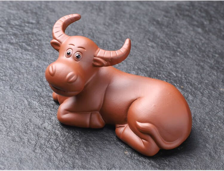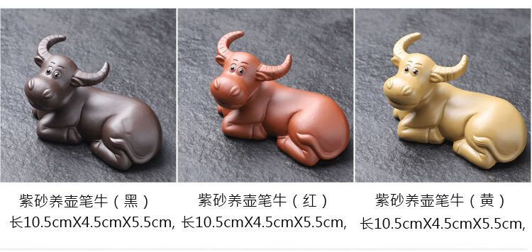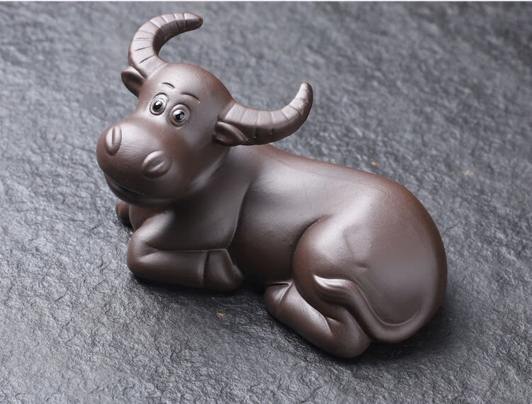 Enshou traces purple sand buffalo tea pet ornaments cow turns to heaven and earth tea play zodiac cow boutique tea tray tea from treasure cute and can be raised purple sand buffalo (black)