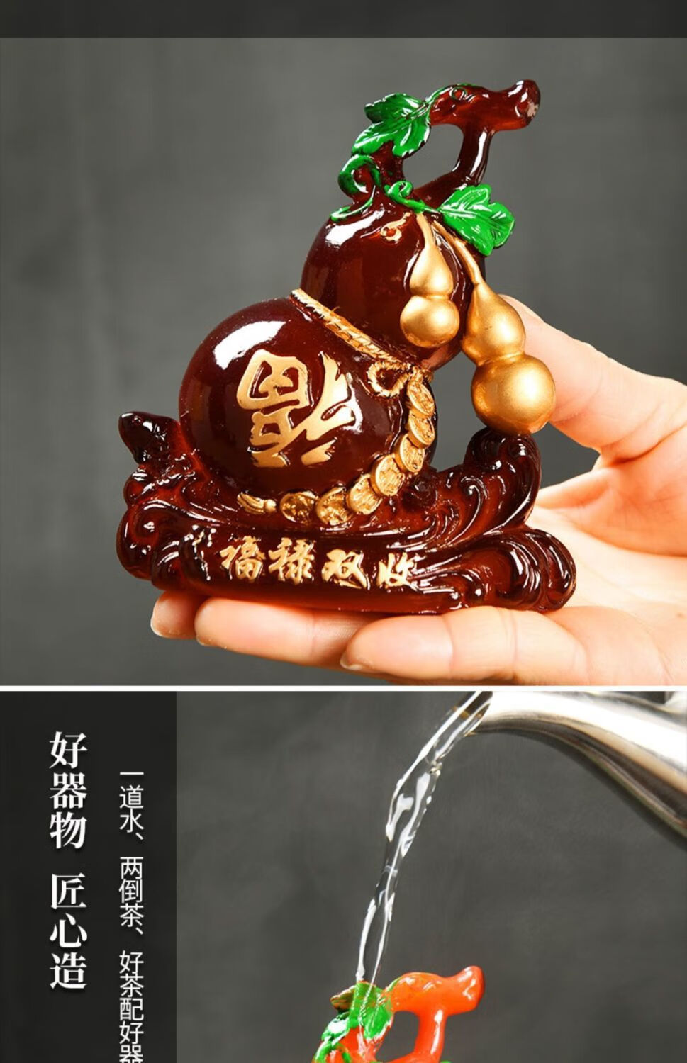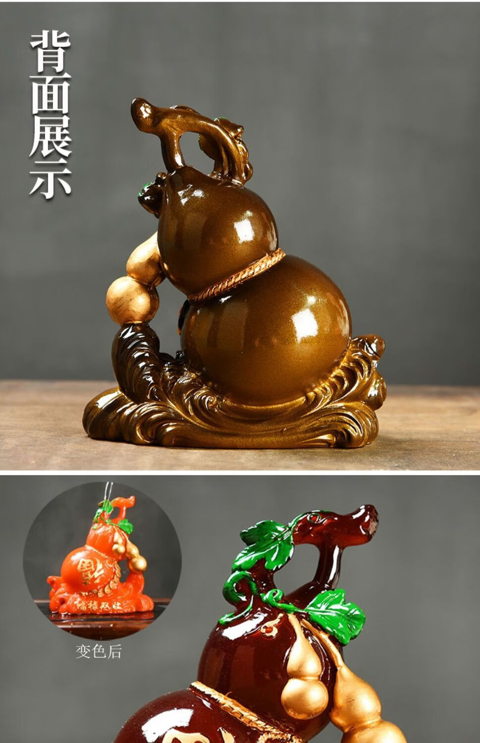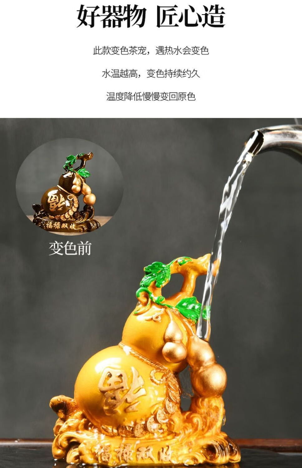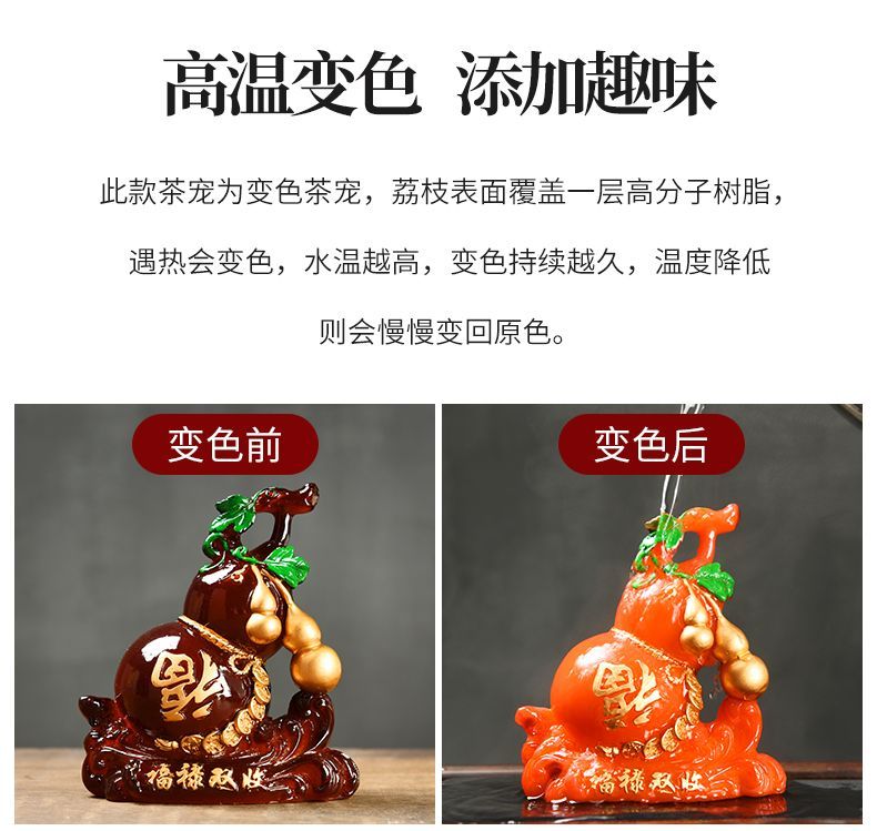 Enshousu color-changing tea pet ornaments Fulu double harvest boutique can raise creative gourd tea table tea play accessories decorative furnishings Fulu double harvest (turning red)