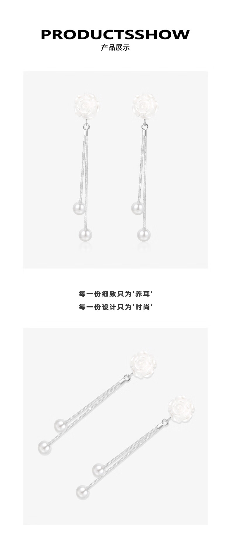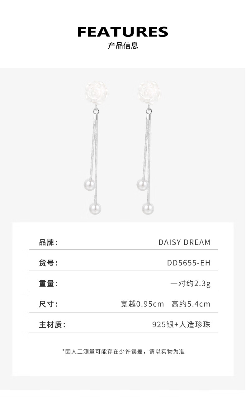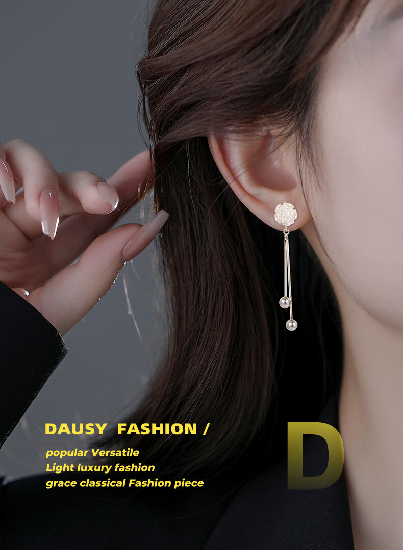 DAISY DREAM925 silver camellia tassel earrings for women, light luxury, high-end earrings, 2025 new earrings, camellia pearl earrings, 925 silver