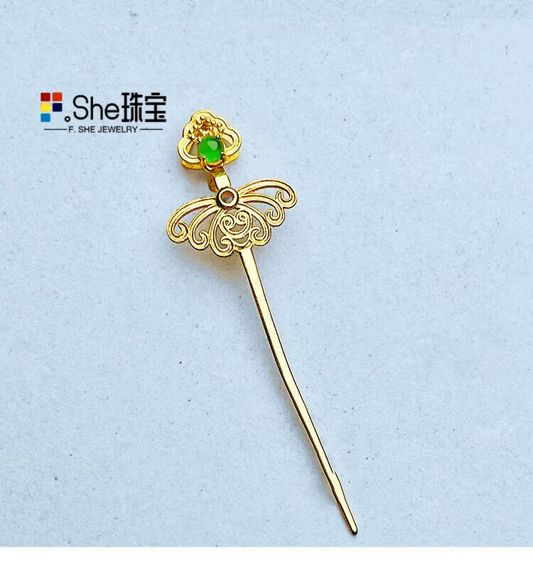 Shantou Lincun 2025 new 18k gold accessories diy buckle safety buckle clip buckle K-plated jade inlaid green cabochon jade pendant safety buckle clip buckle