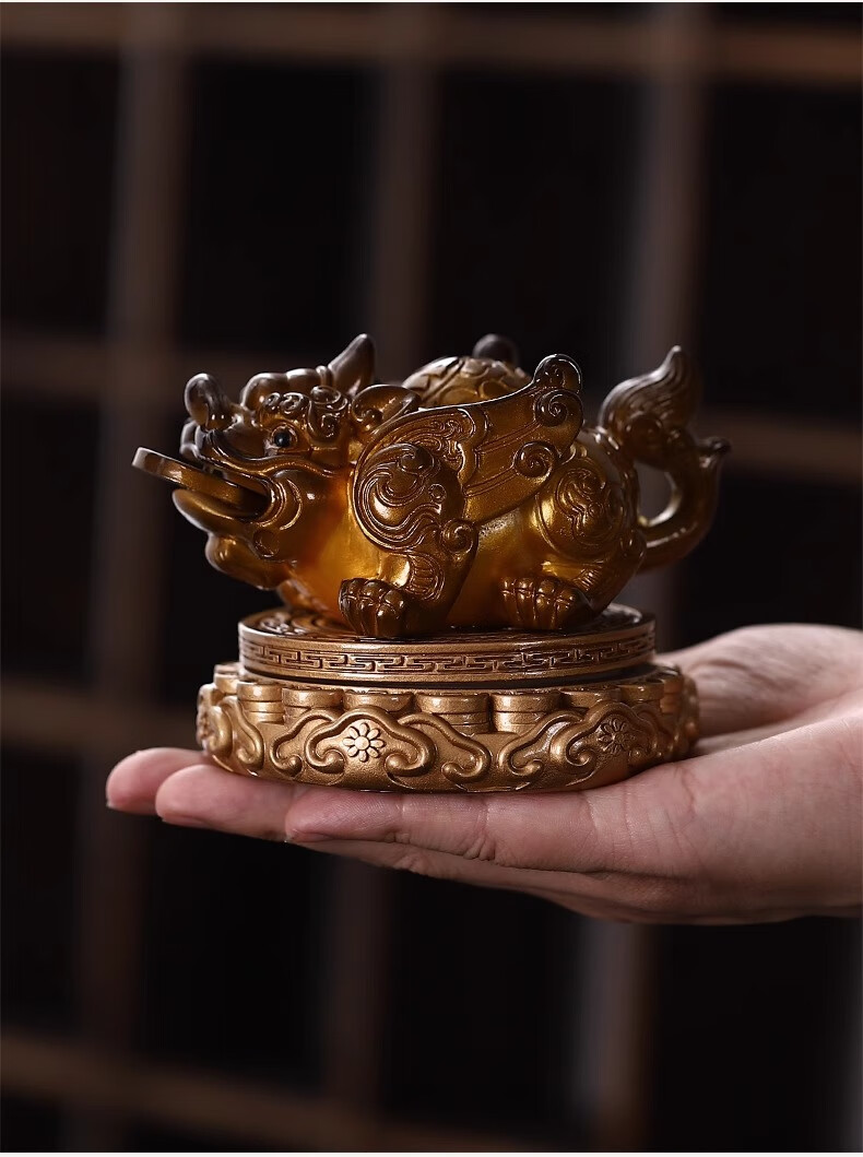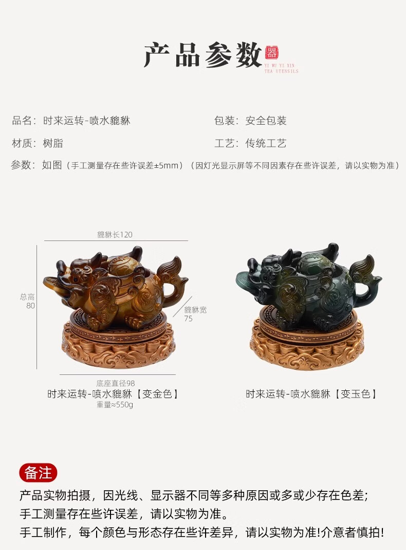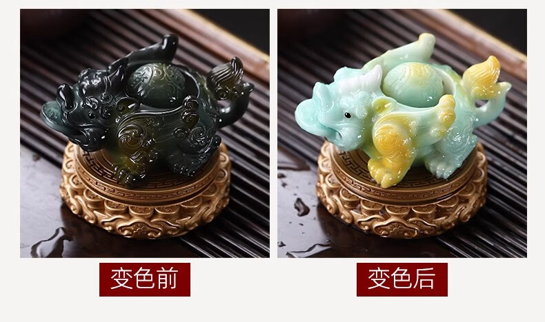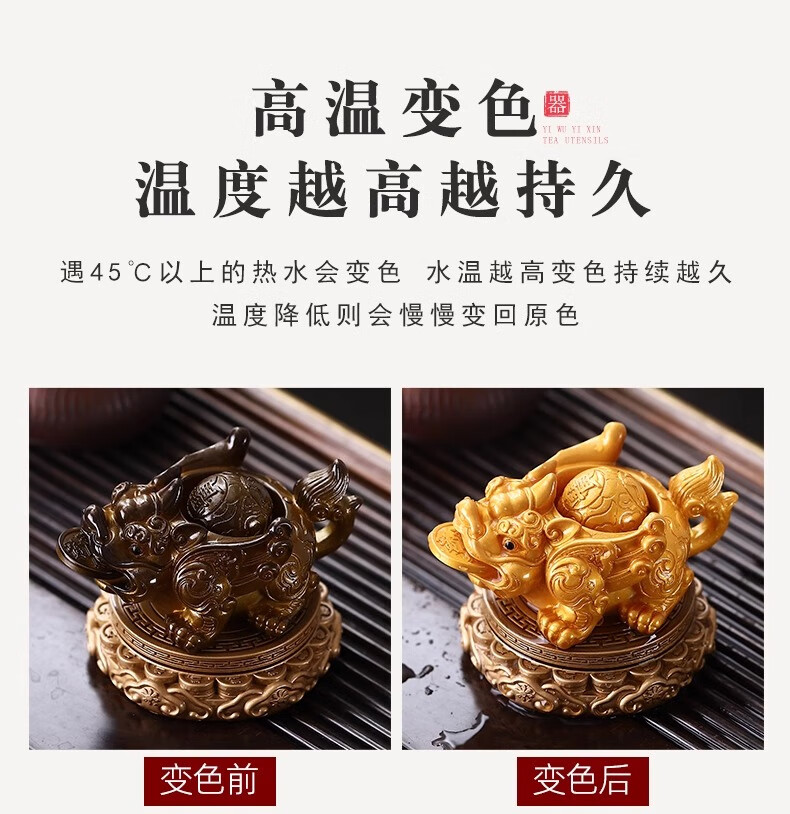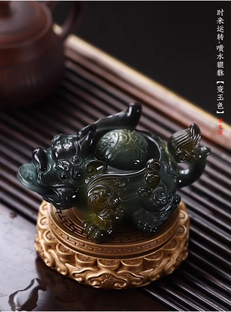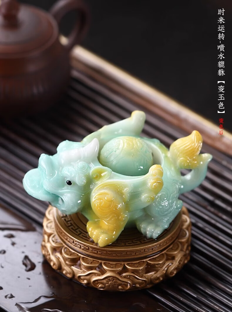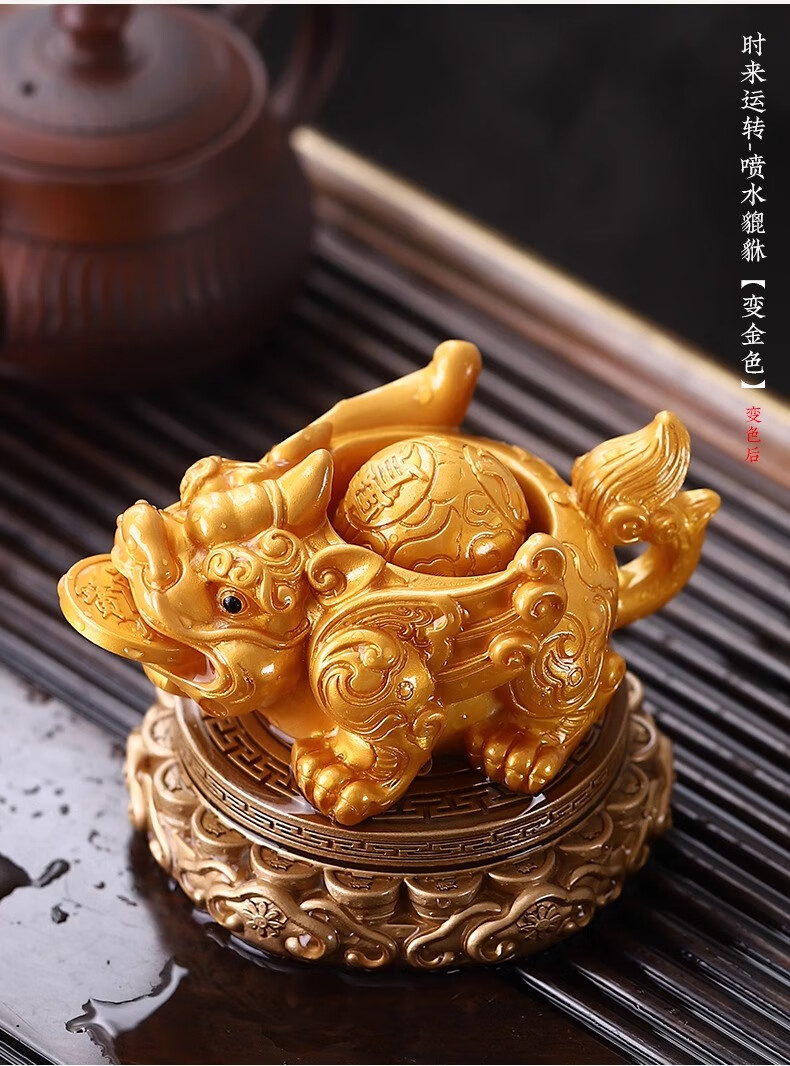 Cha Xiao'er's color-changing tea pet comes and goes, Pixiu tea table, tea table ornaments, tea table decorations, high-end tea set decorations, rotating - water spray Pixiu (turns gold) + gift box
