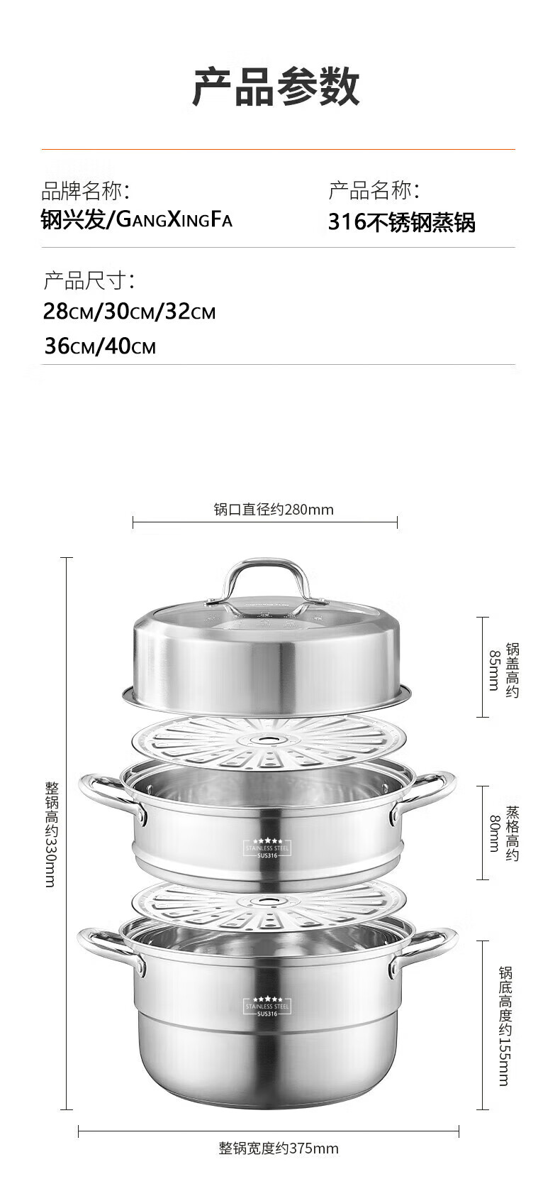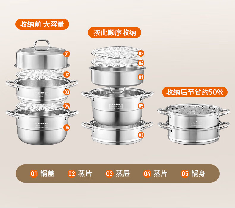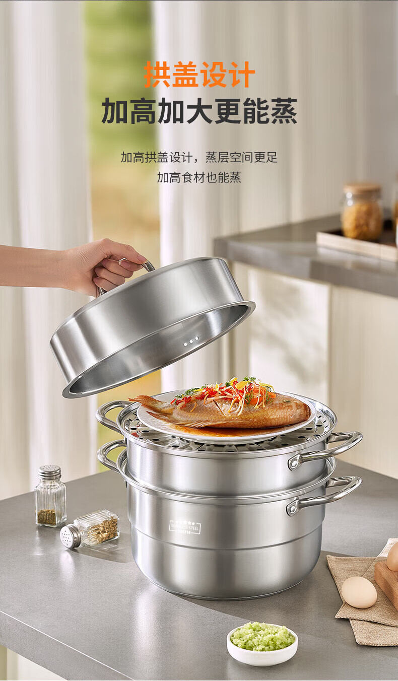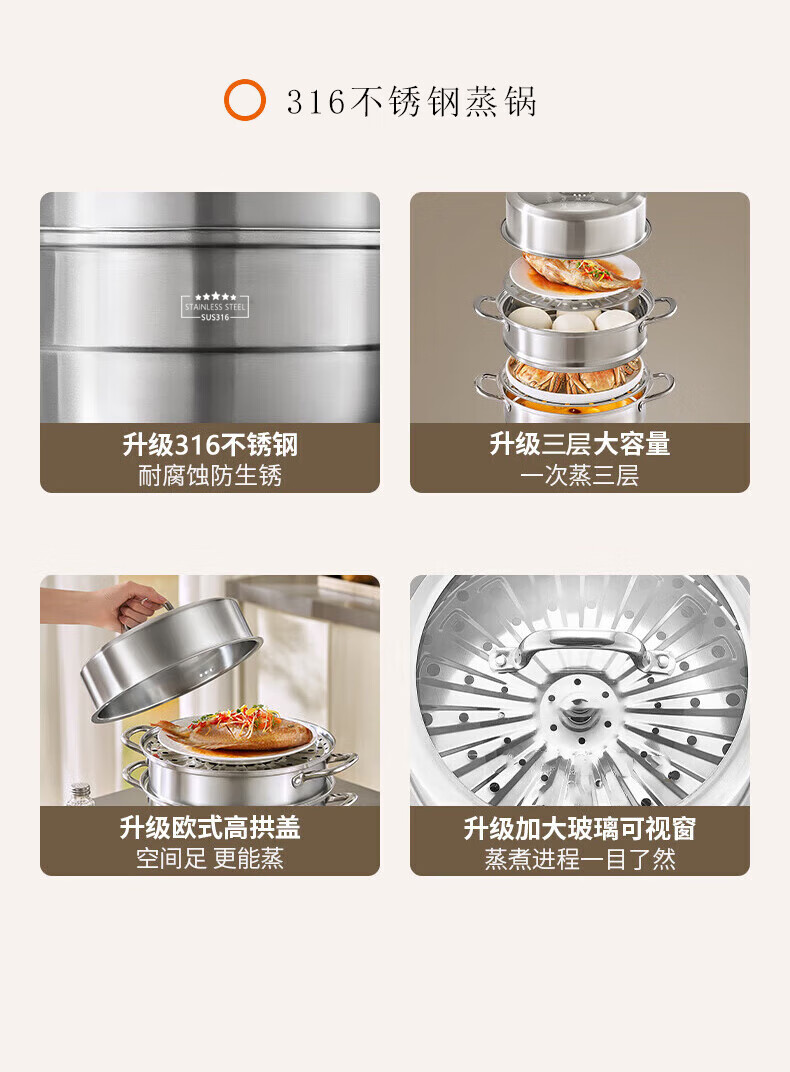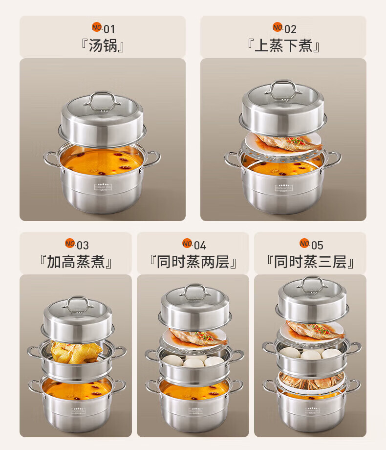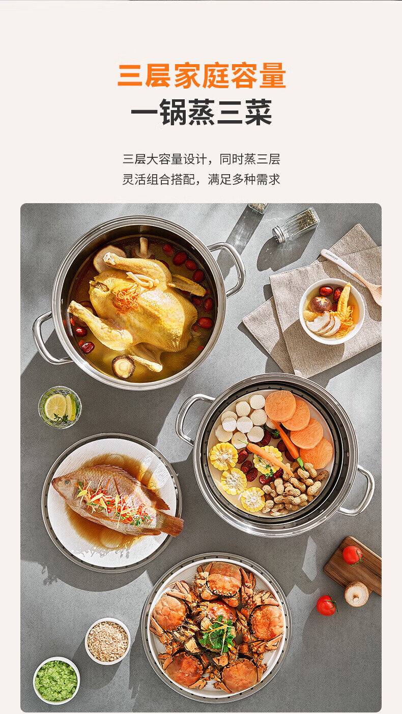 Ten Billion Bear Steamer household food grade 316 stainless steel multi-layer steamer enlarged and thickened induction cooker gas large capacity steamer three-layer steamer 316 food steel double bottom 28cm