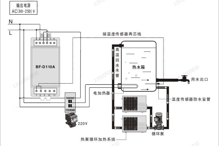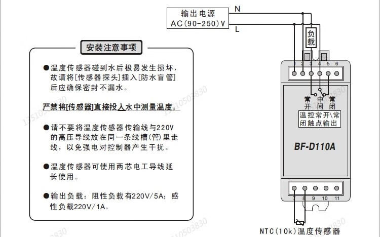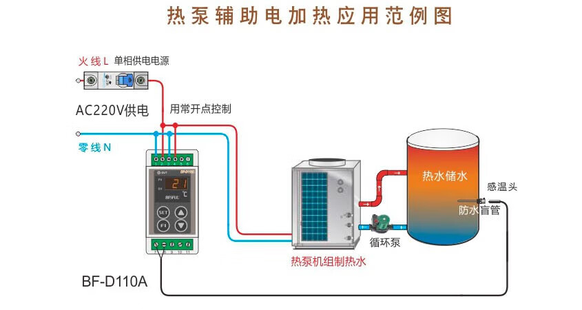 Bihe BF-D110A Microcomputer Universal Temperature Controller Solar Rail Type Pipe Return Water Thermostat Official Standard + Temperature Sensing Line + 10cm Blind Tube