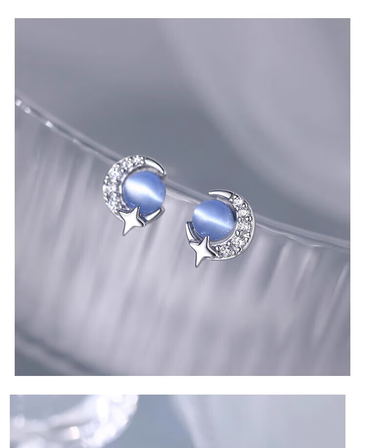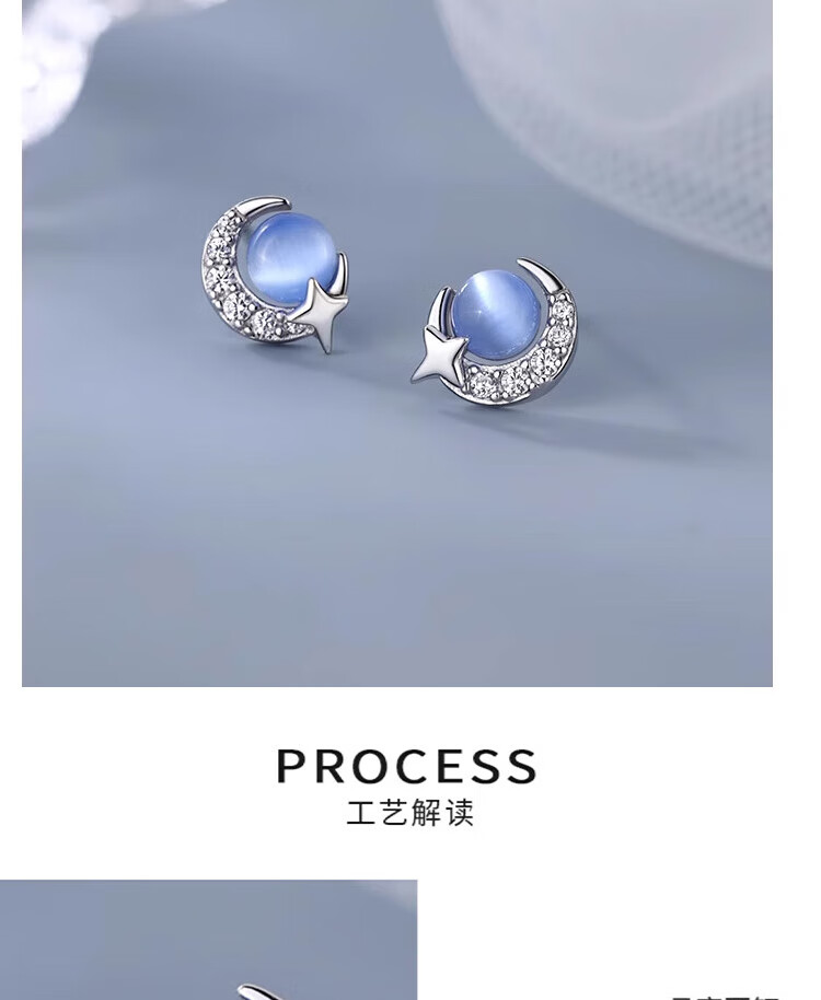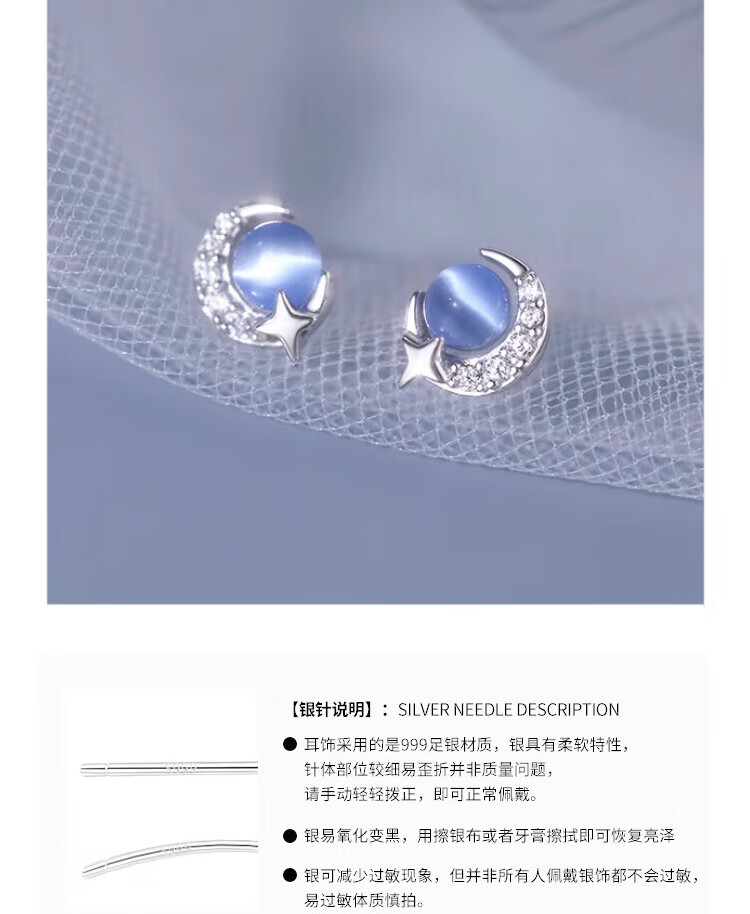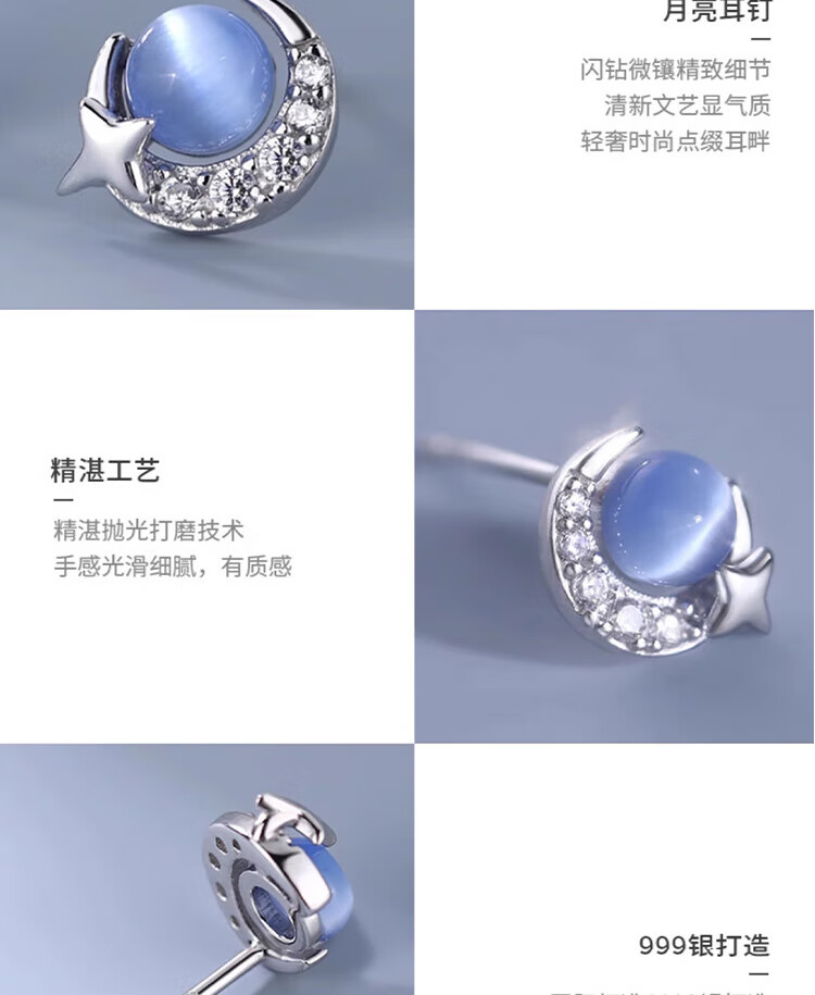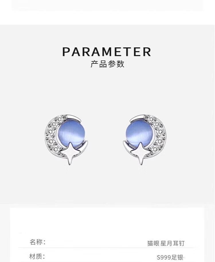 Mansheng 999 pure silver cat eye moon star earrings for women 2025 new style earrings pure silver earrings Valentine's Day practical gift 999 pure silver moon star earrings pair