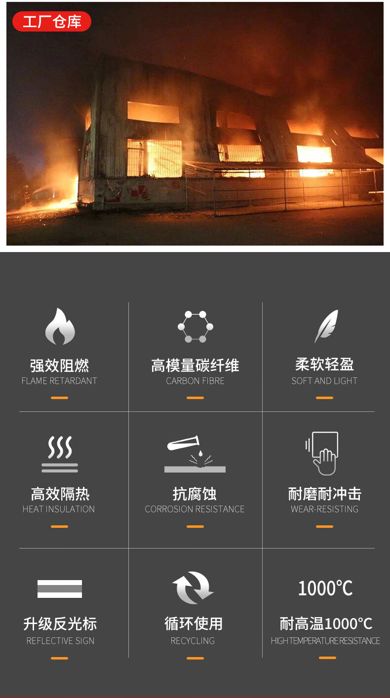 Giant wood fireproof clothing carbon fiber fireproof clothing cloak high temperature resistant 1000 degrees fire blanket household high-rise fire emergency escape smoke mask effectively filters smoke for 30 minutes