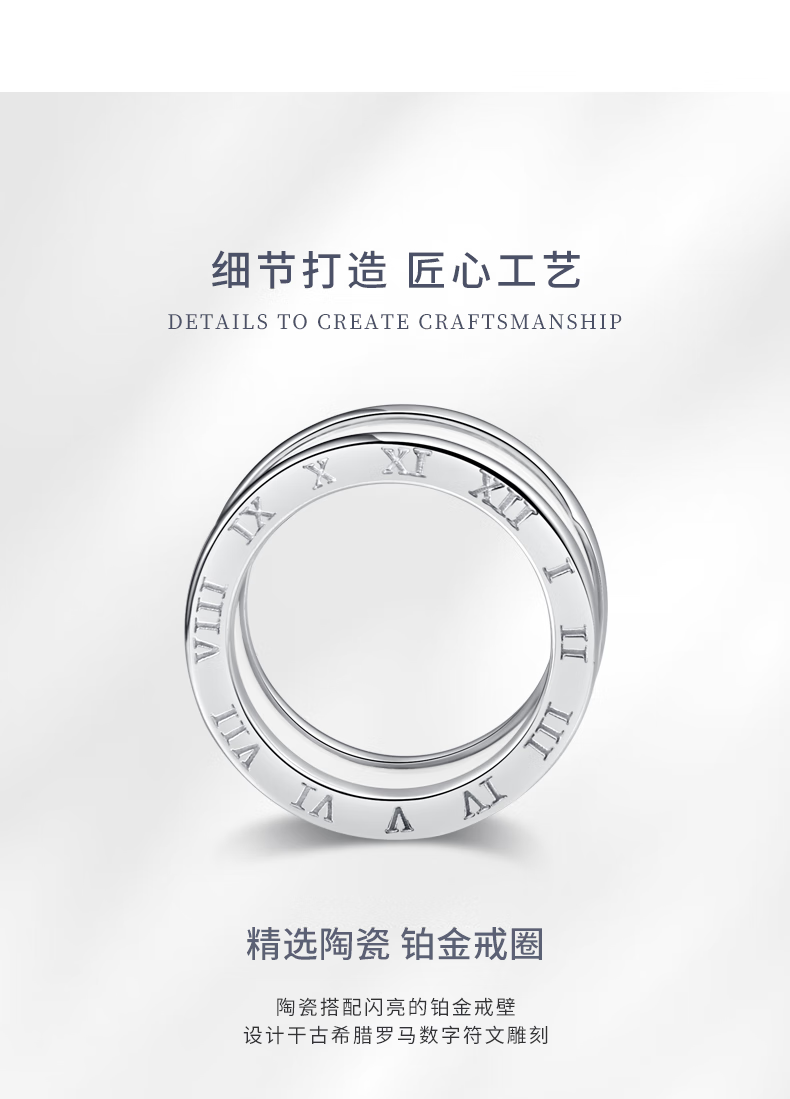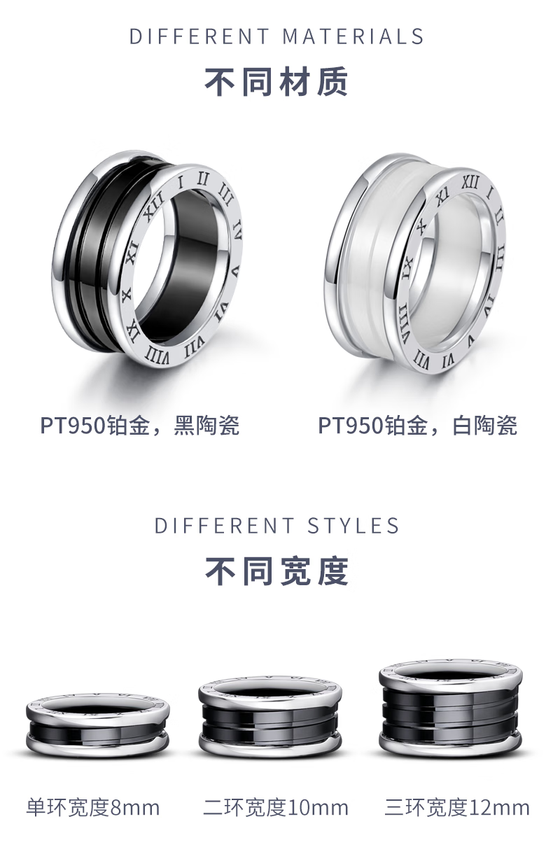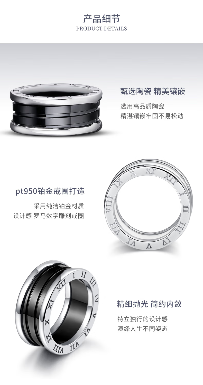 Ruofei platinum ring men's pt950 men's platinum ceramic ring trendy brand European and American style ring high-end men's ring gift black ceramic platinum ceramic ring No. 17