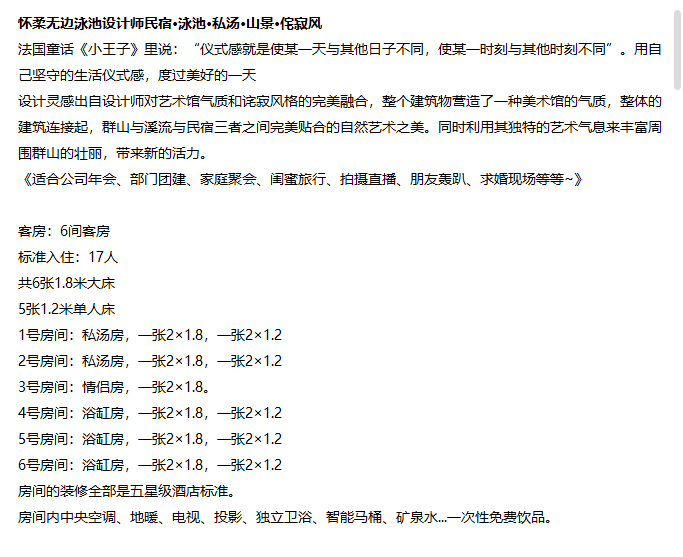 Yuanqi Sasso Huairou 6-bedroom weekend price (Friday-Saturday)