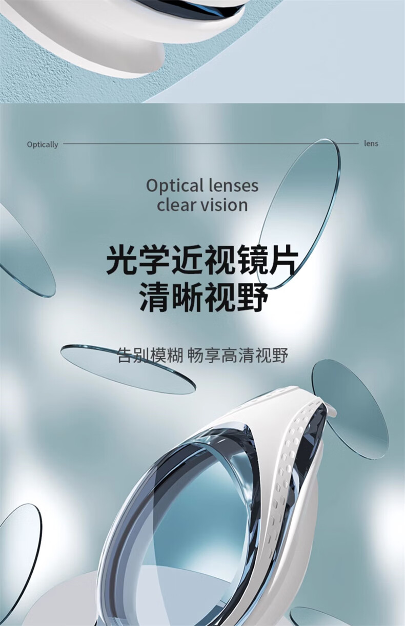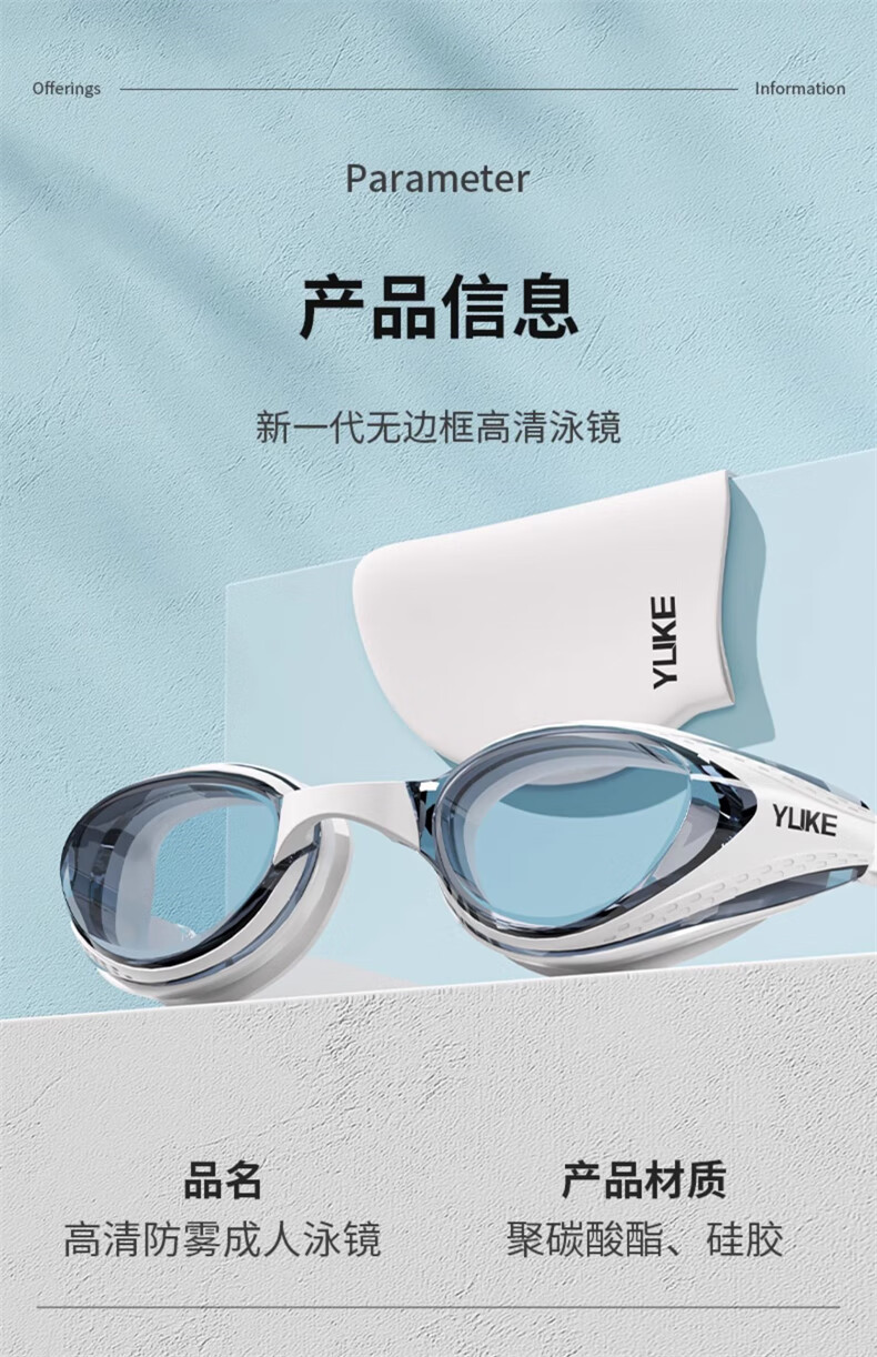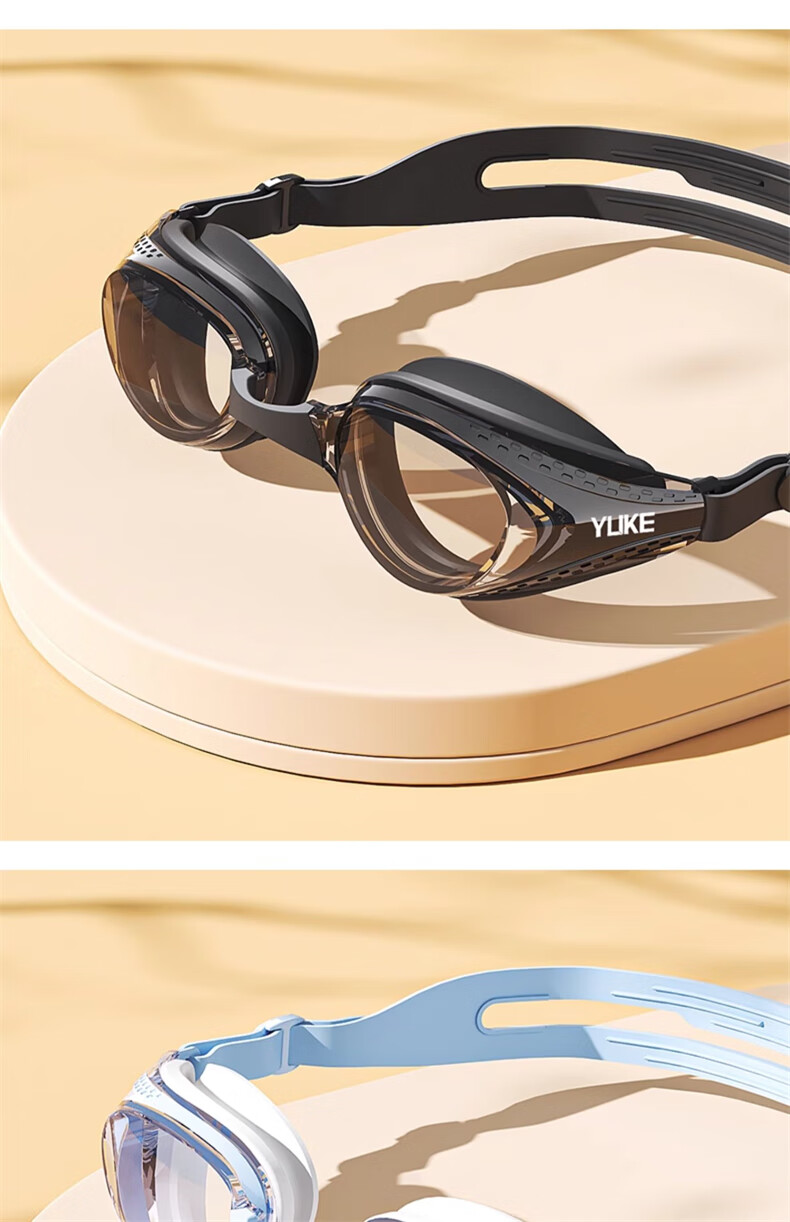 Yuke swimming goggles HD anti-fog waterproof women's myopia swimming goggles men's swimming cap swimming goggles swimming and diving equipment complete set dark night black earplugs nose clip + spare nose bridge flat light no myopia