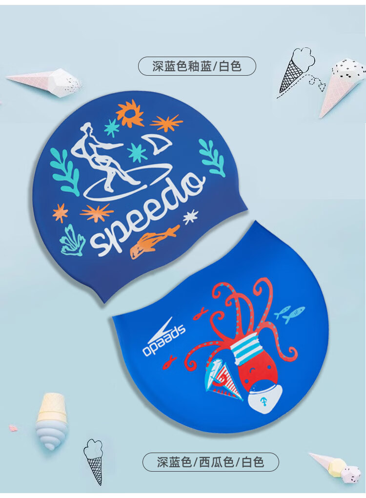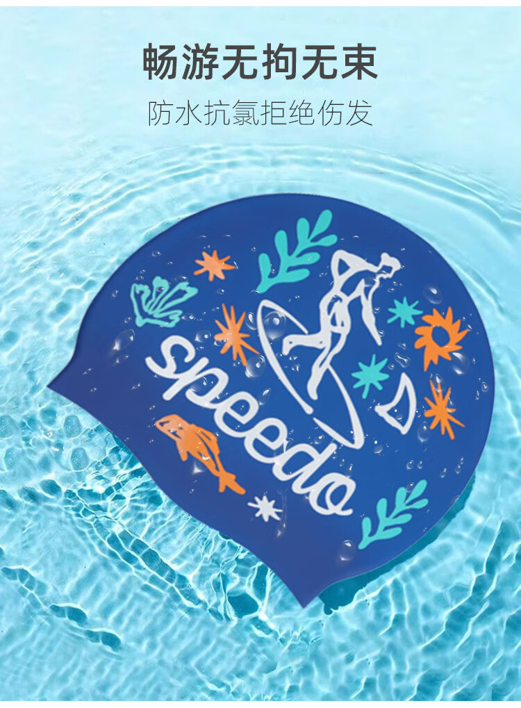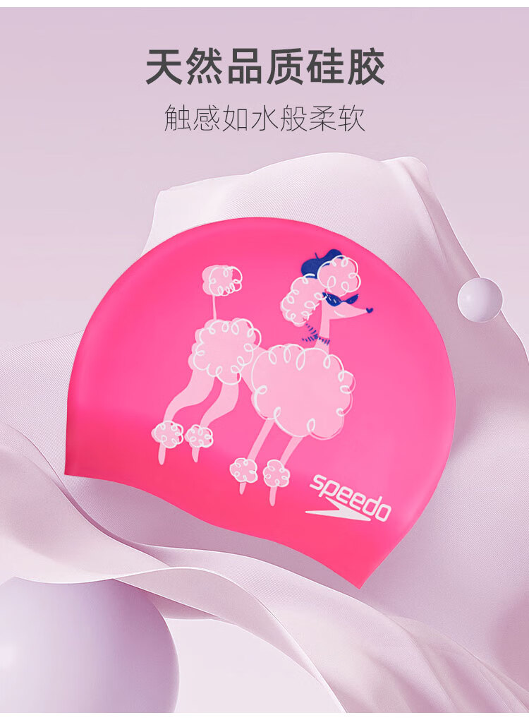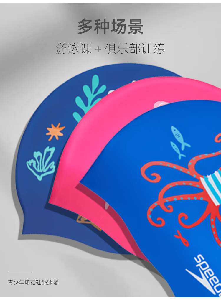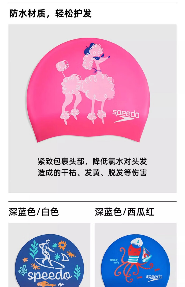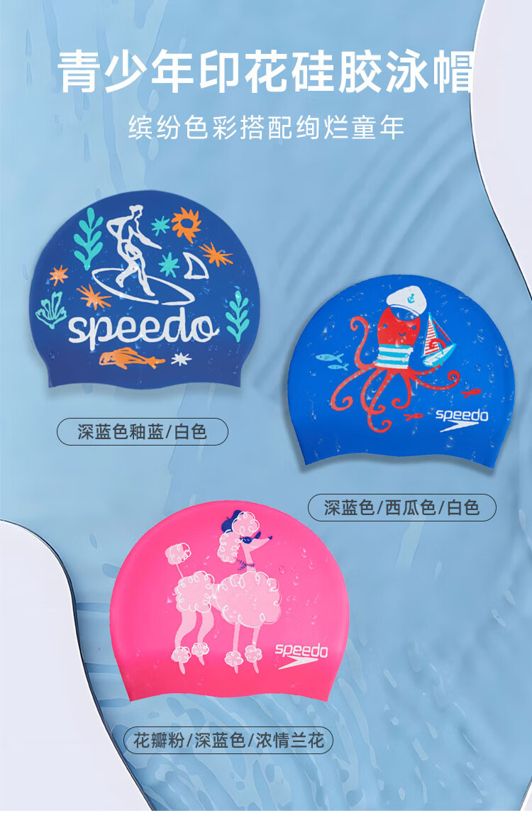 Speedo Teenagers and Children's Silicone Waterproof Swimming Cap Printed Comfortable Soft Ear Protection Boys and Girls Training Swimming Cap Rose Pink/Dark Purple Red/Petal Pink