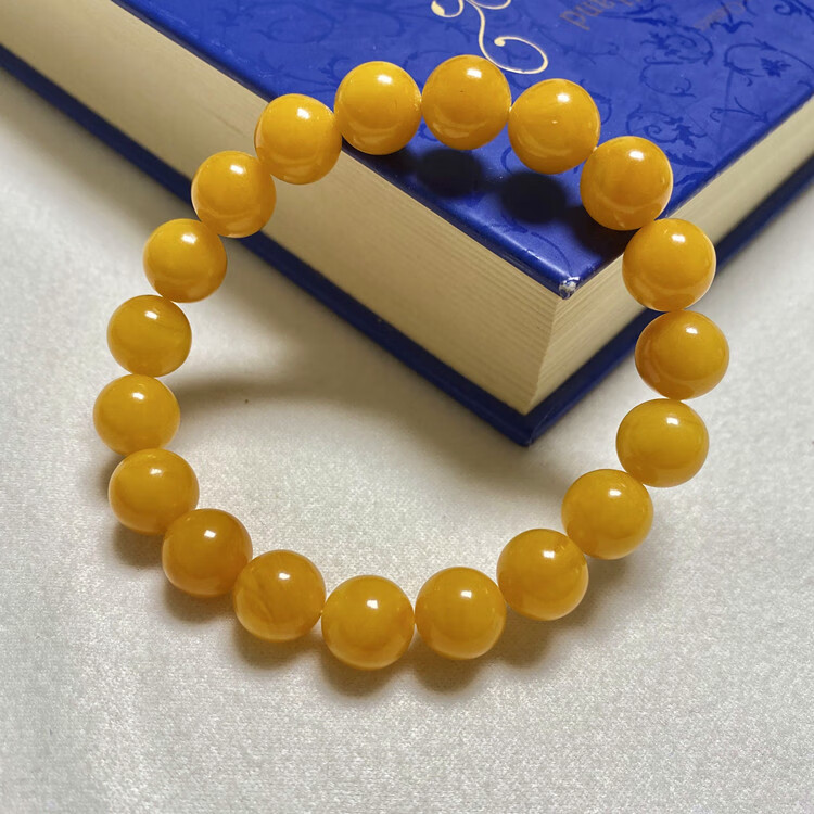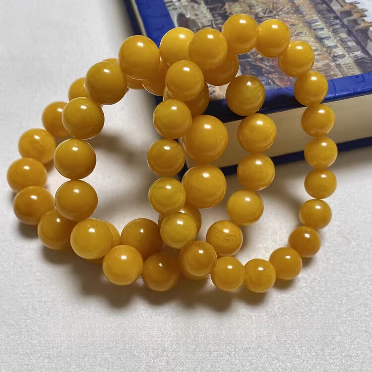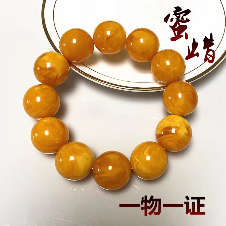 DL 1998 Fat Dong Lai quality chicken oil yellow beeswax bracelet natural l men and women raw mineral Russian material floating flower single circle bracelet with certificate Chicken oil yellow floating flower 12MM*16 pieces for women's medium wrist (with
