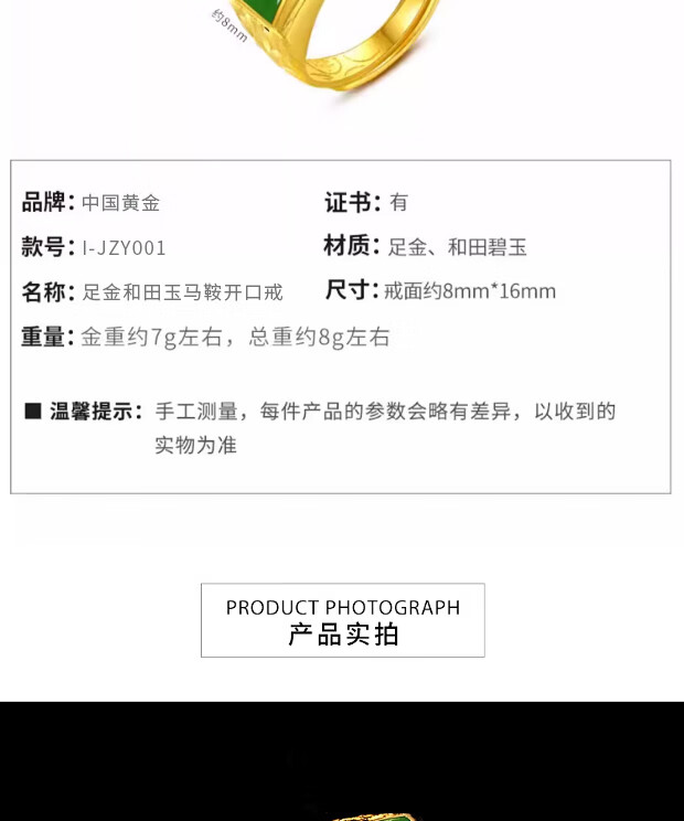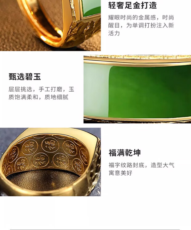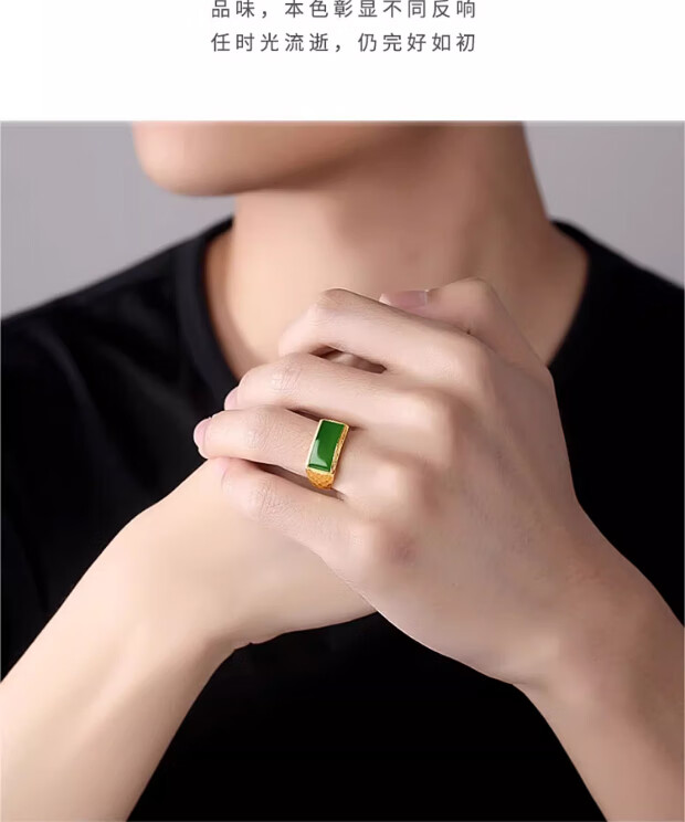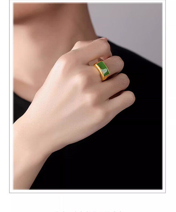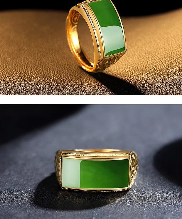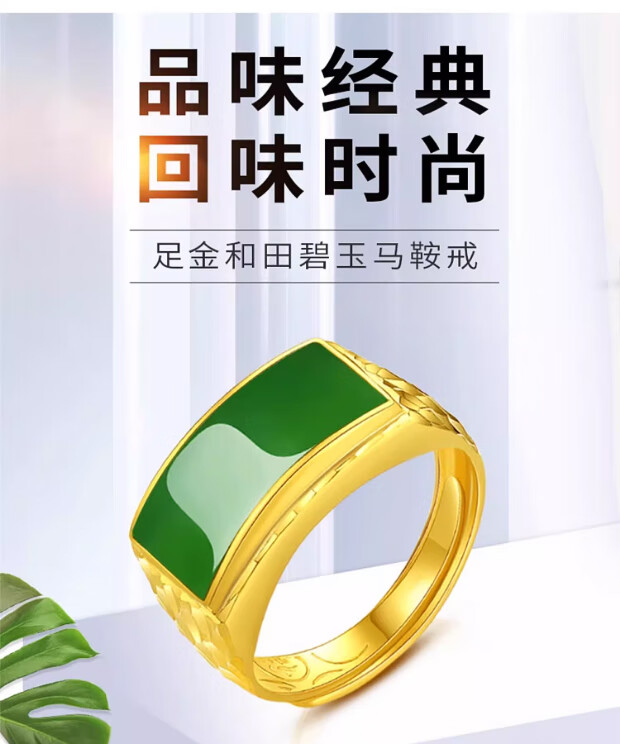 CHINA GOLD gold ring for men, Hotan Jasper saddle open ring, birthday gift for boyfriend and husband, gold inlaid jade open ring, gold weight is about 7.0g (labor cost 450)