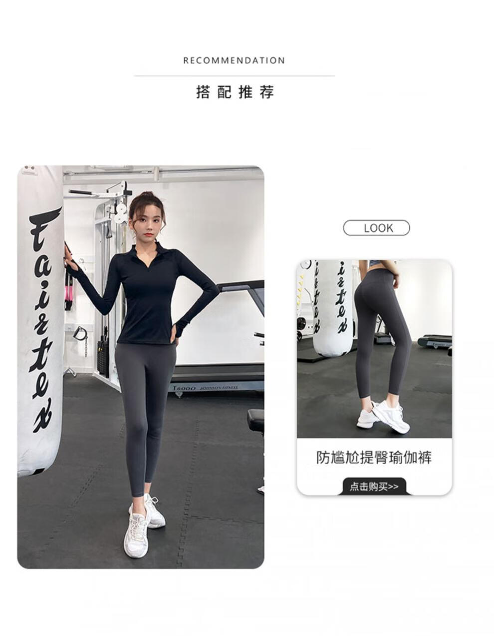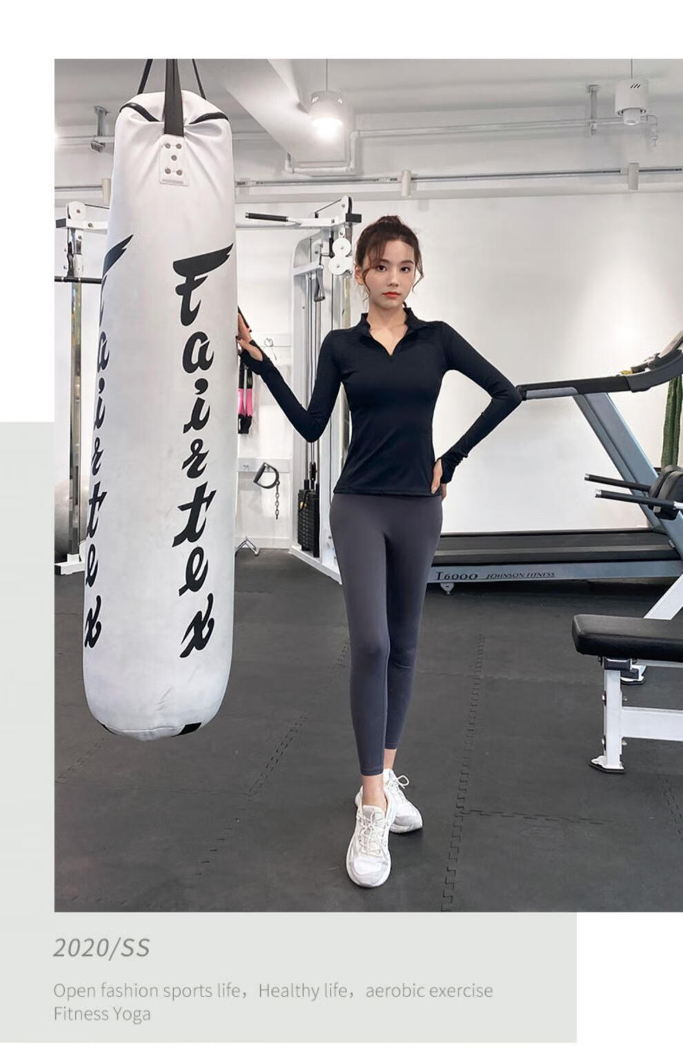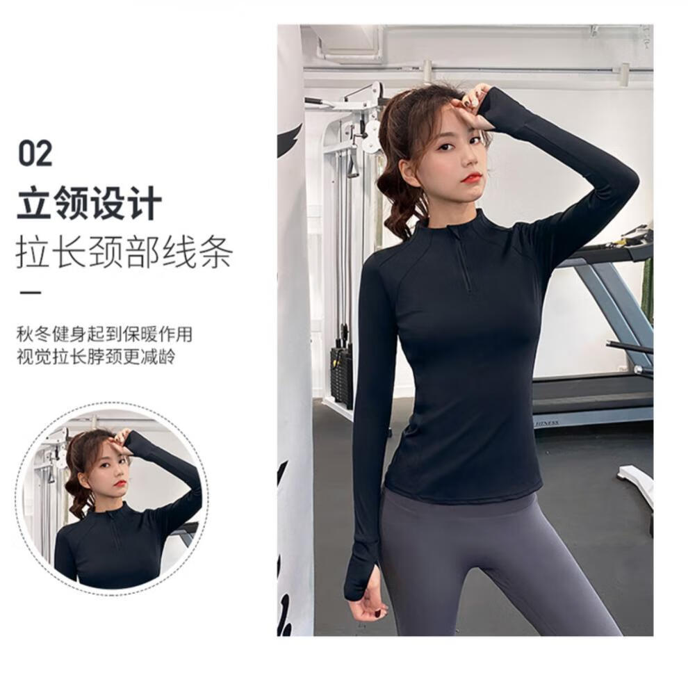 Youyou Running Sports Top Women's Autumn and Winter Velvet Morning Running Training Fitness Clothes Quick-Drying Pilates Yoga Wear Set Starry Black Top (Fellow Style) + Gray Pants (Add M