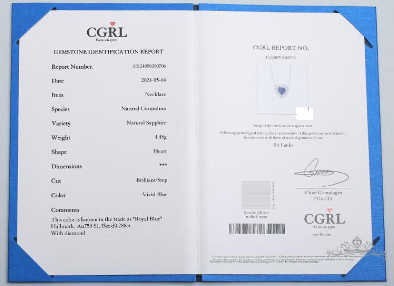 Haikai Necklace Women's Royal Sapphire Necklace Luxury Jewelry Valentine's Day Birthday Gift for Wife Royal Sapphire Heart-Shaped Necklace (1.45 carats/selected flawless)