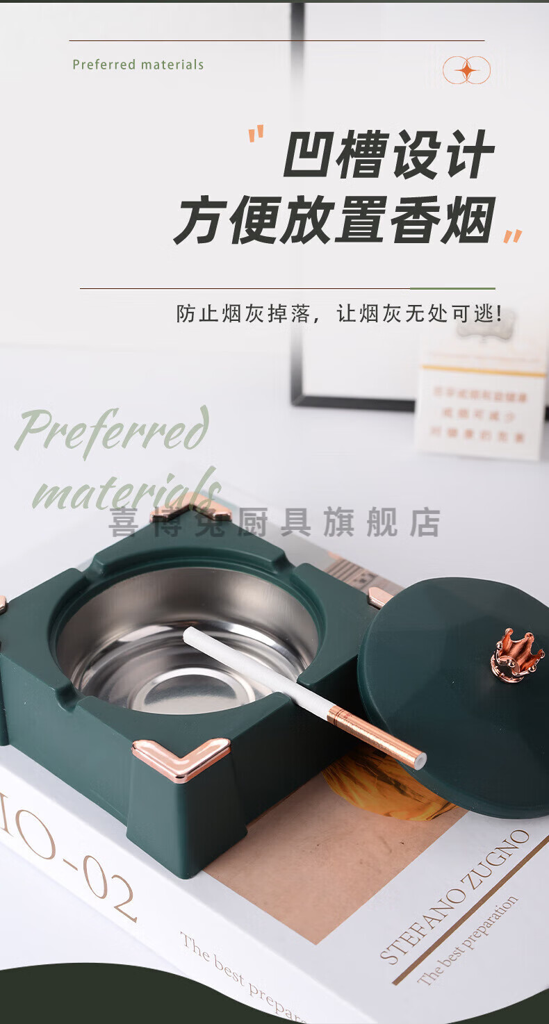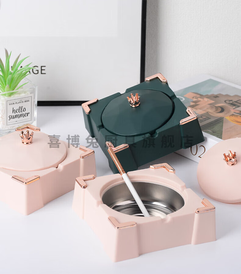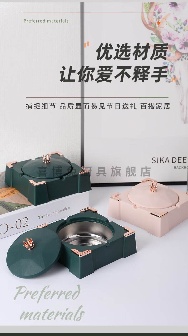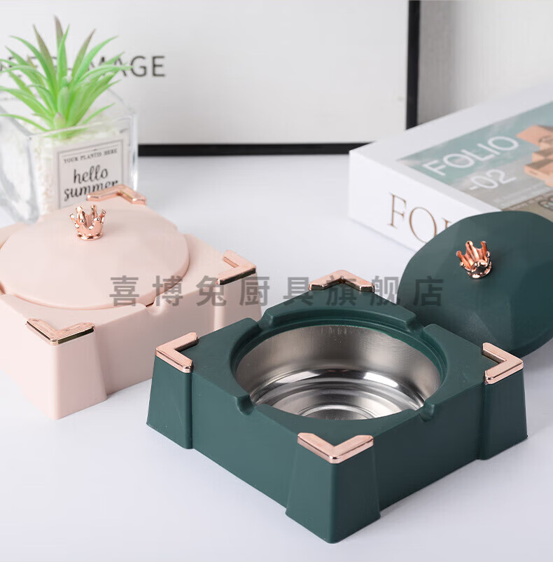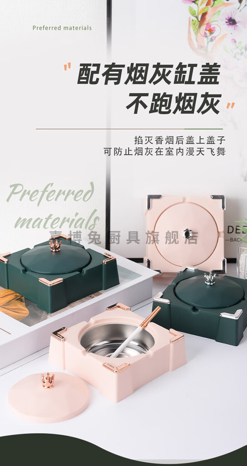Xibotu creative windproof ashtray with cover, personalized trend, anti-flying dust, home living room office Nordic ashtray, Nordic green