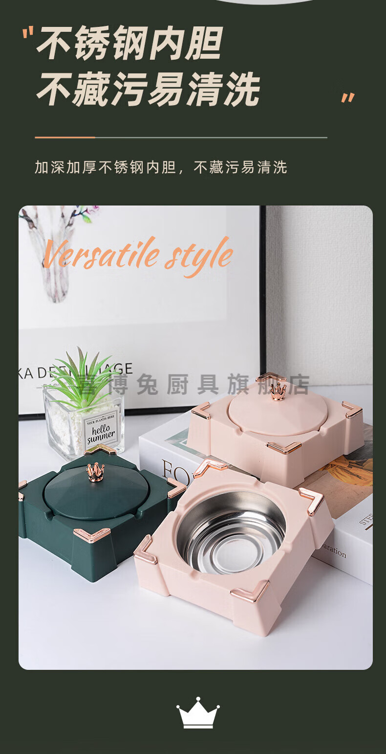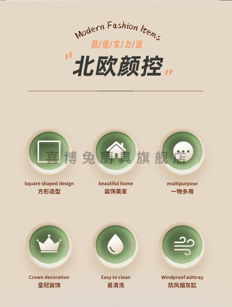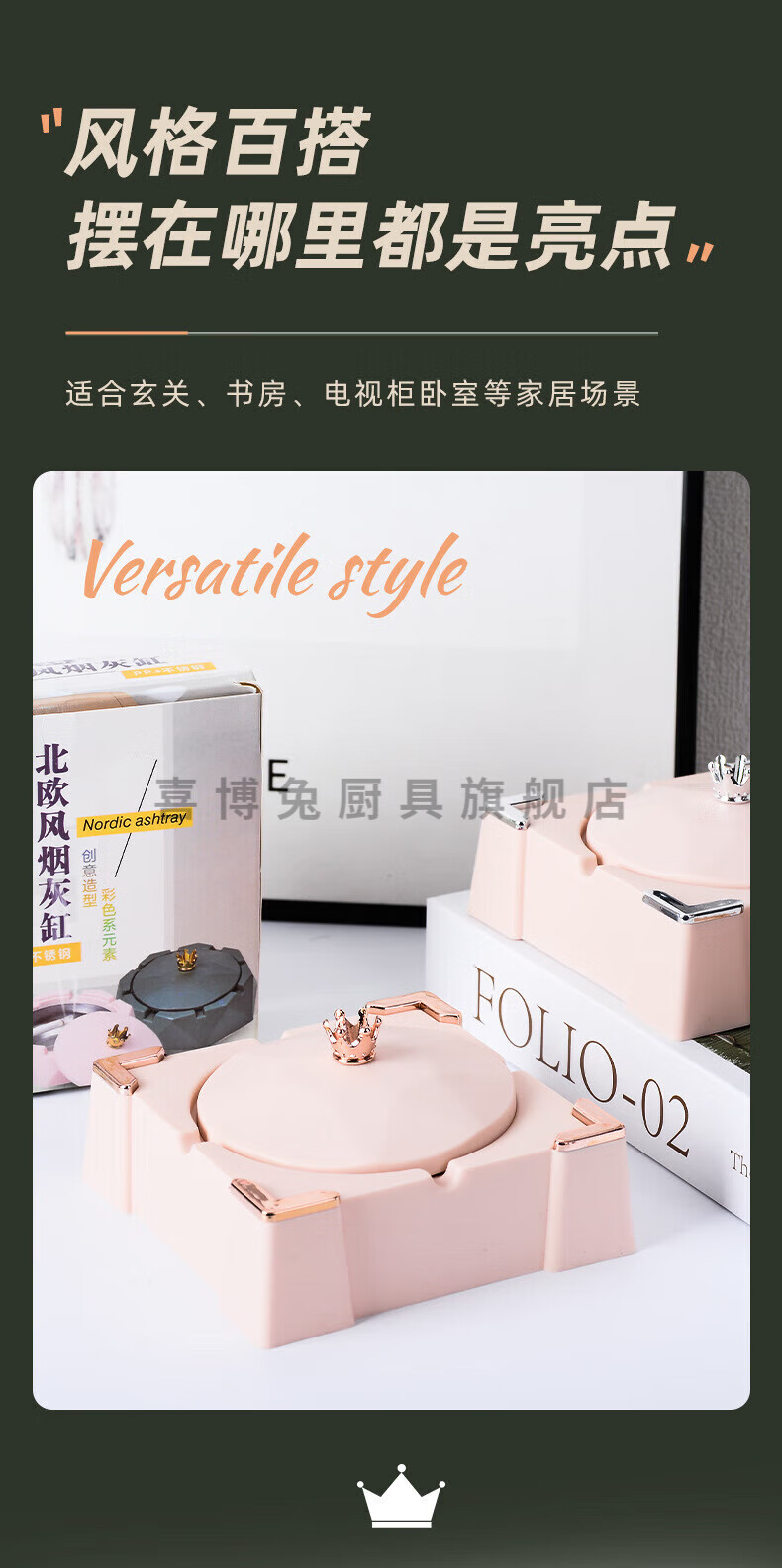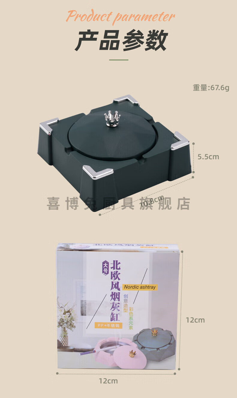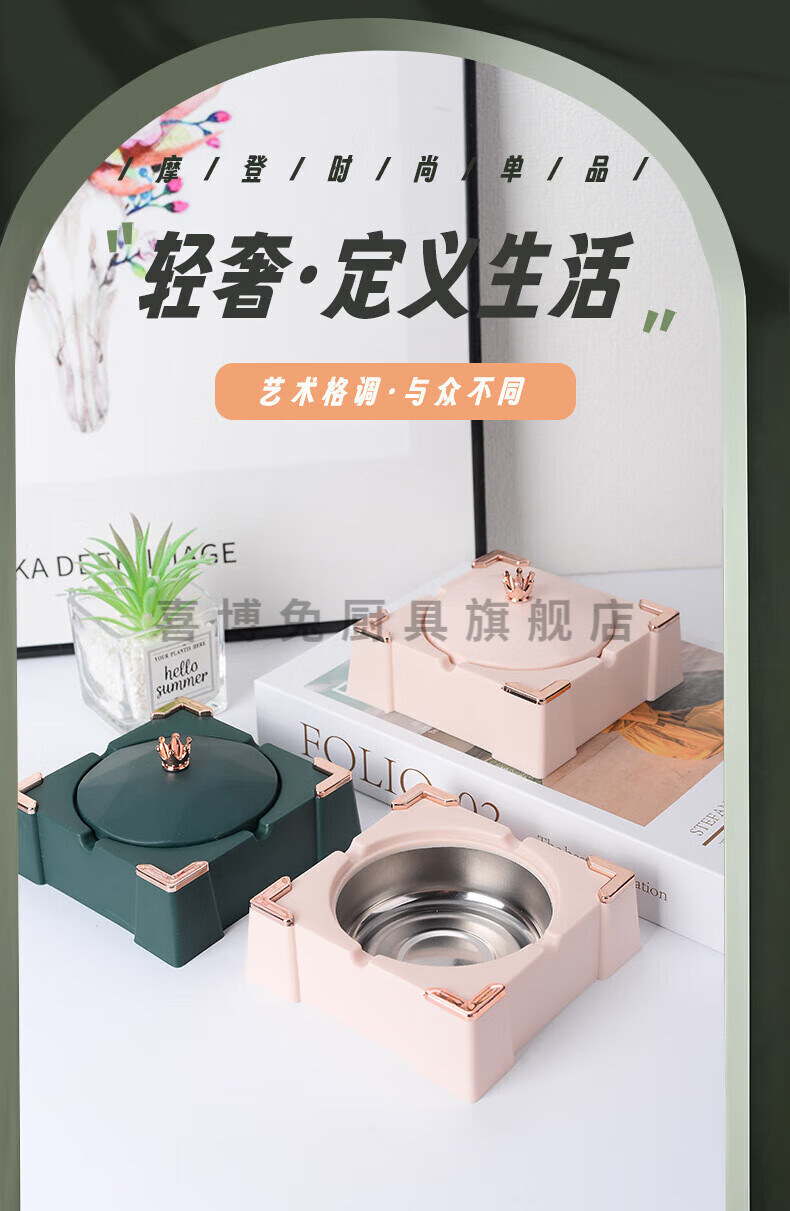 Xibotu creative windproof ashtray with cover, personalized trend, anti-flying dust, home living room office Nordic ashtray, Nordic green