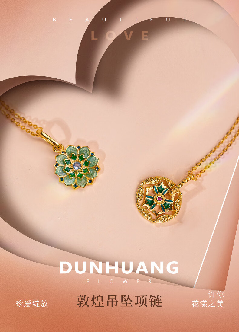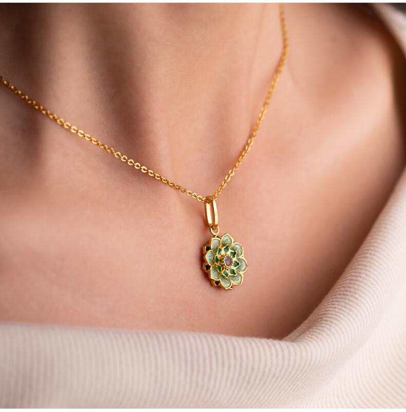 Dunhuang Academy Dunhuang Lotus Pendant Necklace High-end Light Luxury Gift 925 Silver Necklace Cultural and Creative Gifts for Girlfriends Zhuoqing Dunhuang Lotus Pendant Necklace