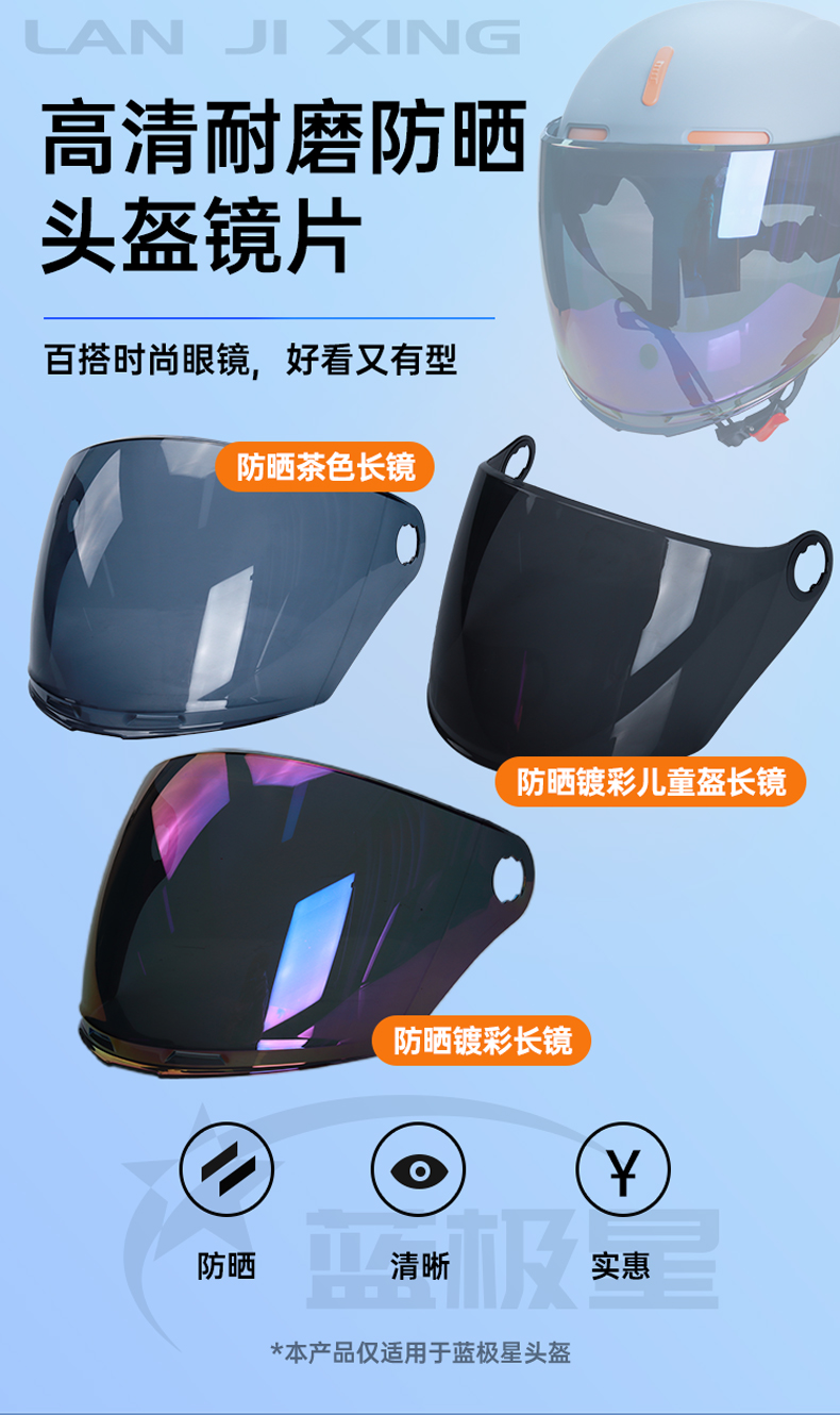 Blue Polestar special electric motorcycle helmet lens high-definition transparent sun protection helmet front mask sunshade windshield UV protection long mirror
