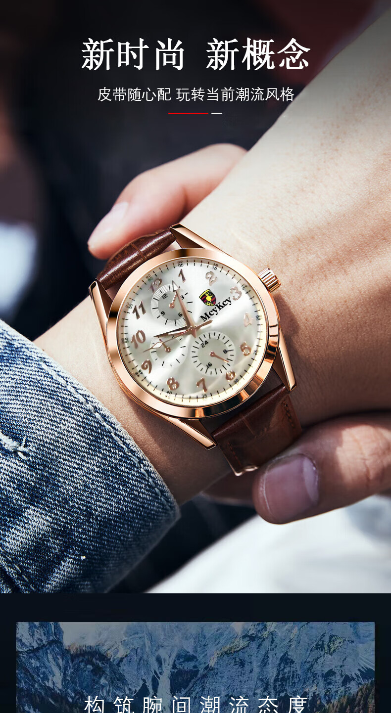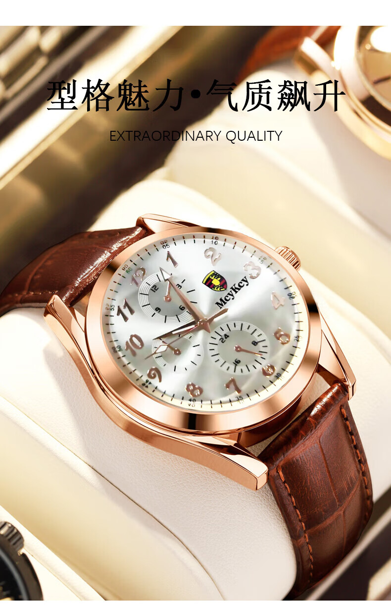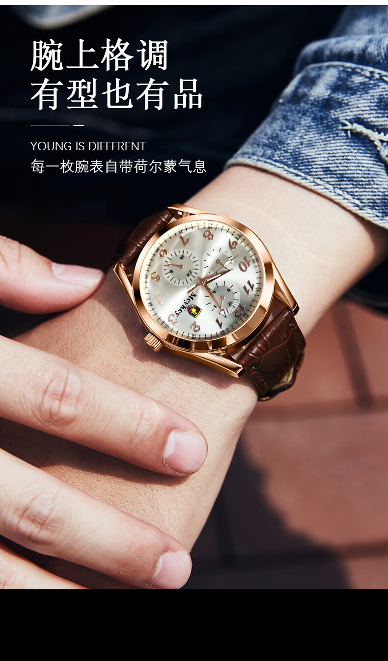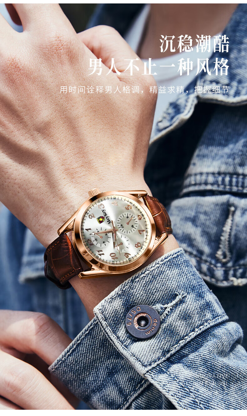 Watch men's fully automatic movement quartz watch strap business men's watch brown