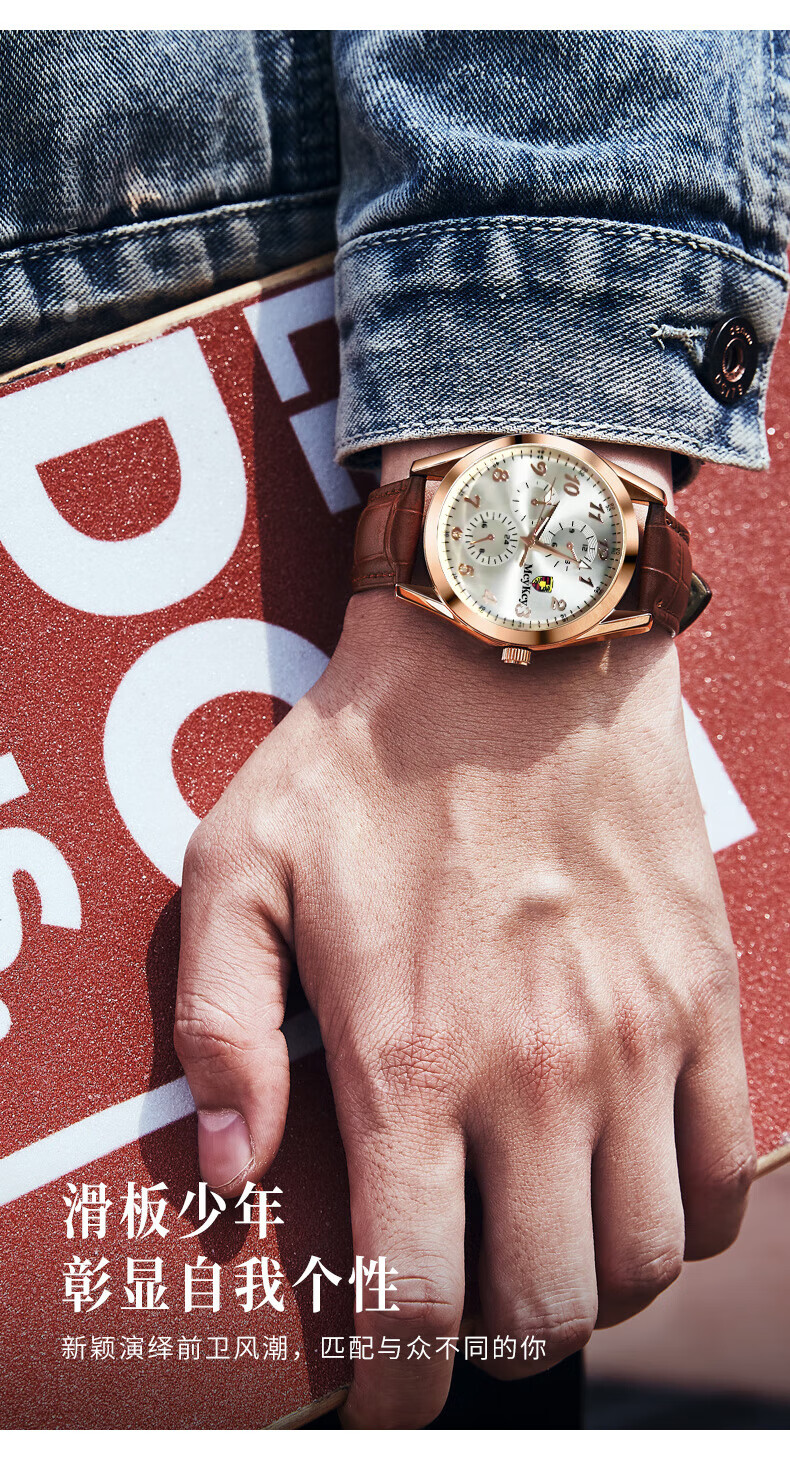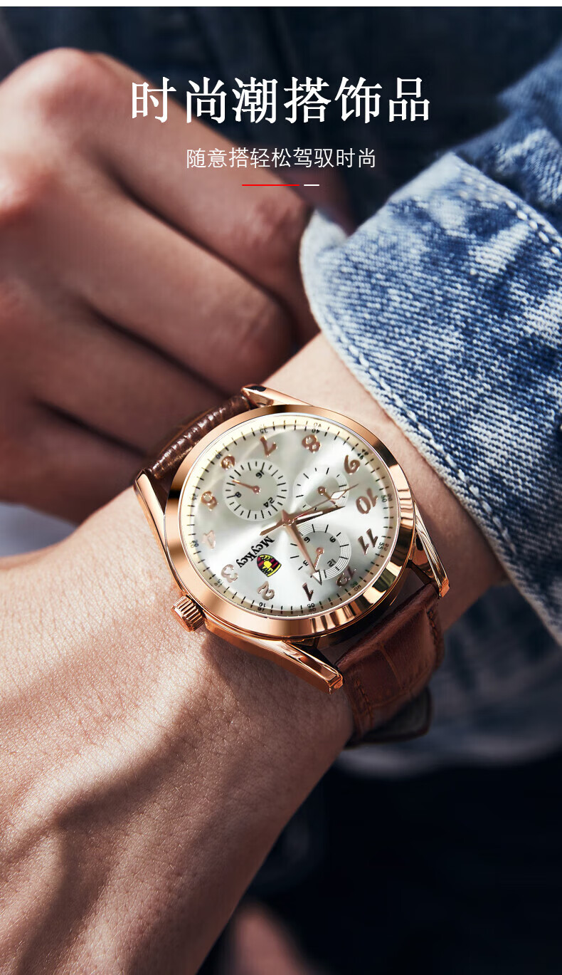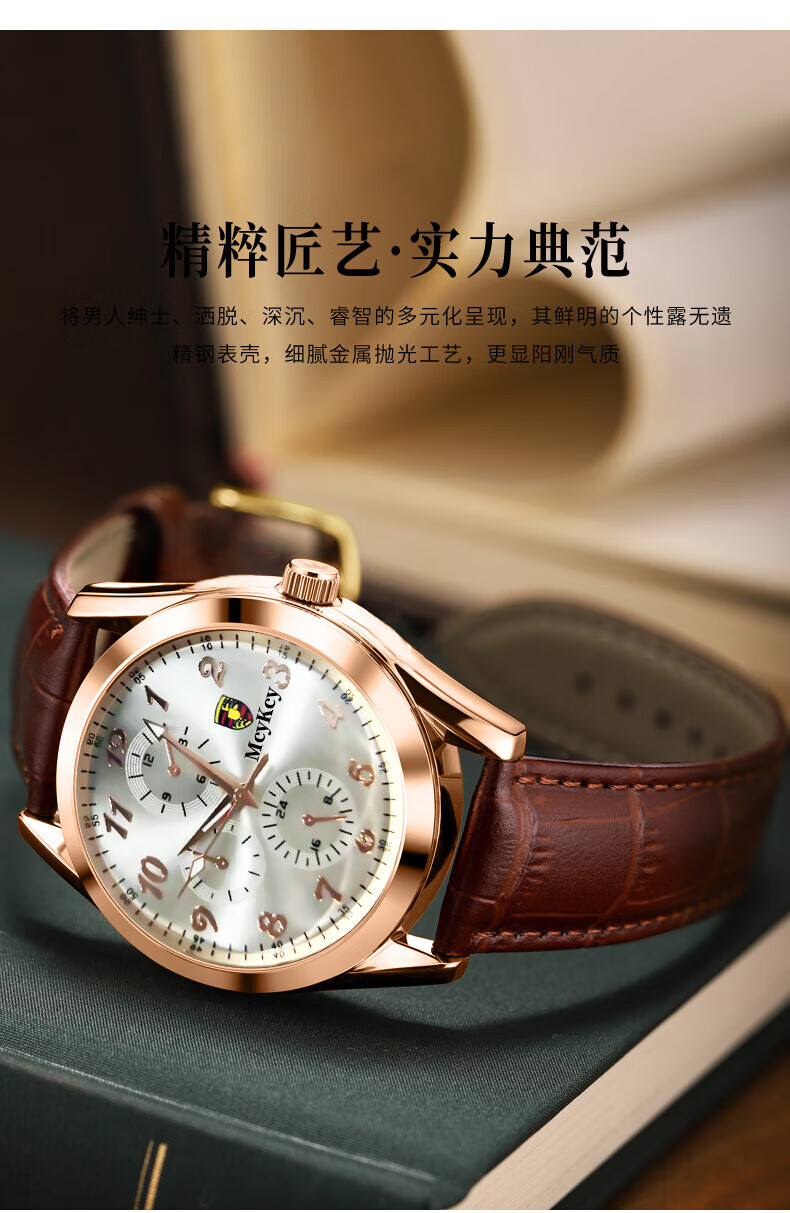 Watch men's fully automatic movement quartz watch strap business men's watch brown