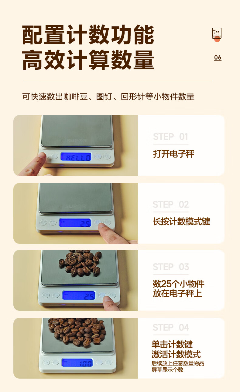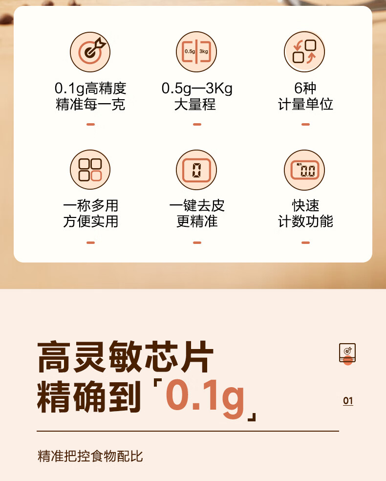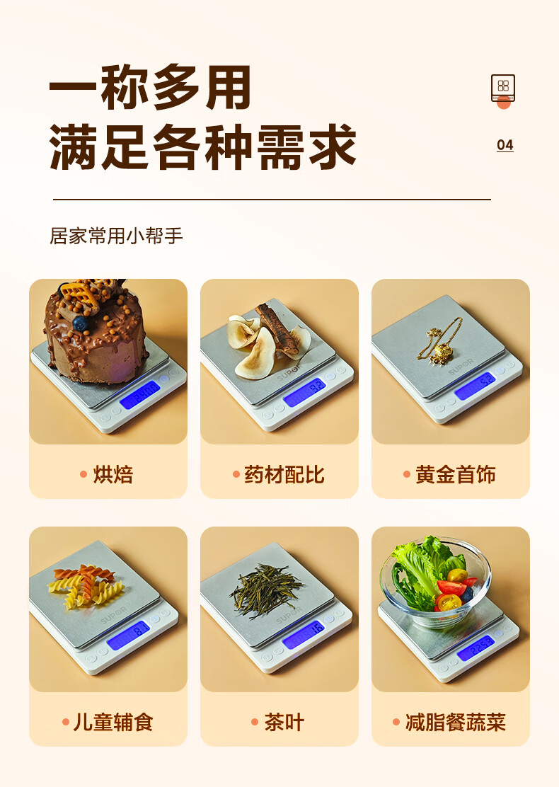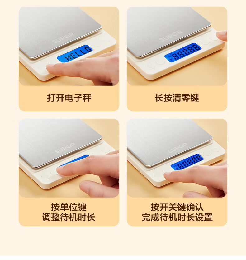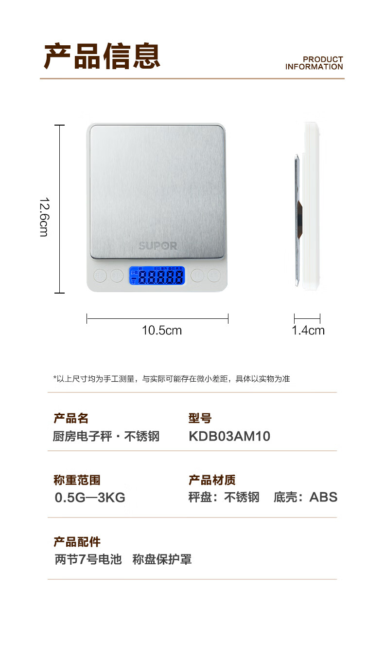 SUPOR (SUPOR) electronic scale household kitchen scale high-precision scale gram scale baked food weighing scale multi-function scale can be peeled with scale pan protective shell 3kg 0.1g