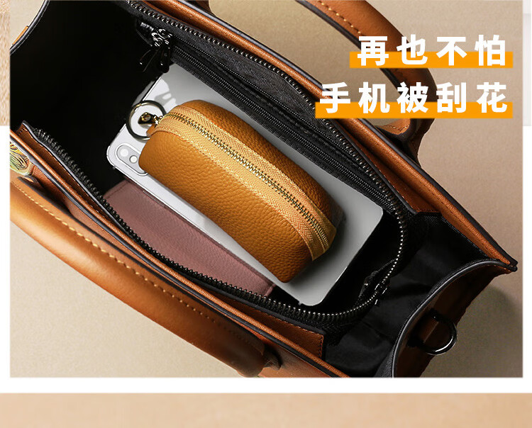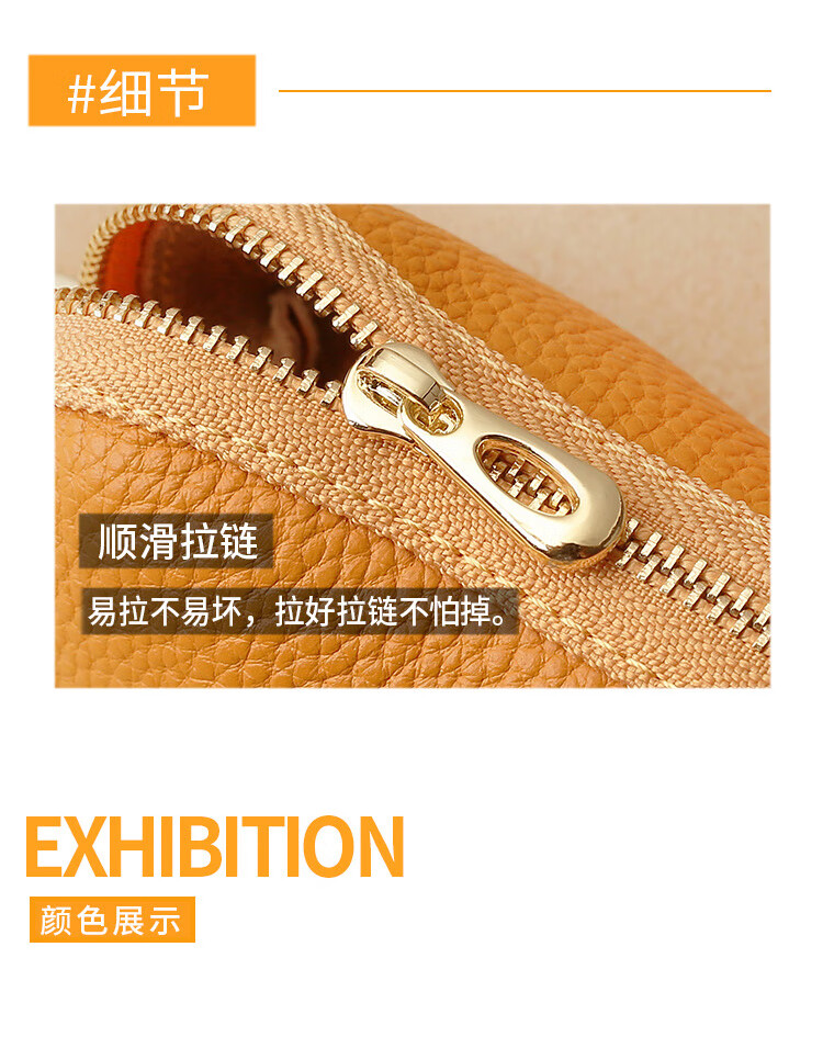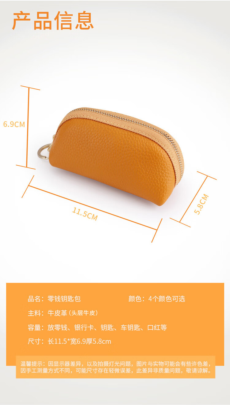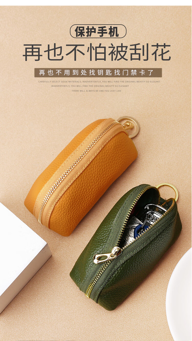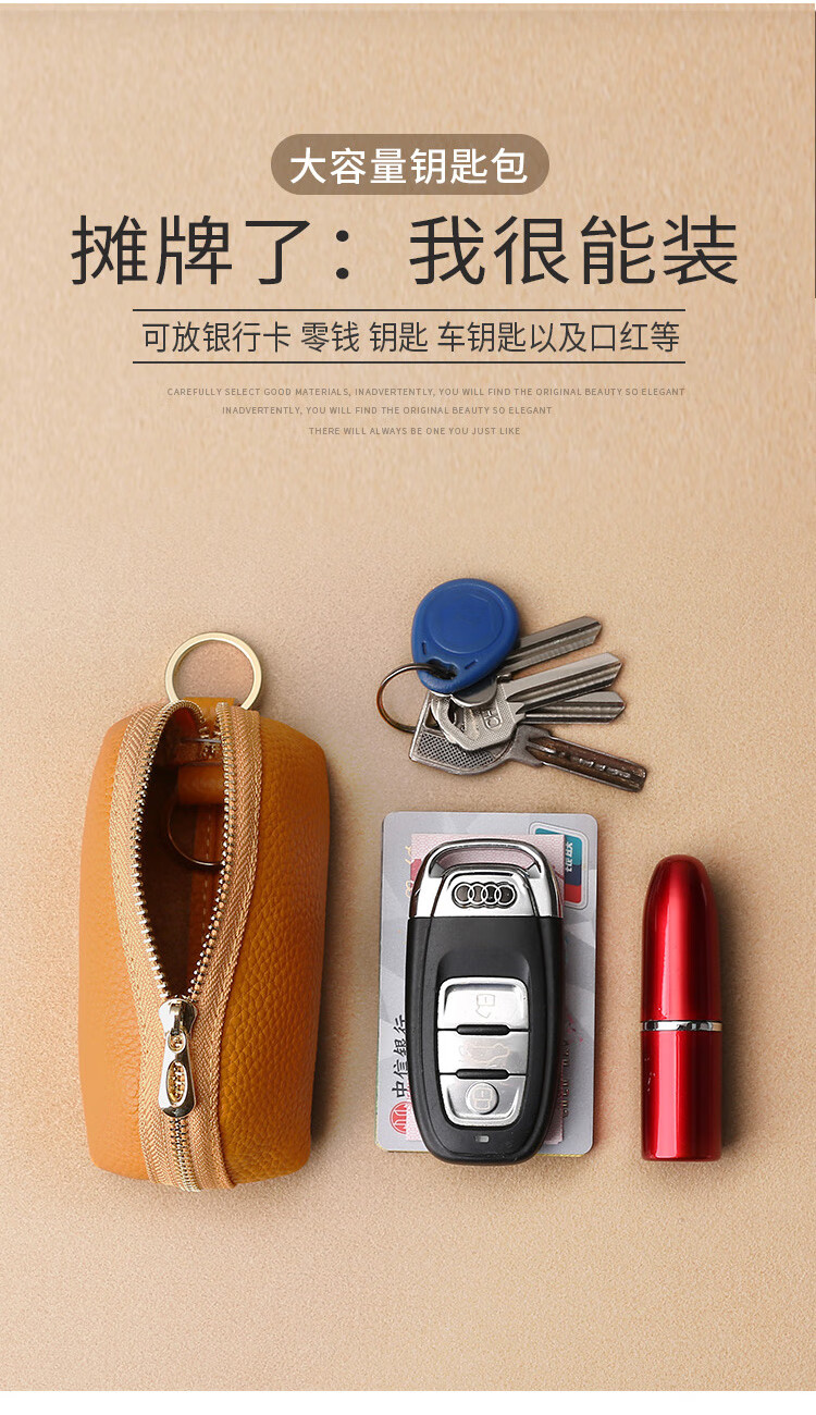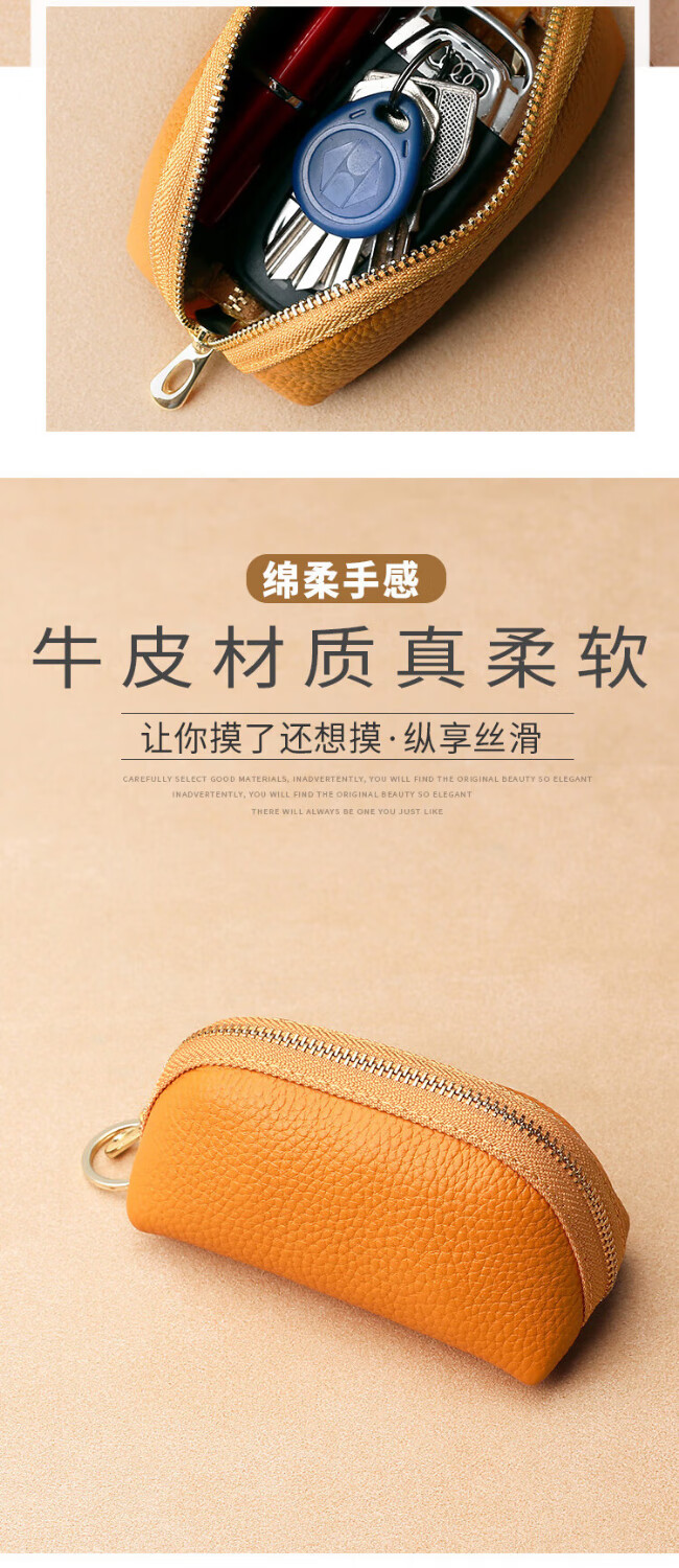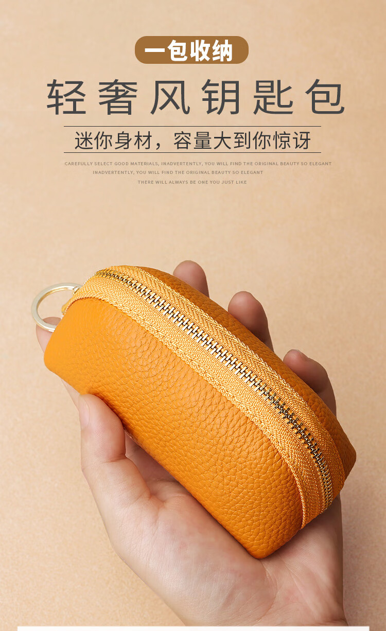 Xingchangwang genuine leather simple large capacity universal car key bag cowhide women's compact storage mini key bag cover home cute bright yellow