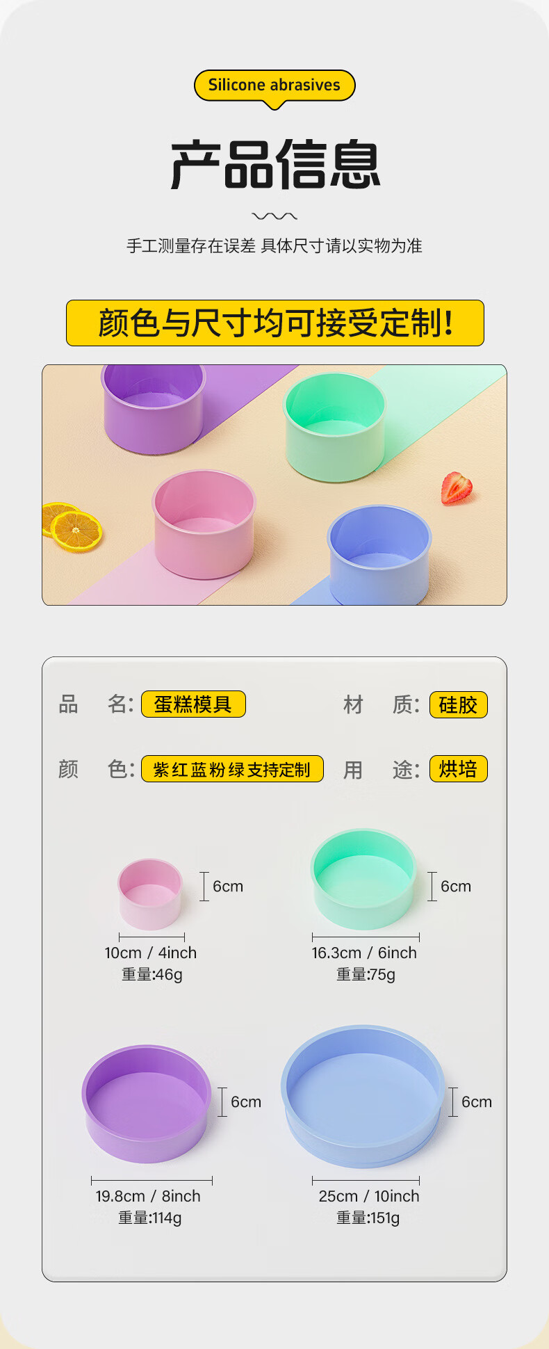 Chuge high-quality round cake mold silicone mold baking pan multi-size cake grinding tool mold wholesale light blue 6 inches