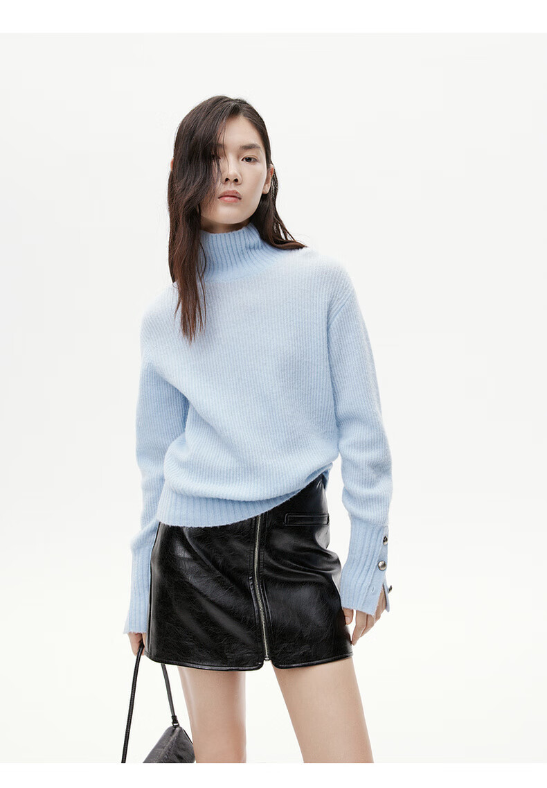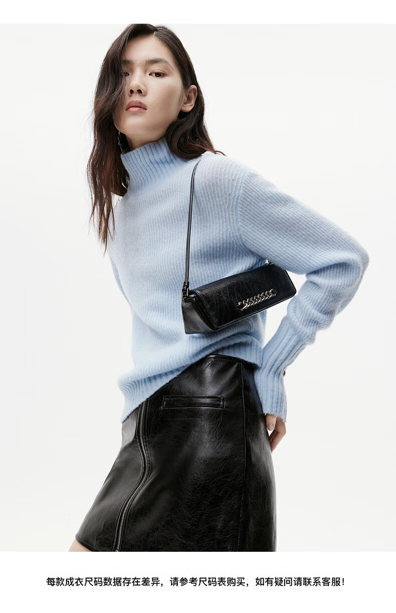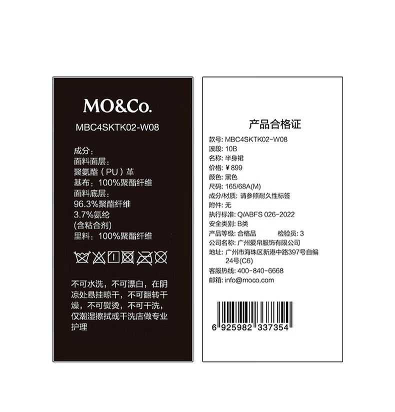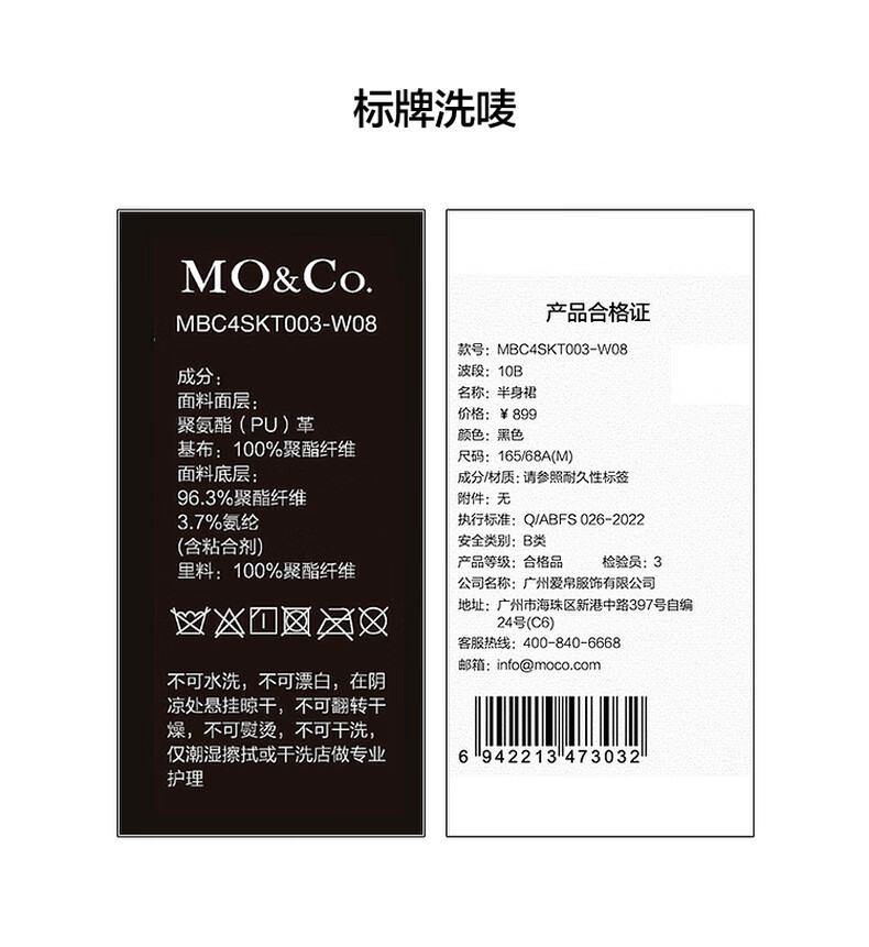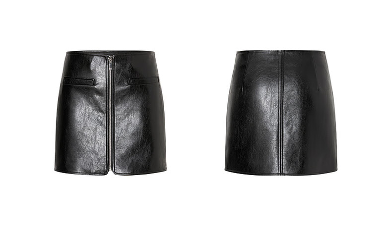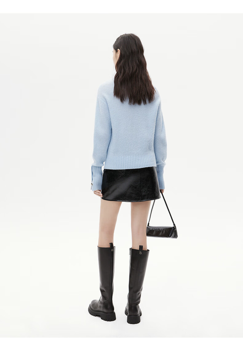 MO&Co. Rock style front zipper high waist knitted fabric base plain leather PU leather A-line short skirt skirt leather skirt Moanke black-2nd batch M 165