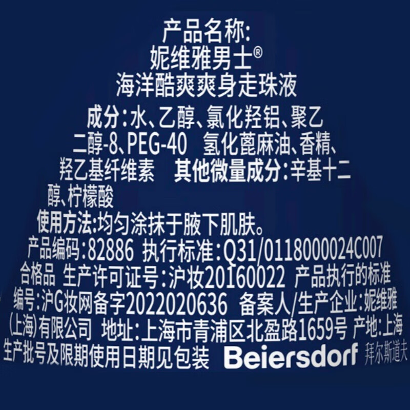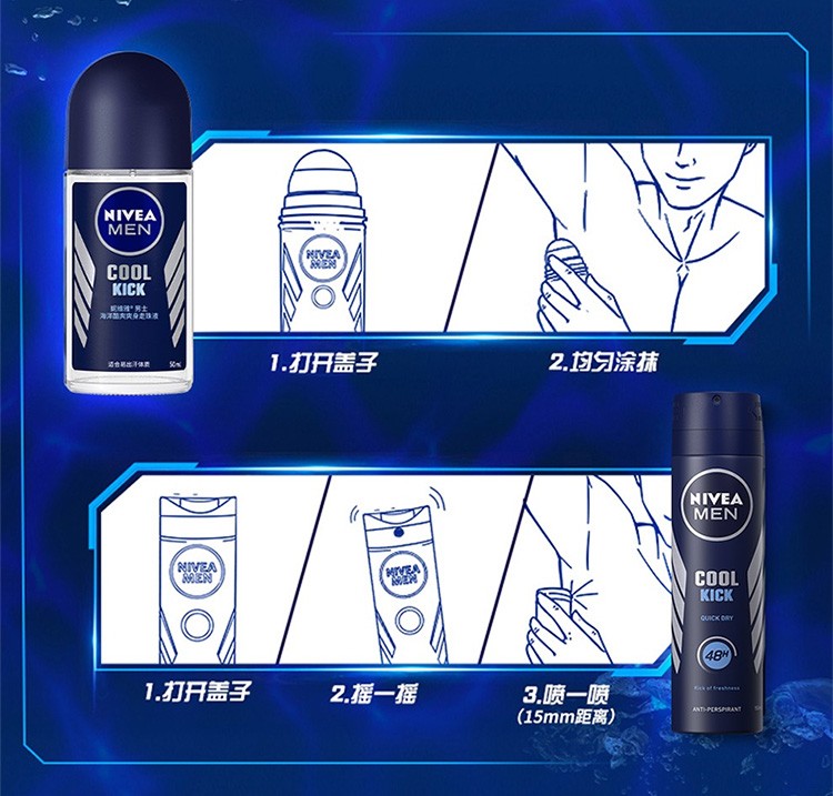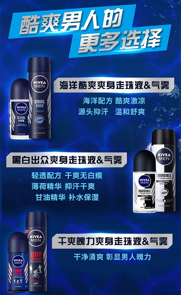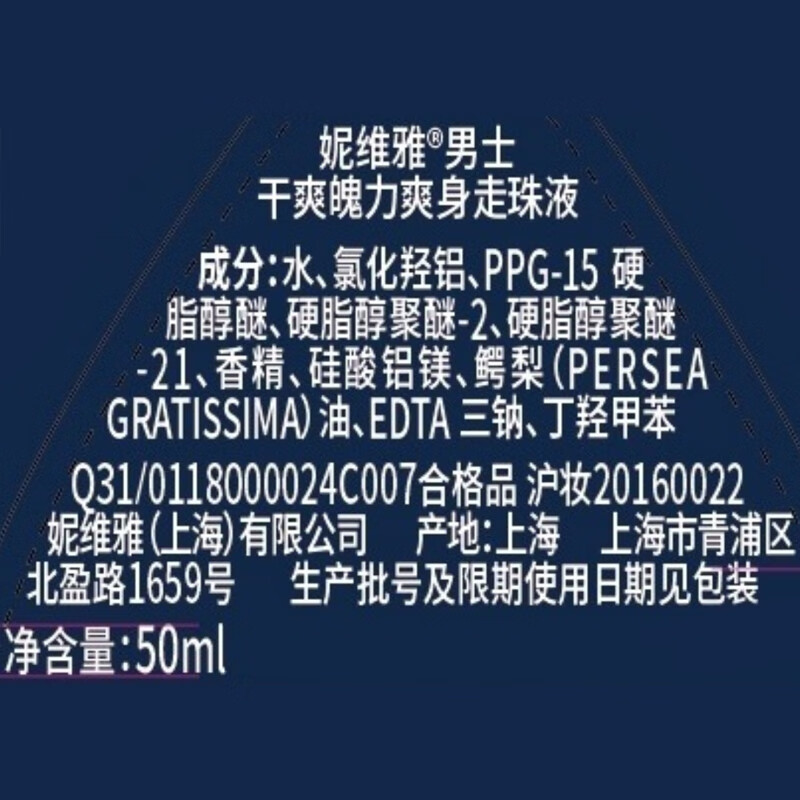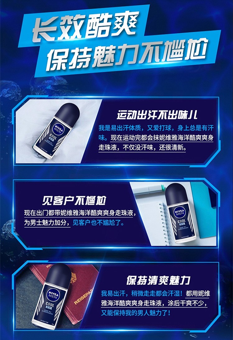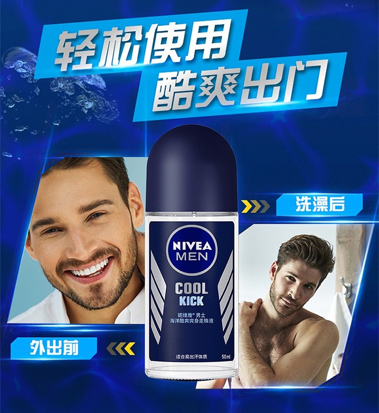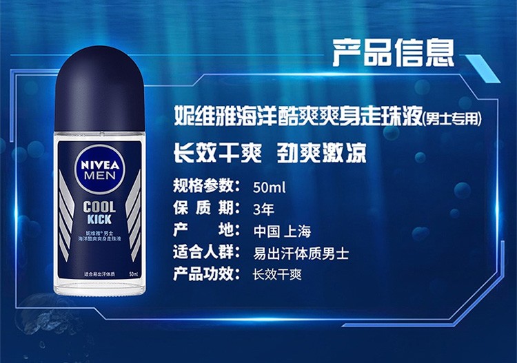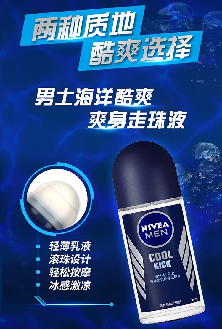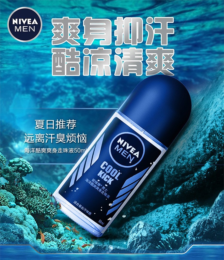 Nivea Men's Roll-On Underarm Deodorant Roll-on Roll-On to Suppress and Antiperspirant Summer Odor Body Odor Underarm Odor Fresh and Dry Ocean Cool Refreshing Roll-On Roll-On 50ml