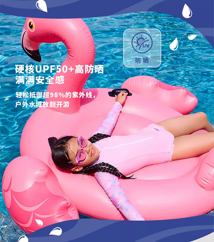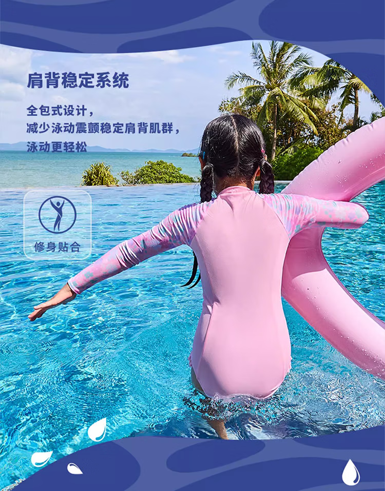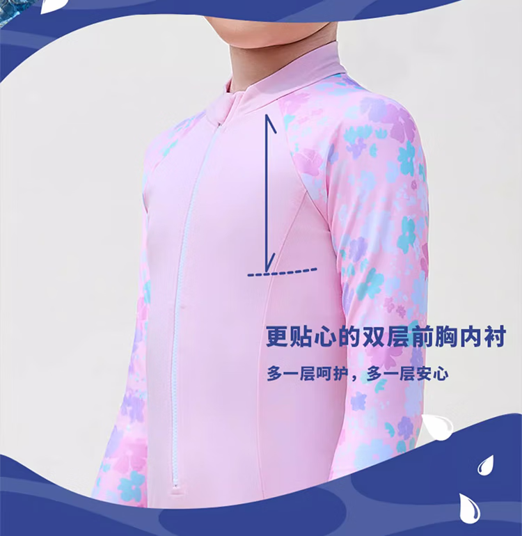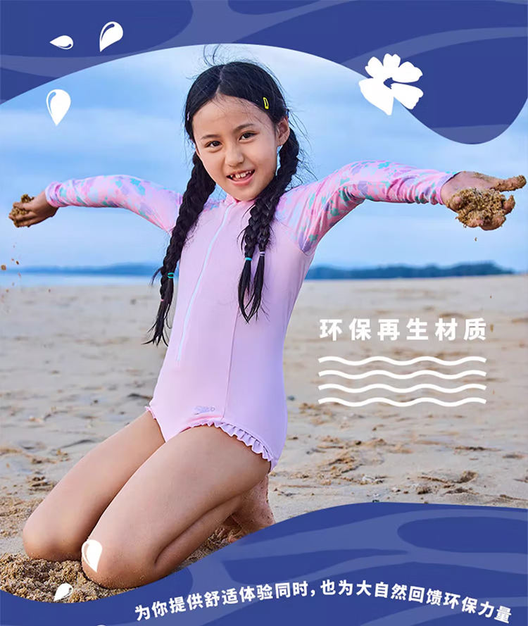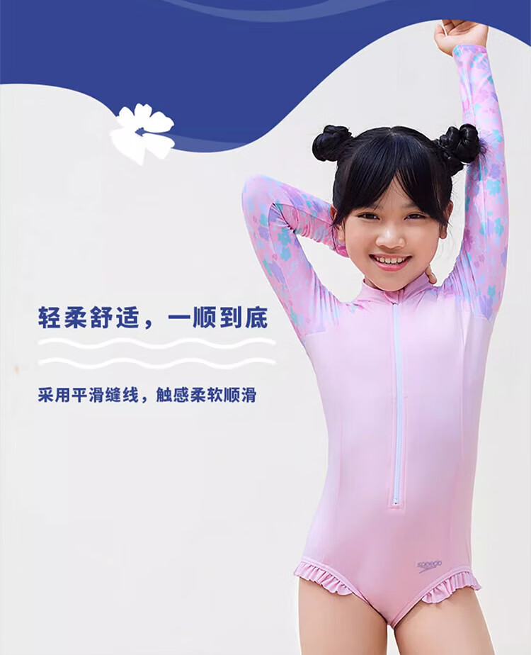 Speedo Hualala series children's printed long-sleeved sunscreen soft one-piece swimsuit for girls beach surfing swimwear 24 new products pink all-inclusive design, effective sun protection 120-130cm 7-8 years old