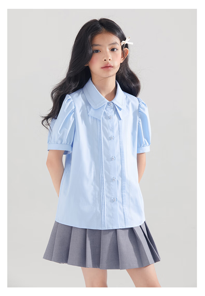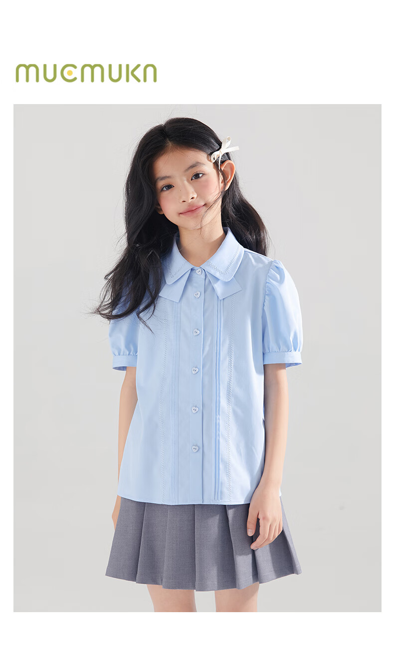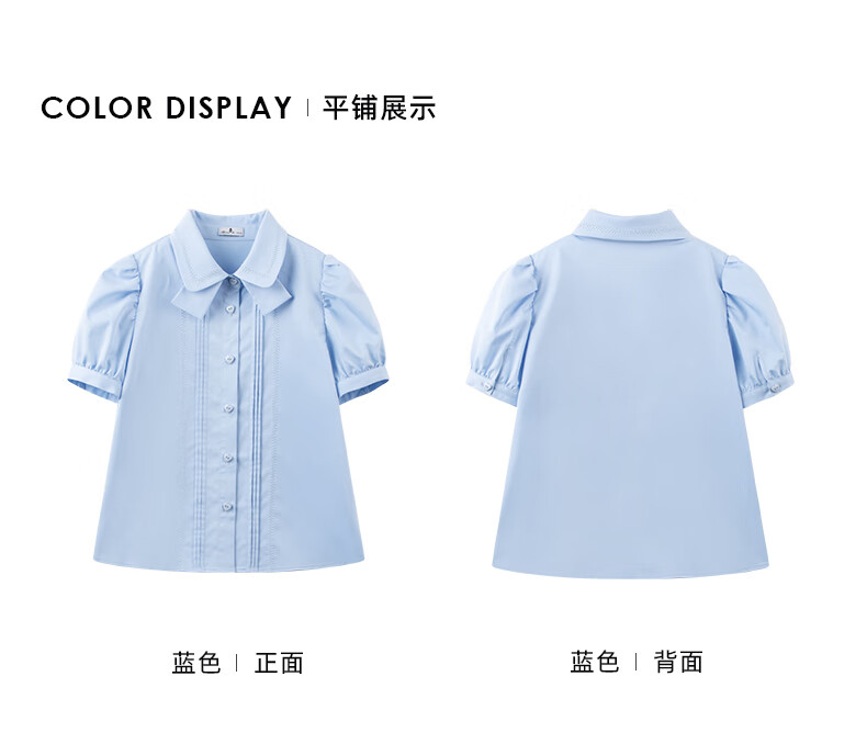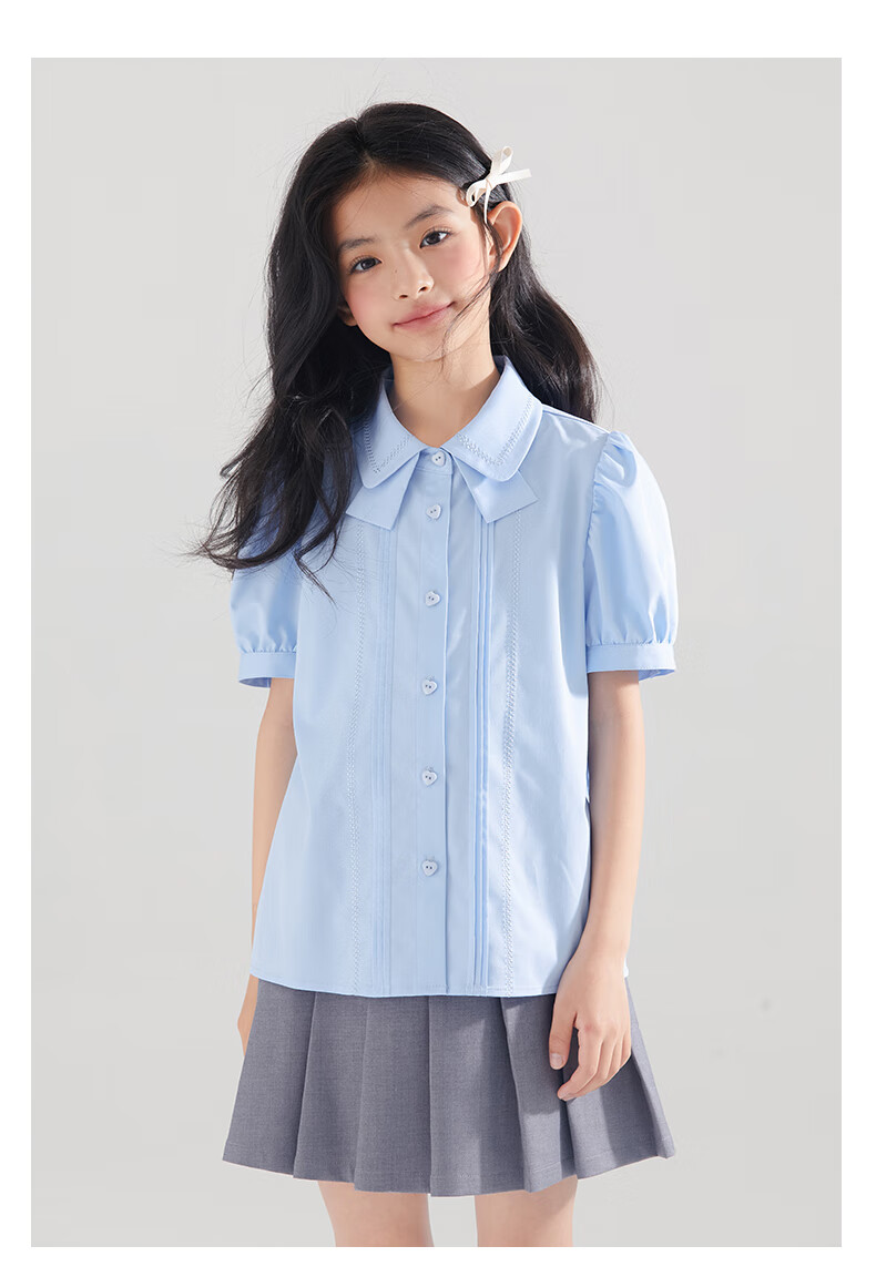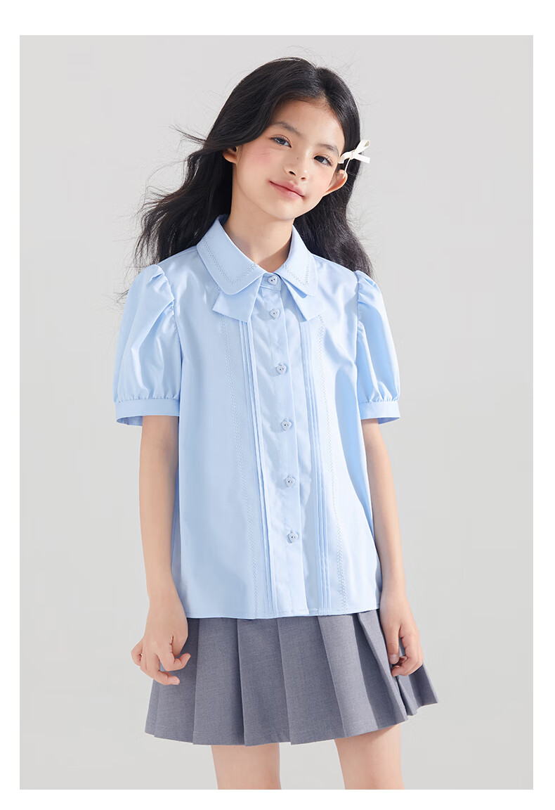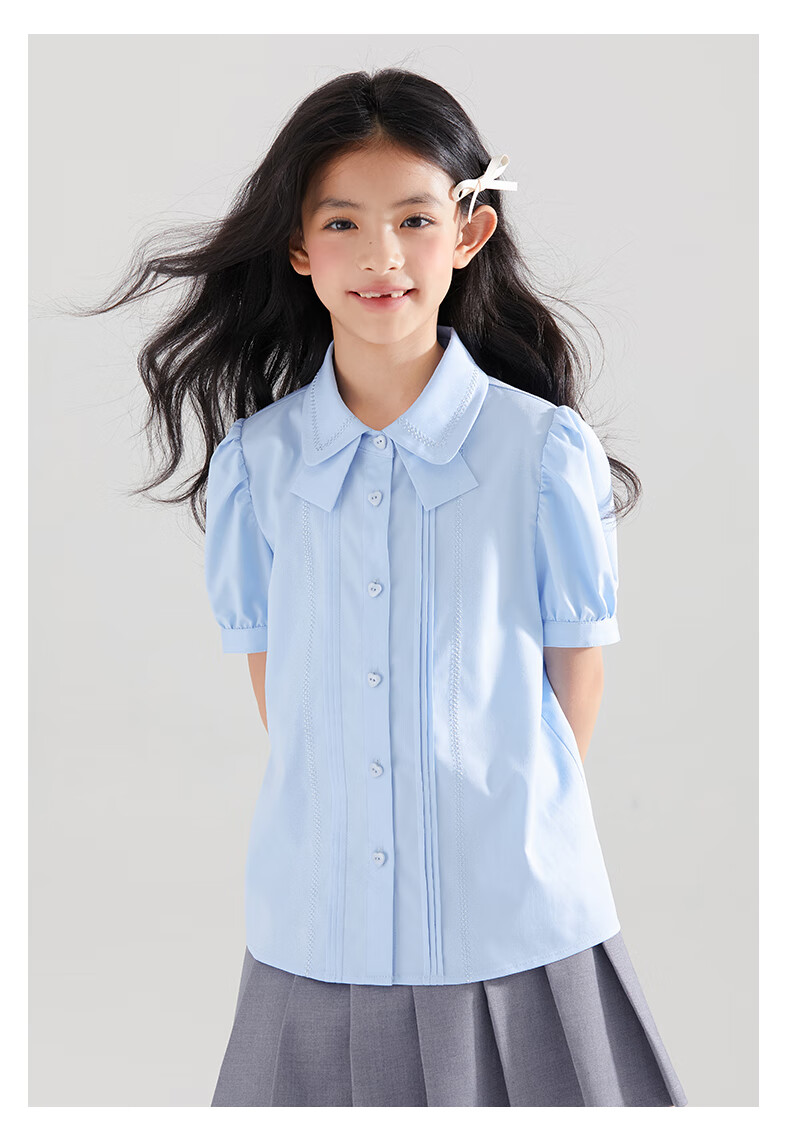 Mucmukn Antibacterial Bamboo Fiber Soft Anti-wrinkle Girls Sea Salt Bubble Blue Half Sleeve Shirt Butterfly Collar Top Half Sleeve Summer Blue 140 cm