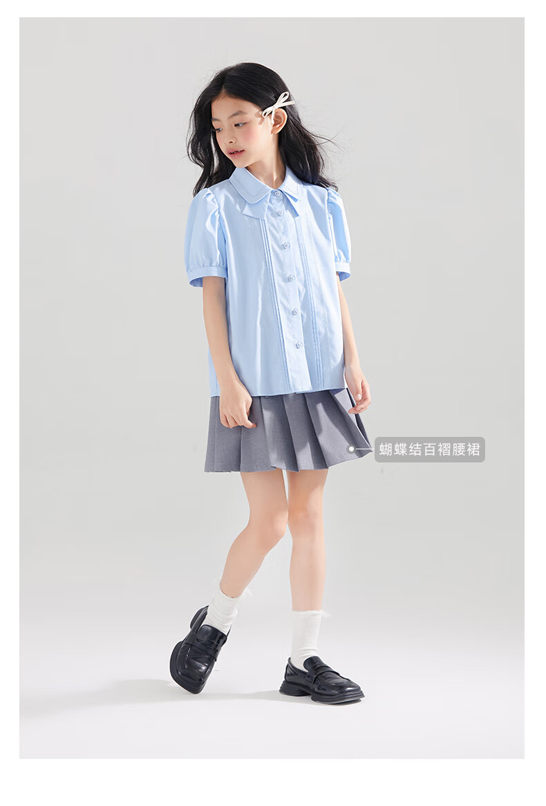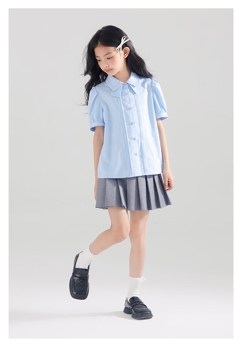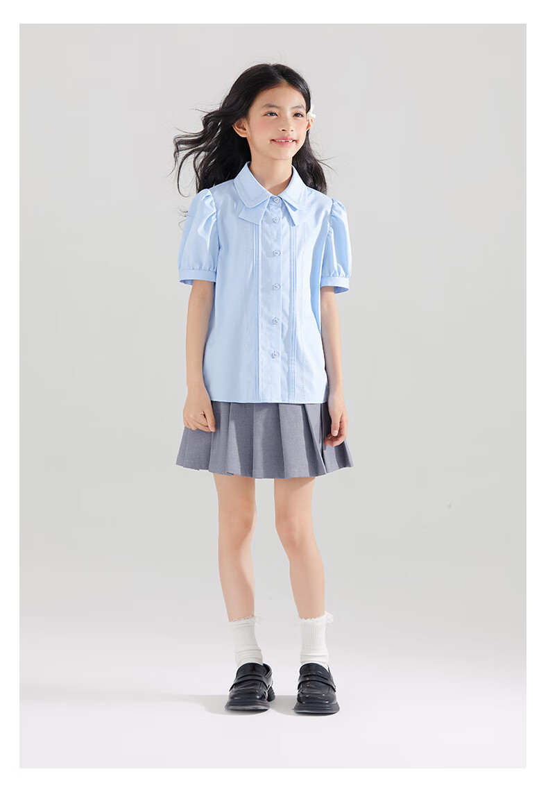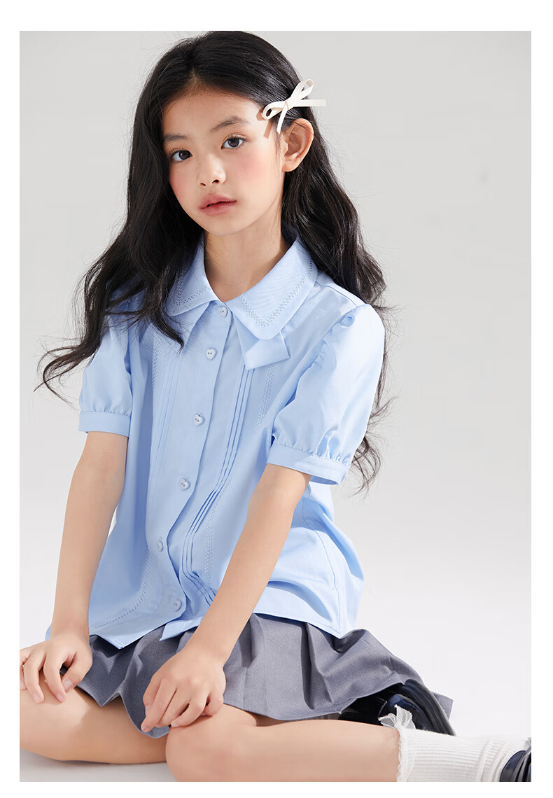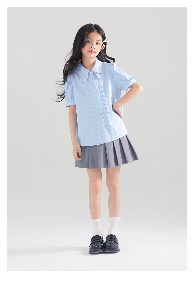 Mucmukn Antibacterial Bamboo Fiber Soft Anti-wrinkle Girls Sea Salt Bubble Blue Half Sleeve Shirt Butterfly Collar Top Half Sleeve Summer Blue 140 cm