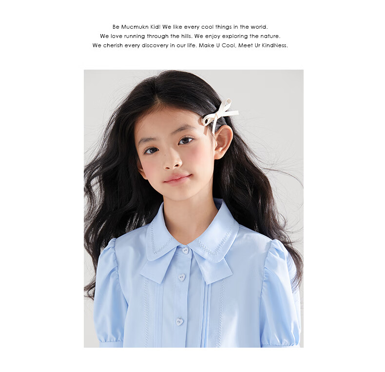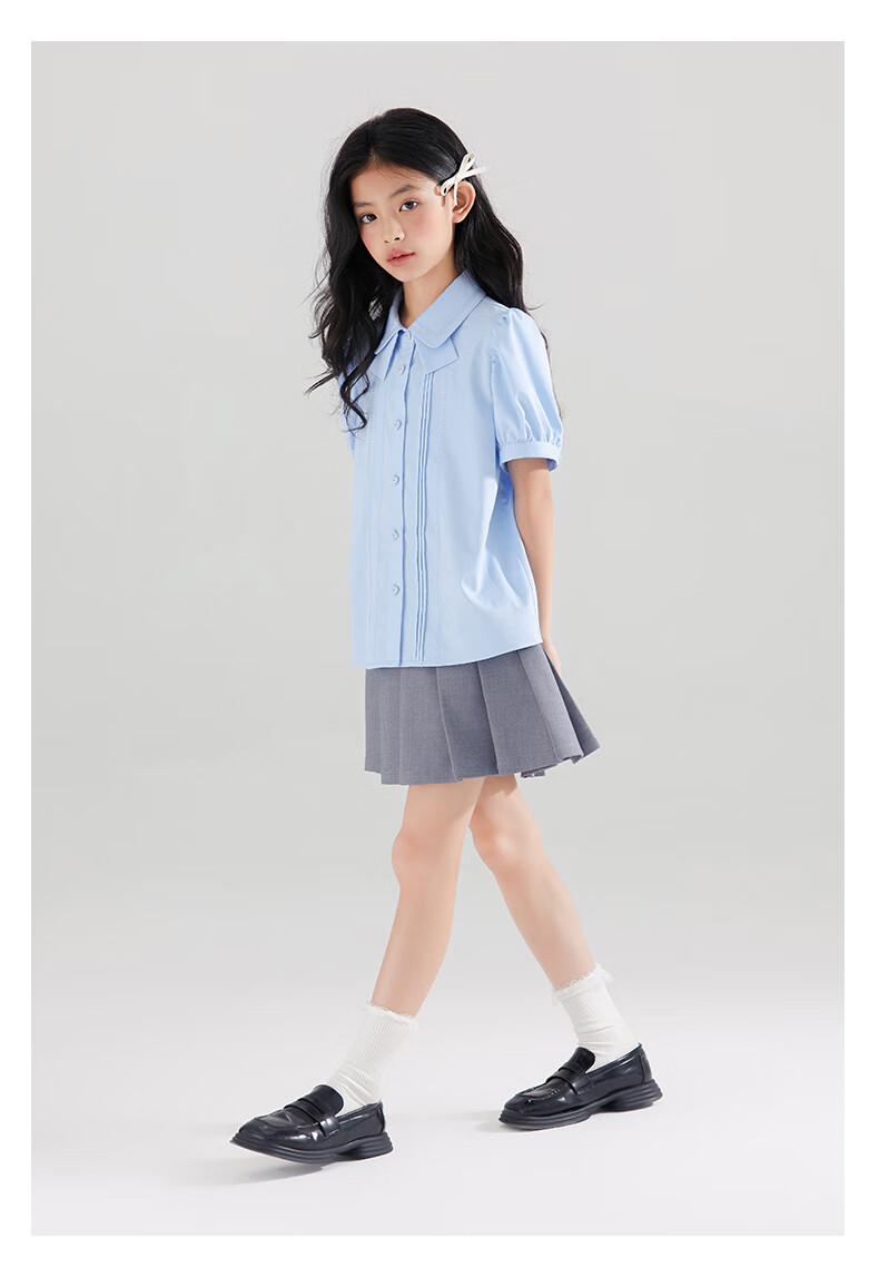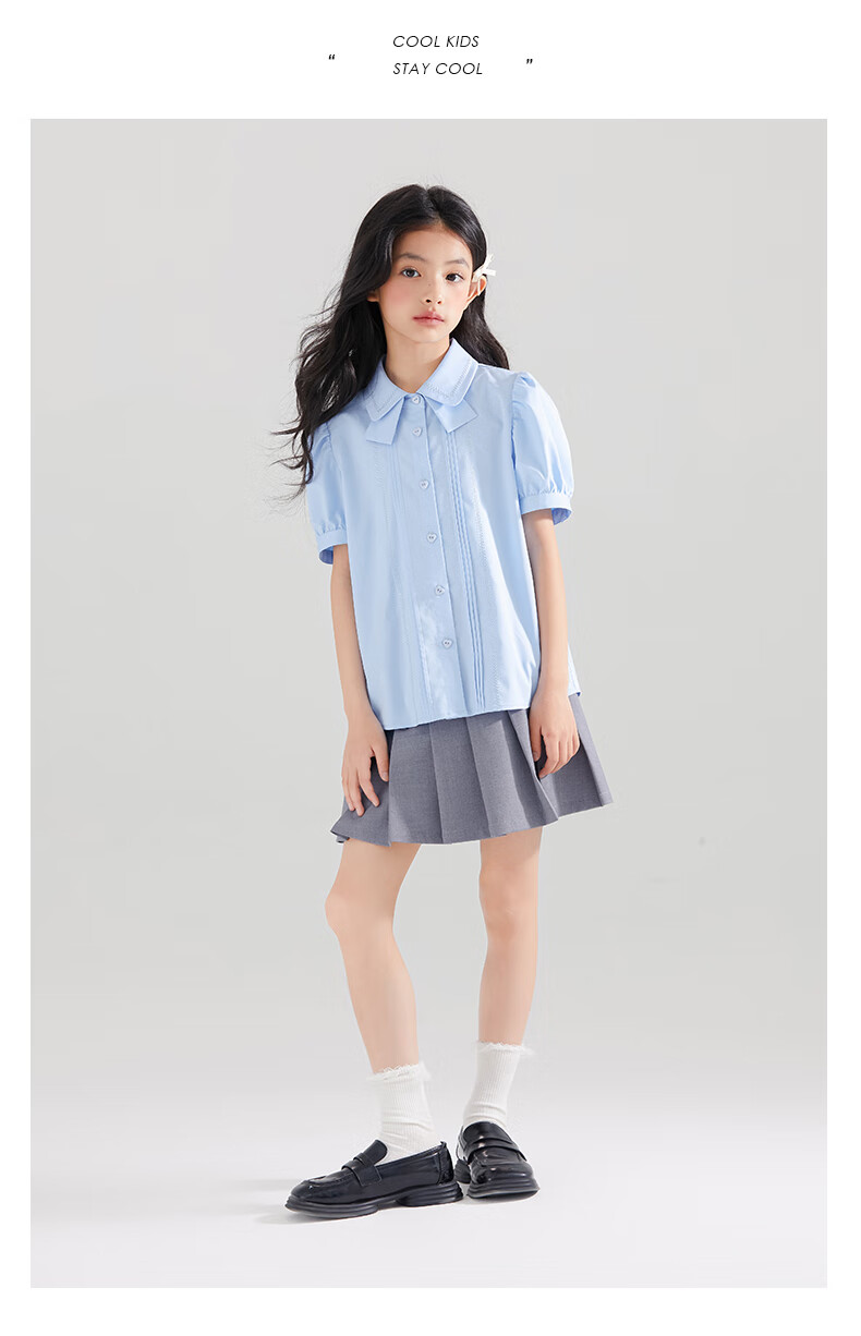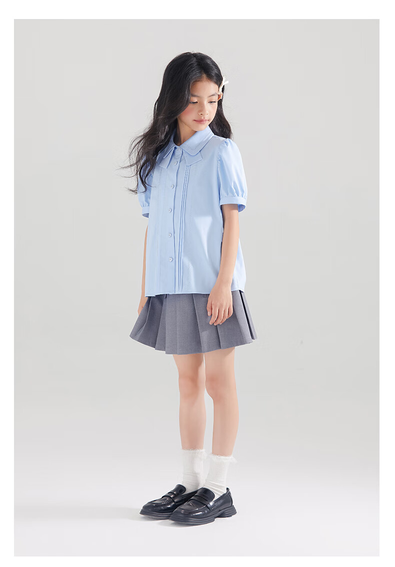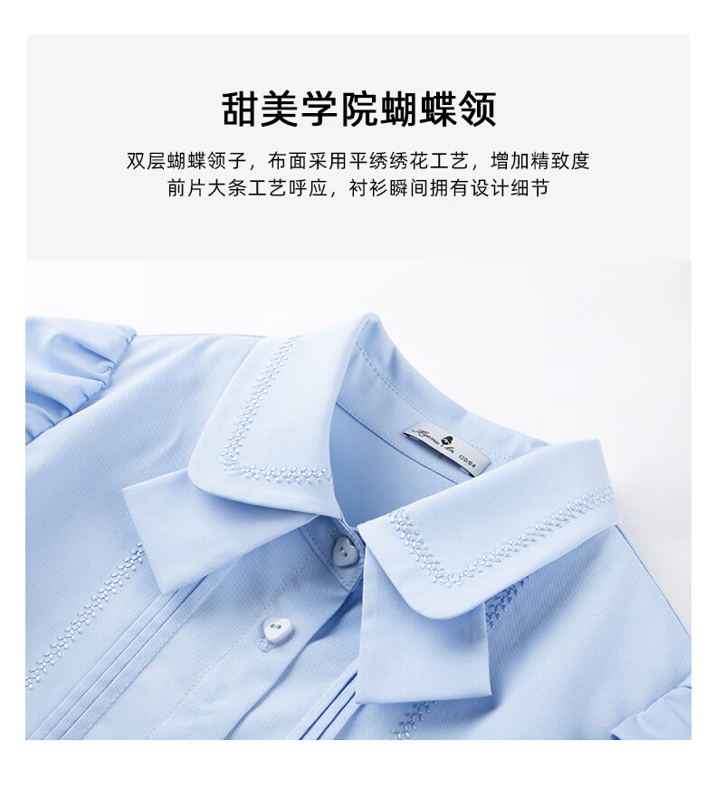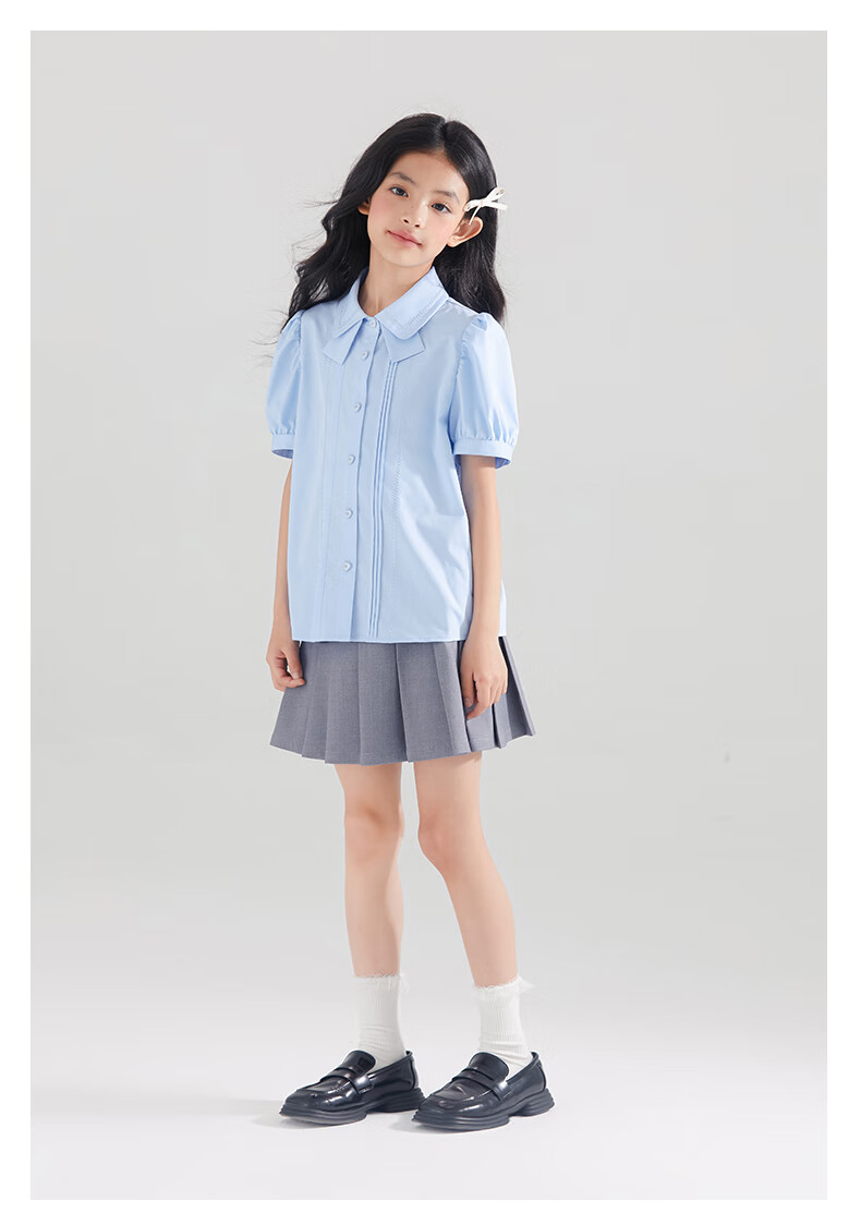 Mucmukn Antibacterial Bamboo Fiber Soft Anti-wrinkle Girls Sea Salt Bubble Blue Half Sleeve Shirt Butterfly Collar Top Half Sleeve Summer Blue 140 cm