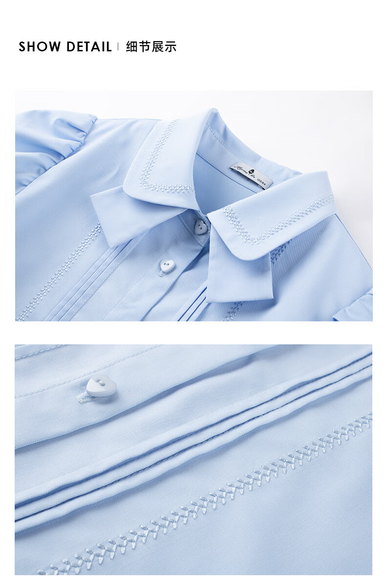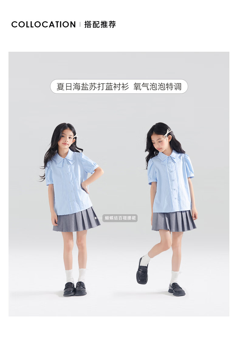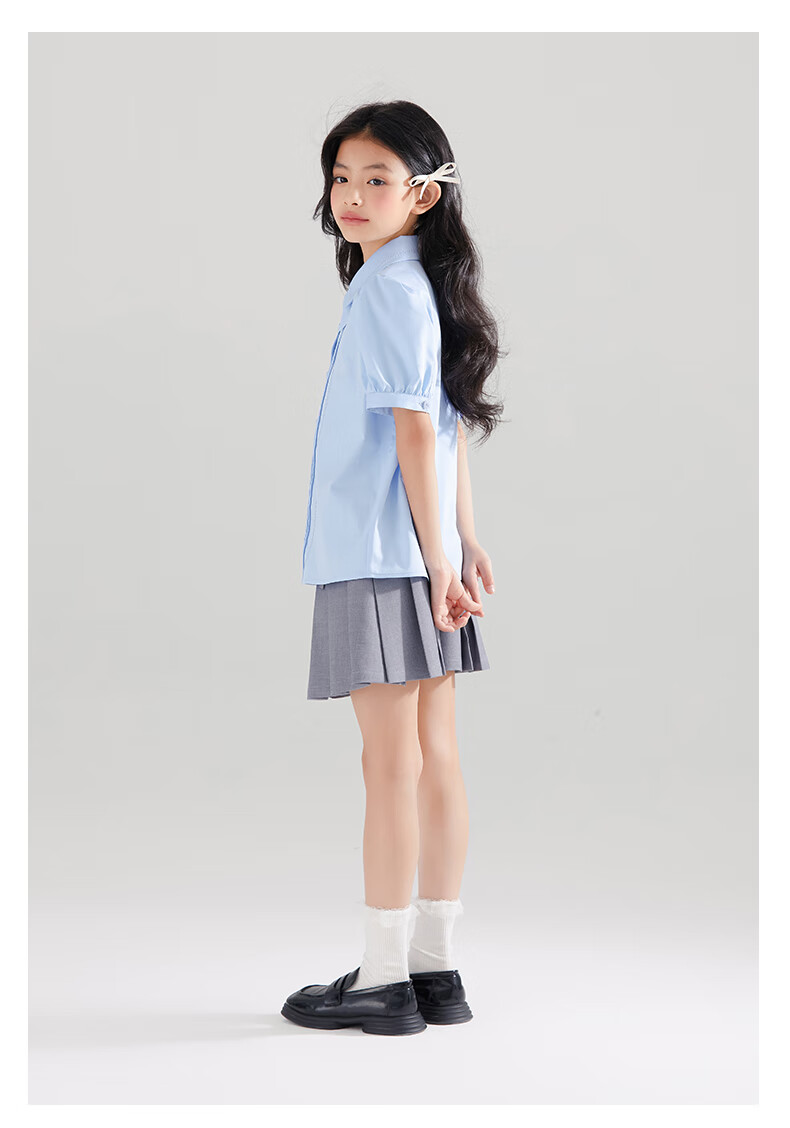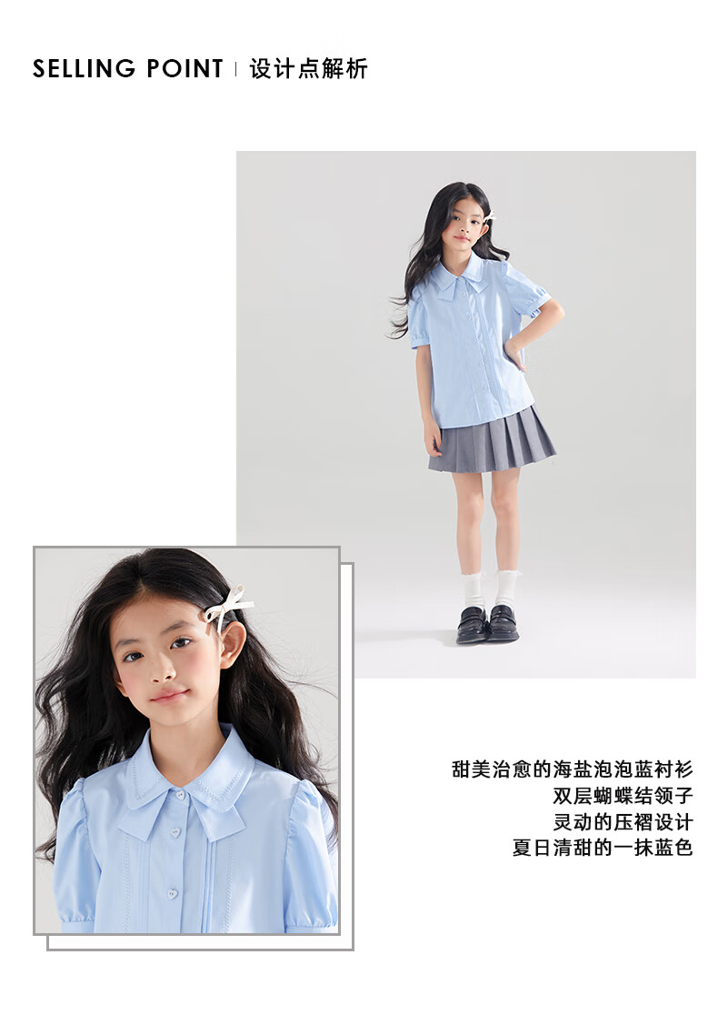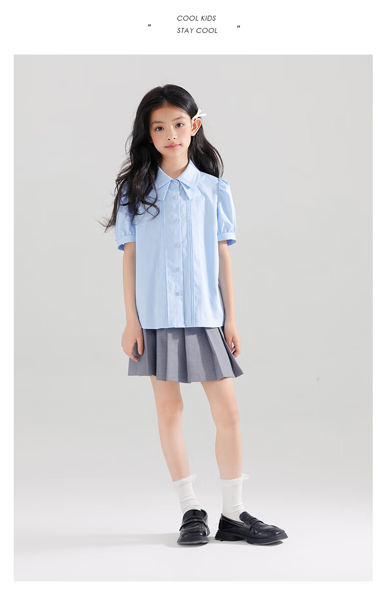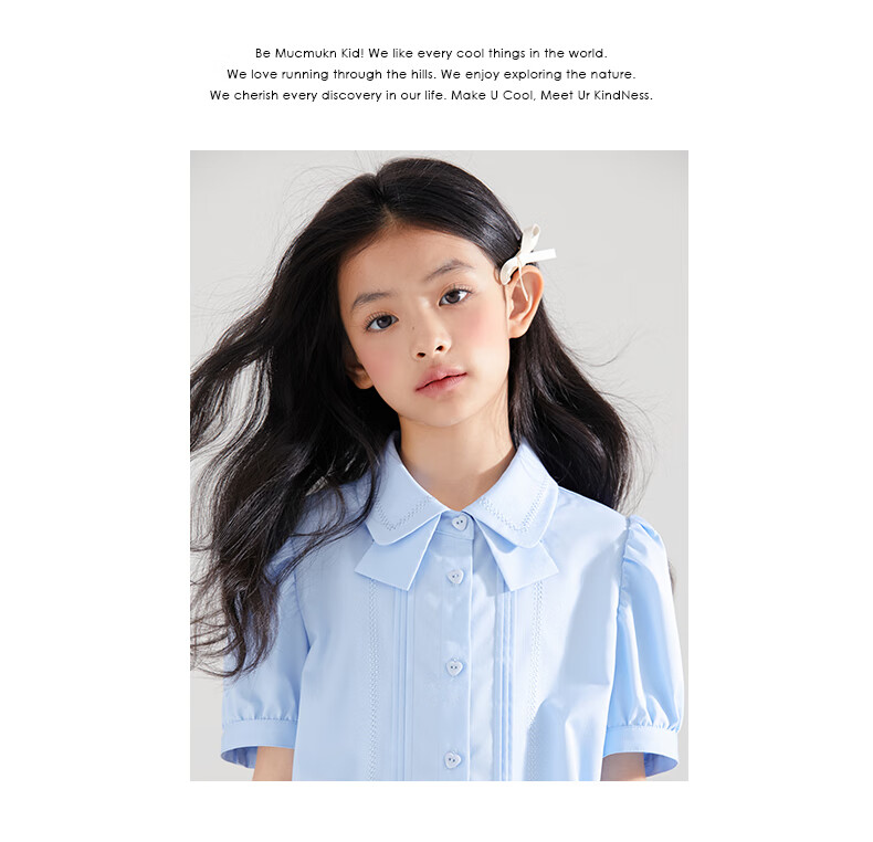 Mucmukn Antibacterial Bamboo Fiber Soft Anti-wrinkle Girls Sea Salt Bubble Blue Half Sleeve Shirt Butterfly Collar Top Half Sleeve Summer Blue 140 cm