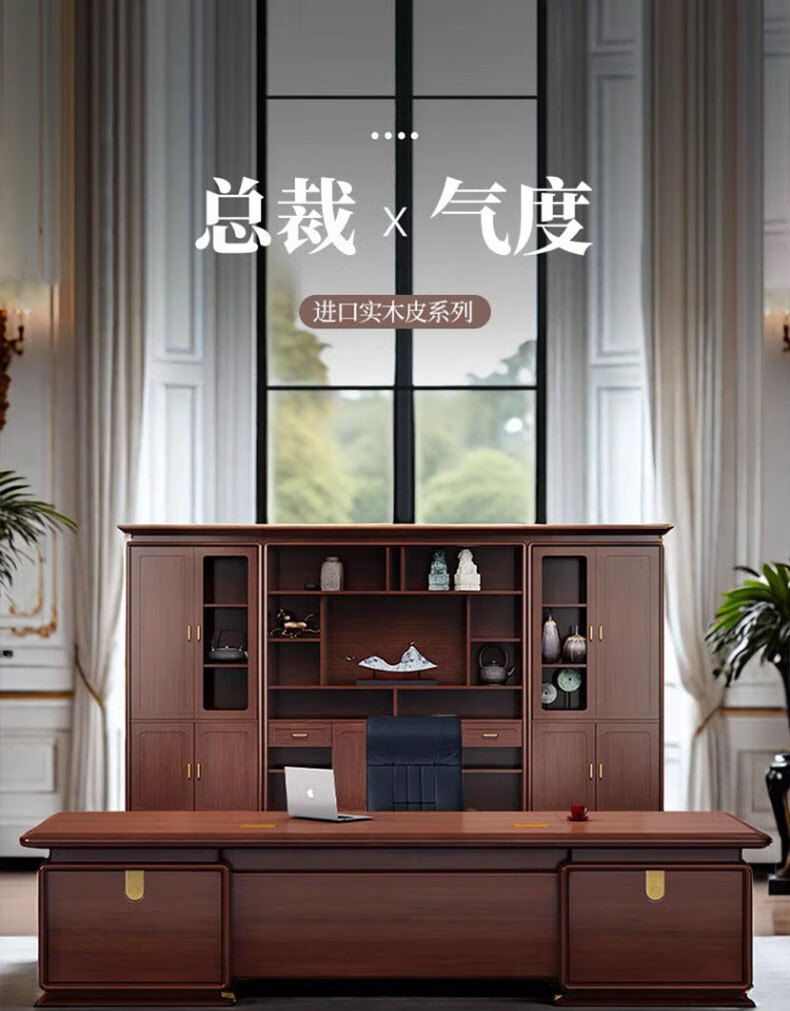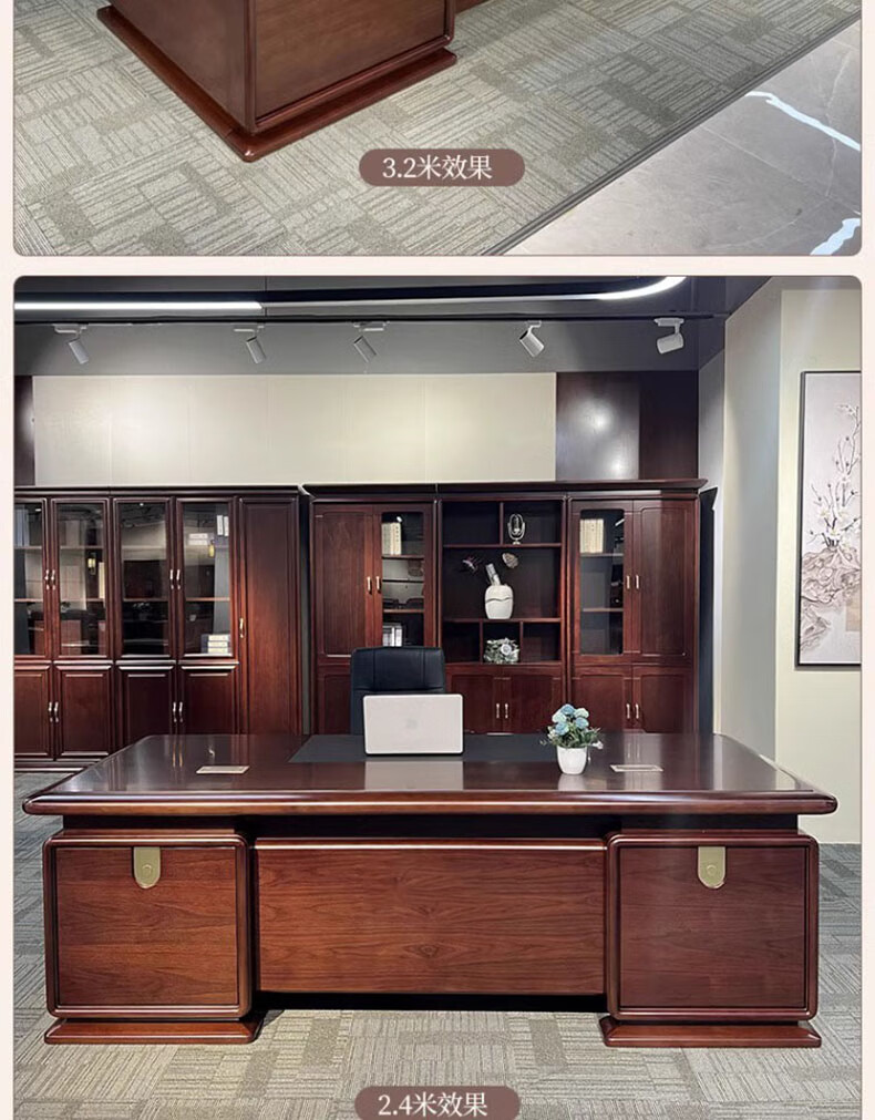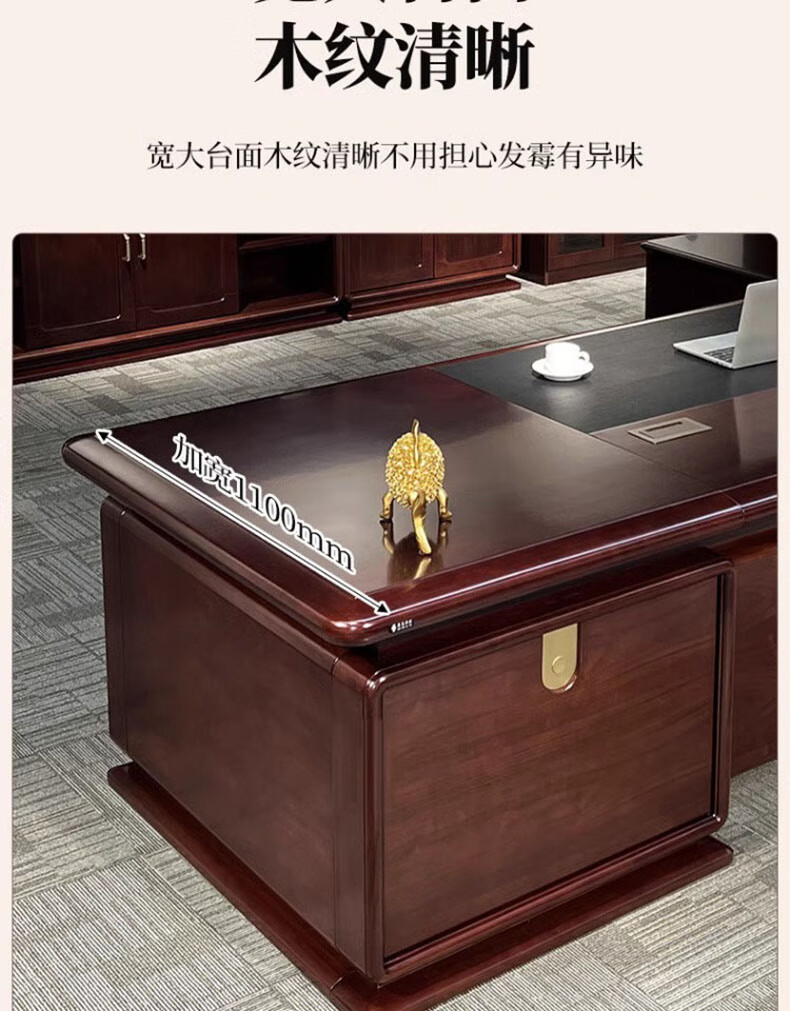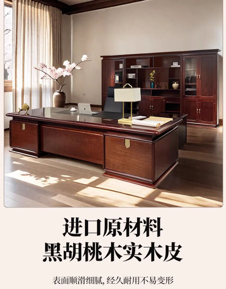 Hanjitang Yuxin Chinese style solid wood desk boss desk walnut veneer office furniture high-end office president desk executive desk 2.2 meters boss desk